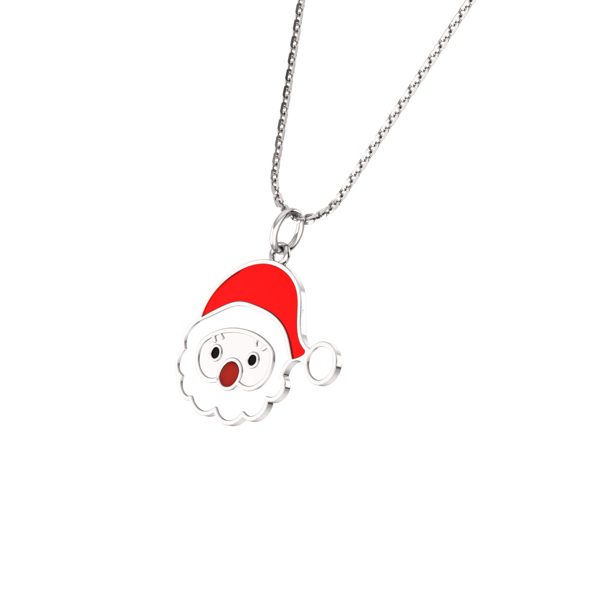 RKC Emalje Kersvader-hangertjie 925 Silwer 14K Witgoud Vergulde Wt 5.00GM Hoogte 21.00 MM