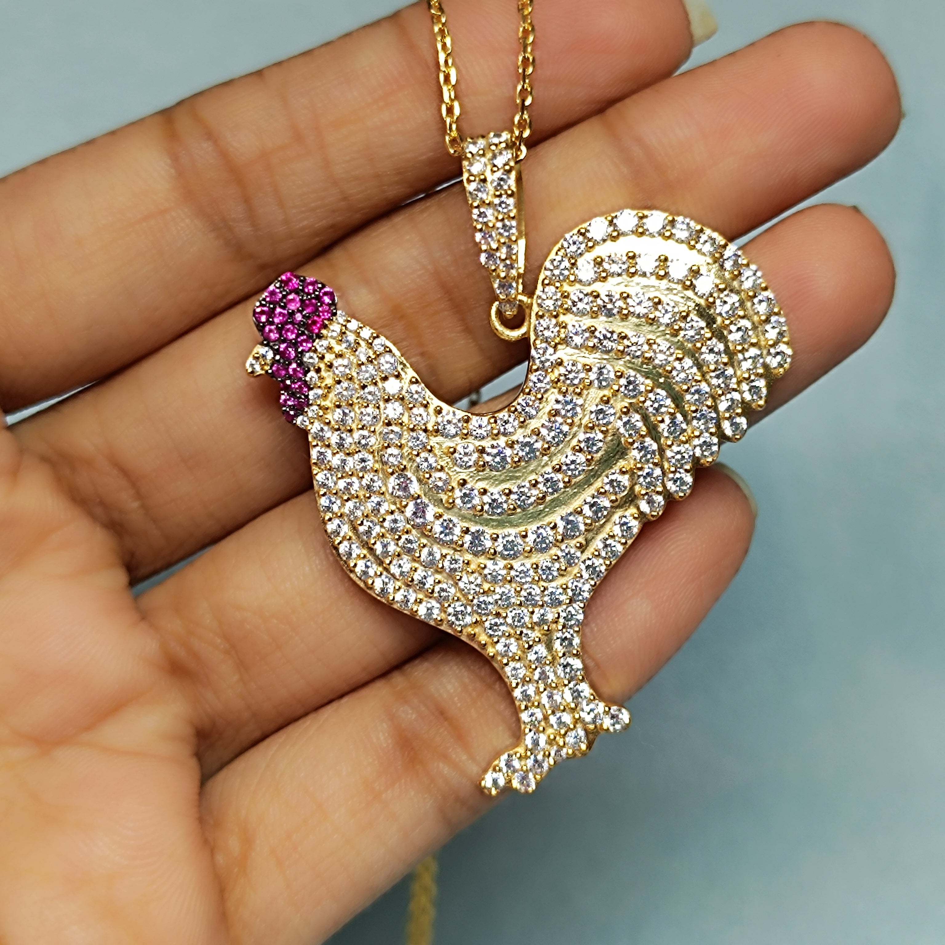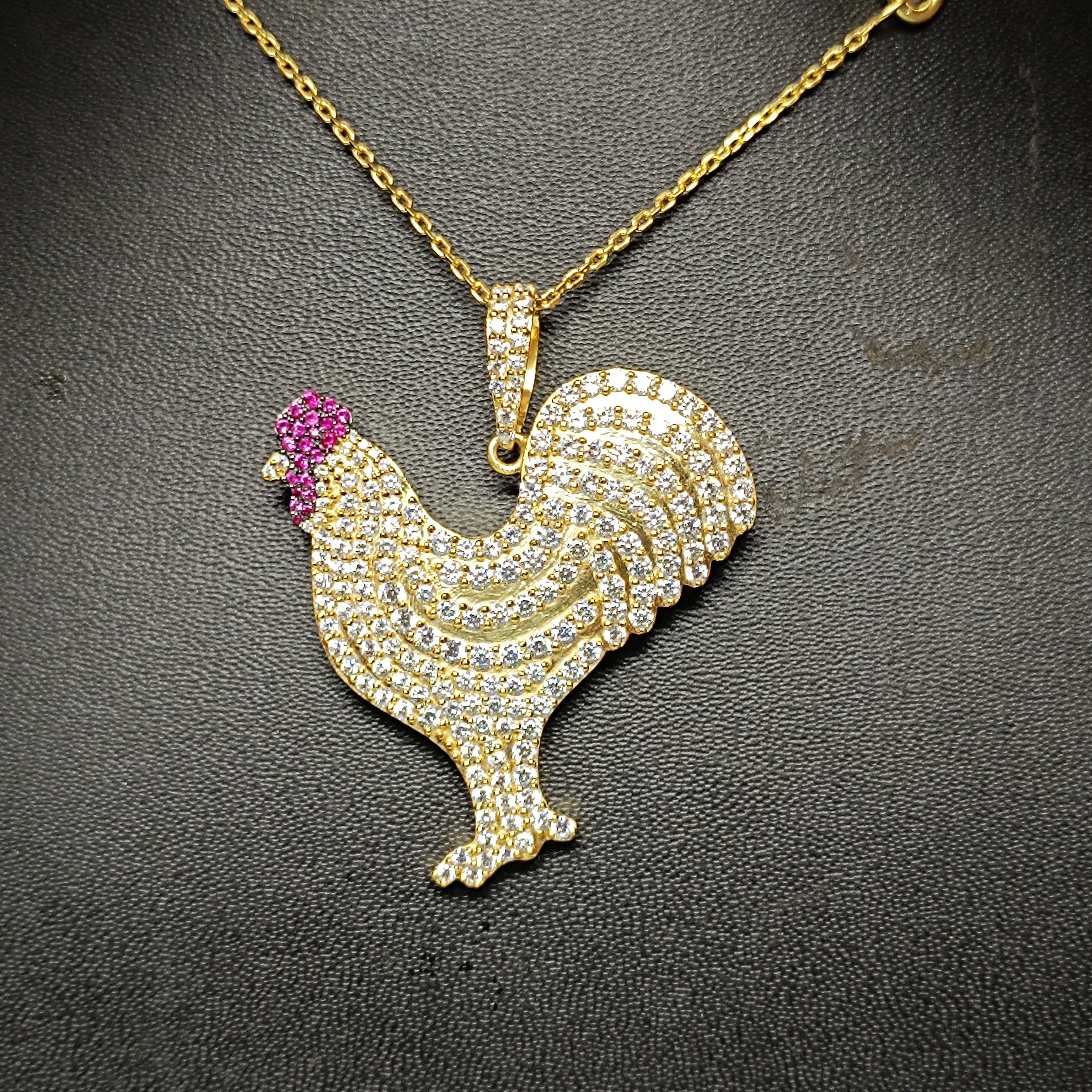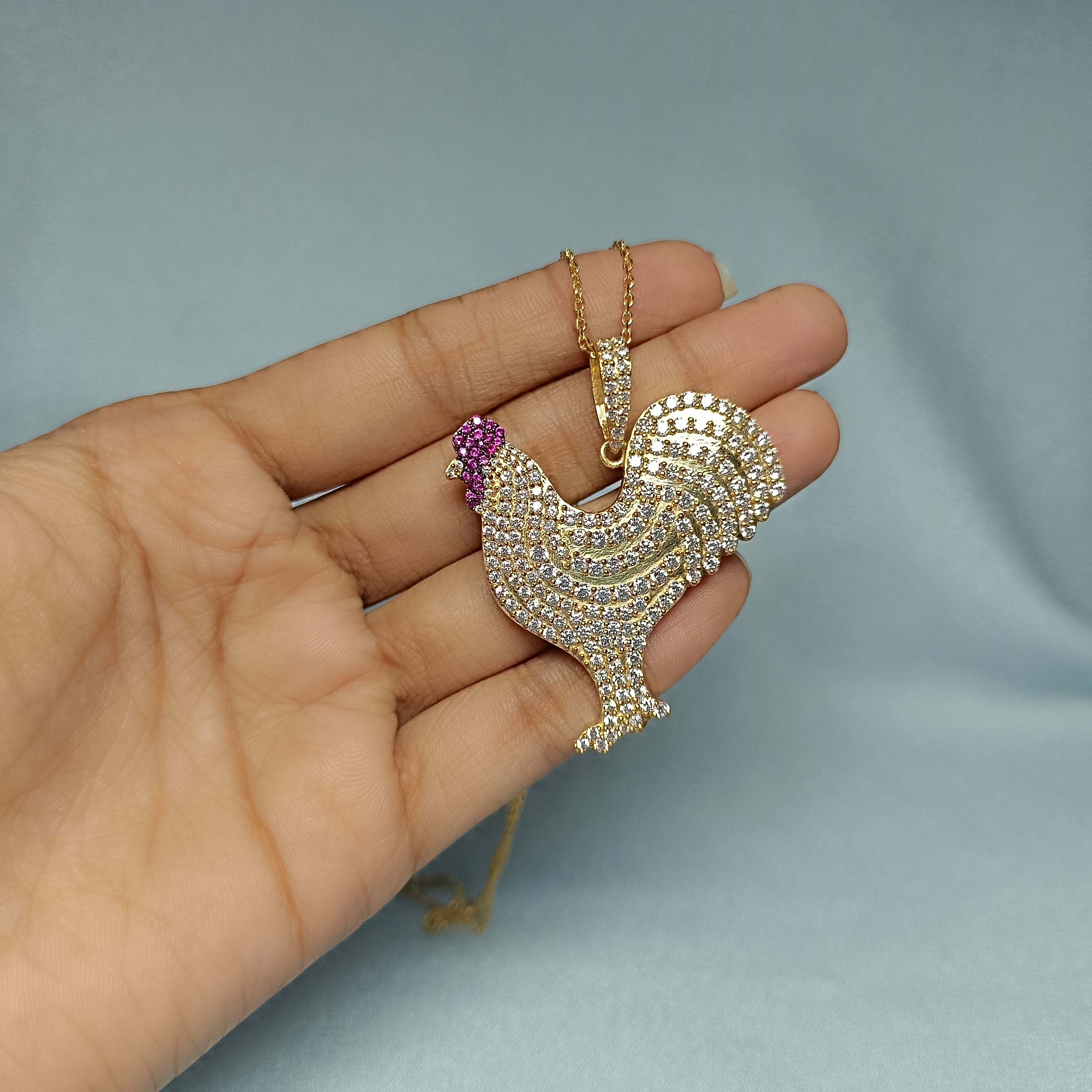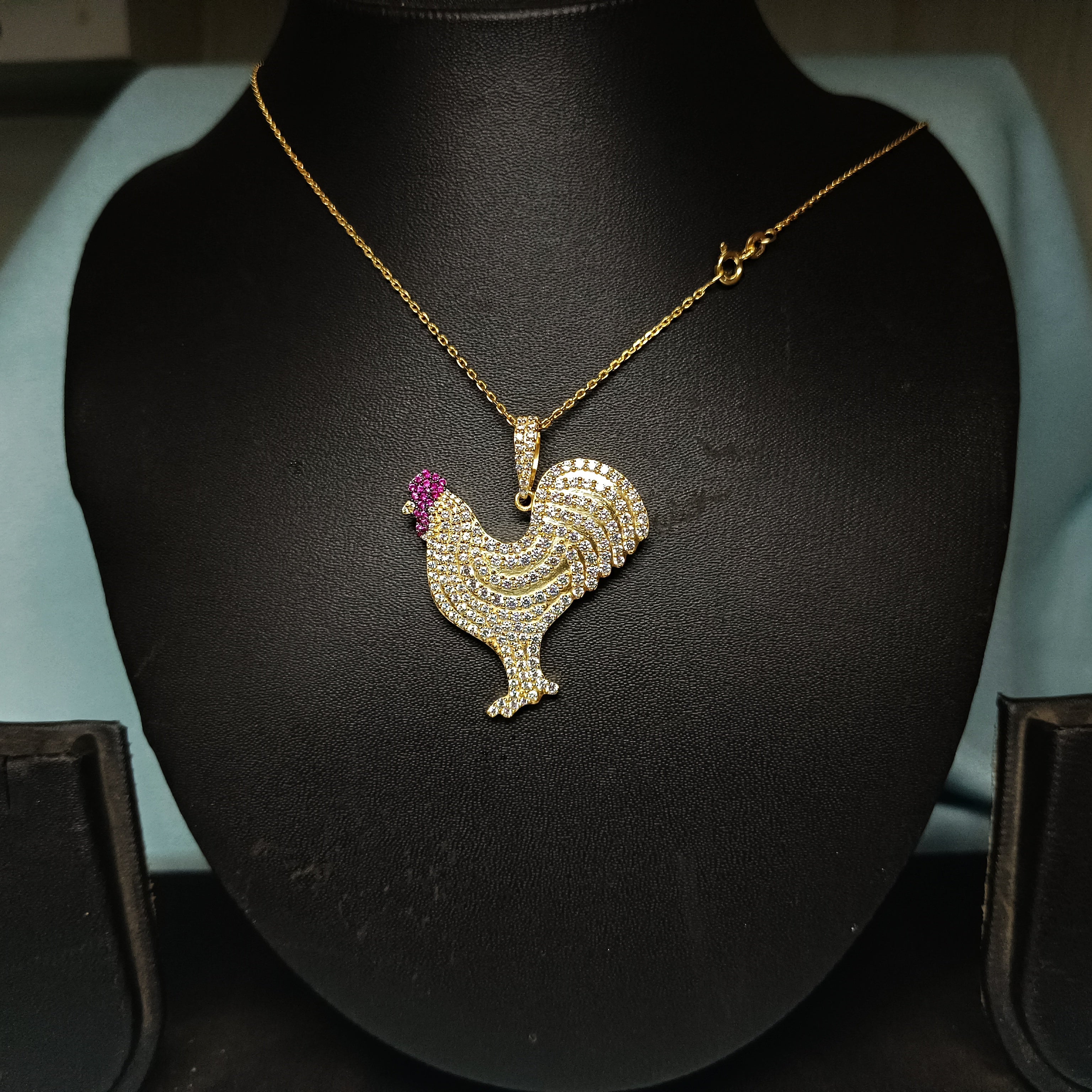 RKC 925 Sterling Silver Enamel Women Pendant Set 14K Yellow Gold Plated Wt 4.40gm Height 19.00mm