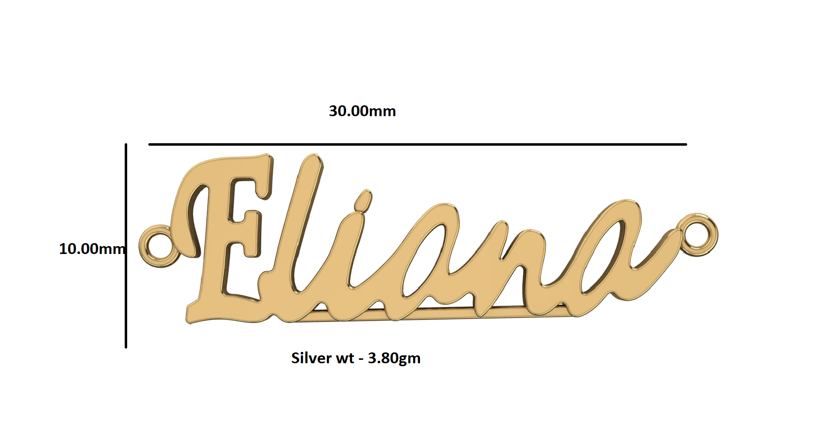 RKC Custom Name Pendant 925 Sterling Silver 14K Yellow Gold Plated Wt 3.20GM Height 11.20 MM
