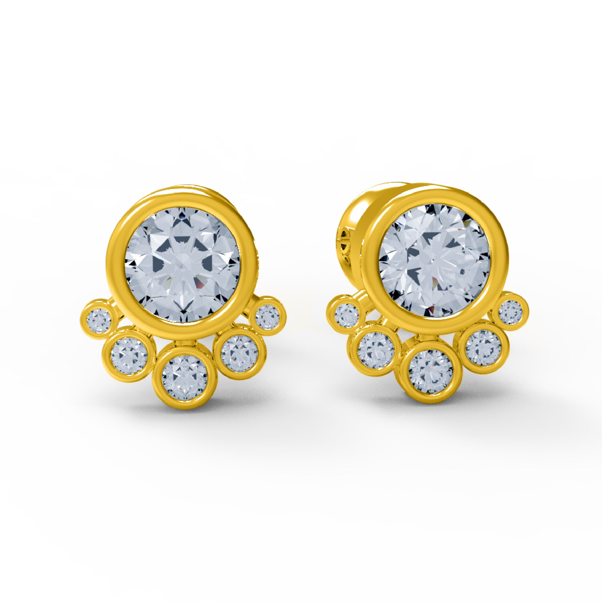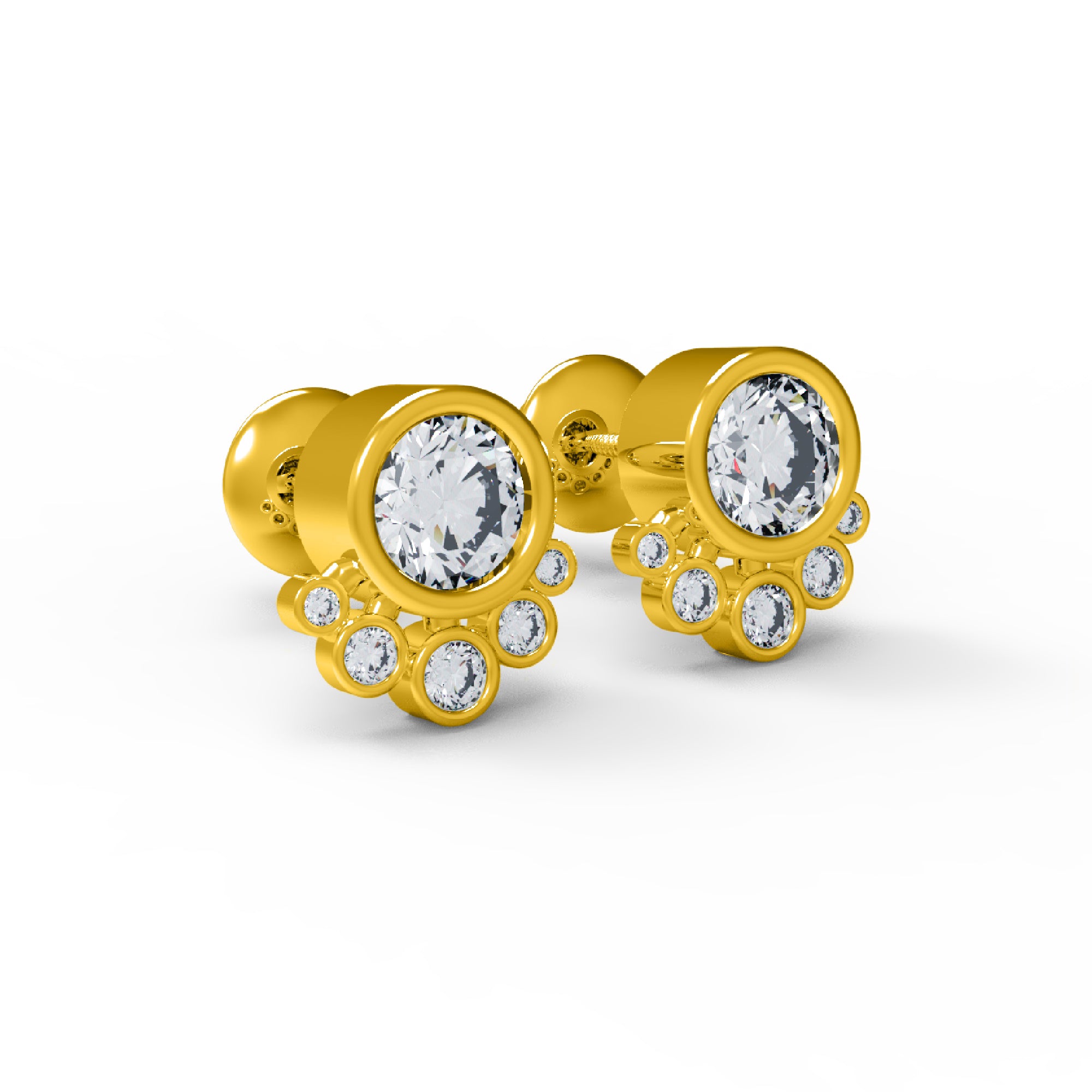 RKC 925 فضة استرليني مسمار خلفي حلق نسائي 14k أصفر فوق الوزن 2.80 جرام ارتفاع 9.50 ملم