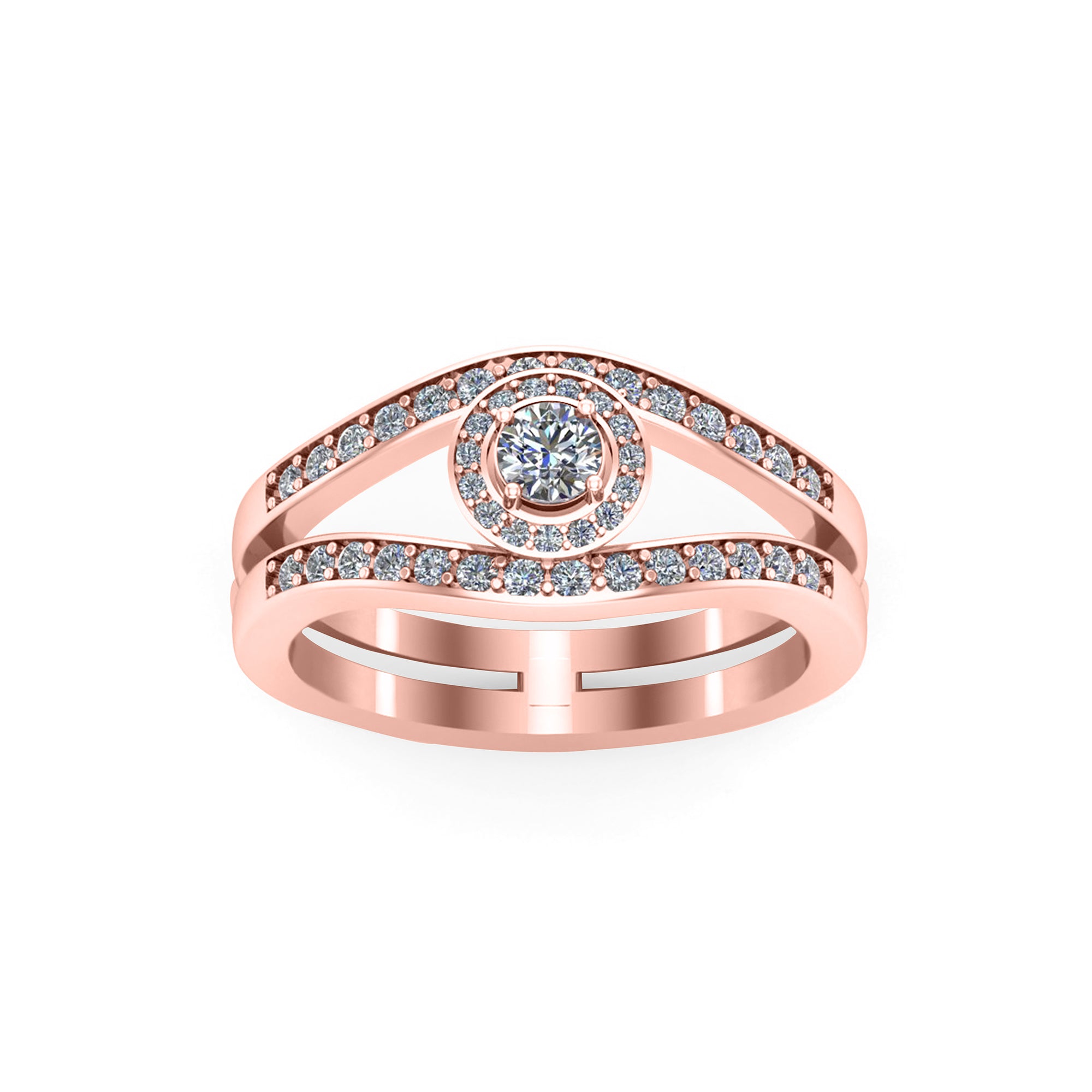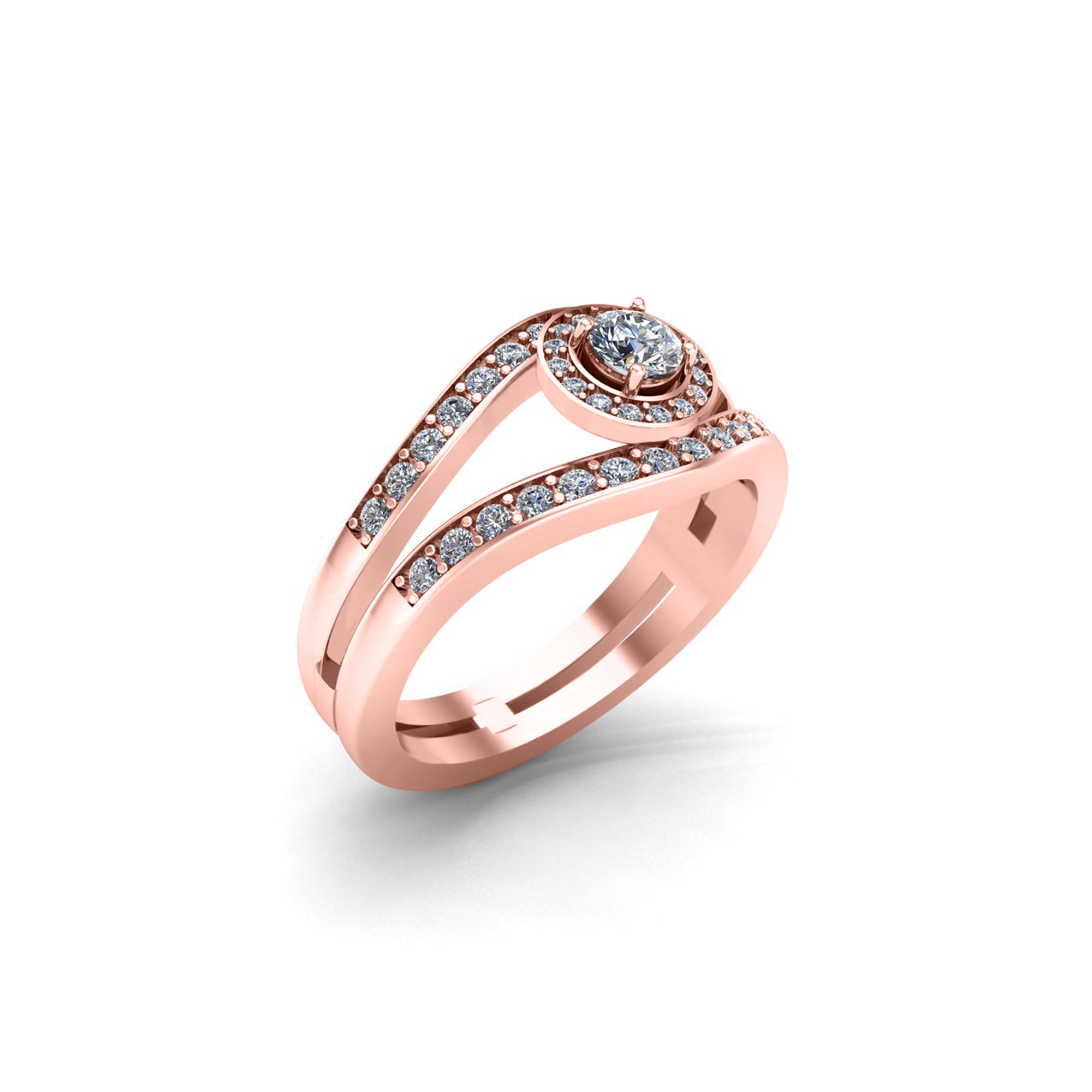 RKC خاتم زفاف مويسانيتي دائري ميلجرين سوليتير 925 فضة مطلي بالذهب الوردي وزن 4.70 جم عرض 2.50 مم