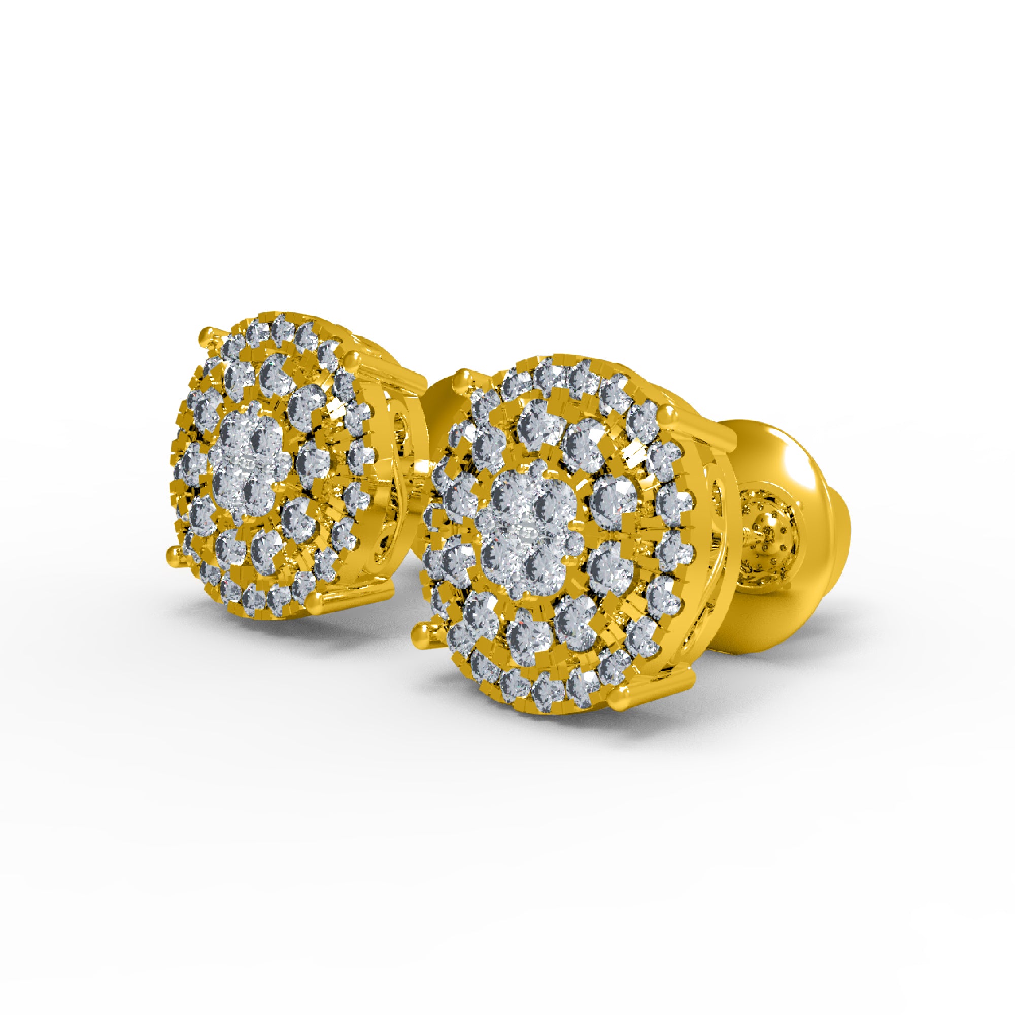 RKC 925 স্টার্লিং সিলভার হ্যালো স্টাড মহিলাদের কানের দুল 14k হলুদ ওভার Wt 3.50gm উচ্চতা 10.50mm