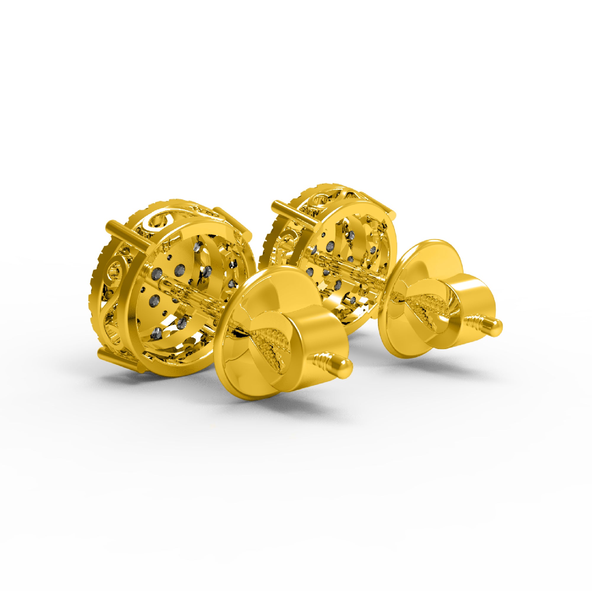 RKC 2 Carat Round Cut Moissanite Women's Stud Earrings 14k Yellow Gold Plated 925 Silver Weight 2mm