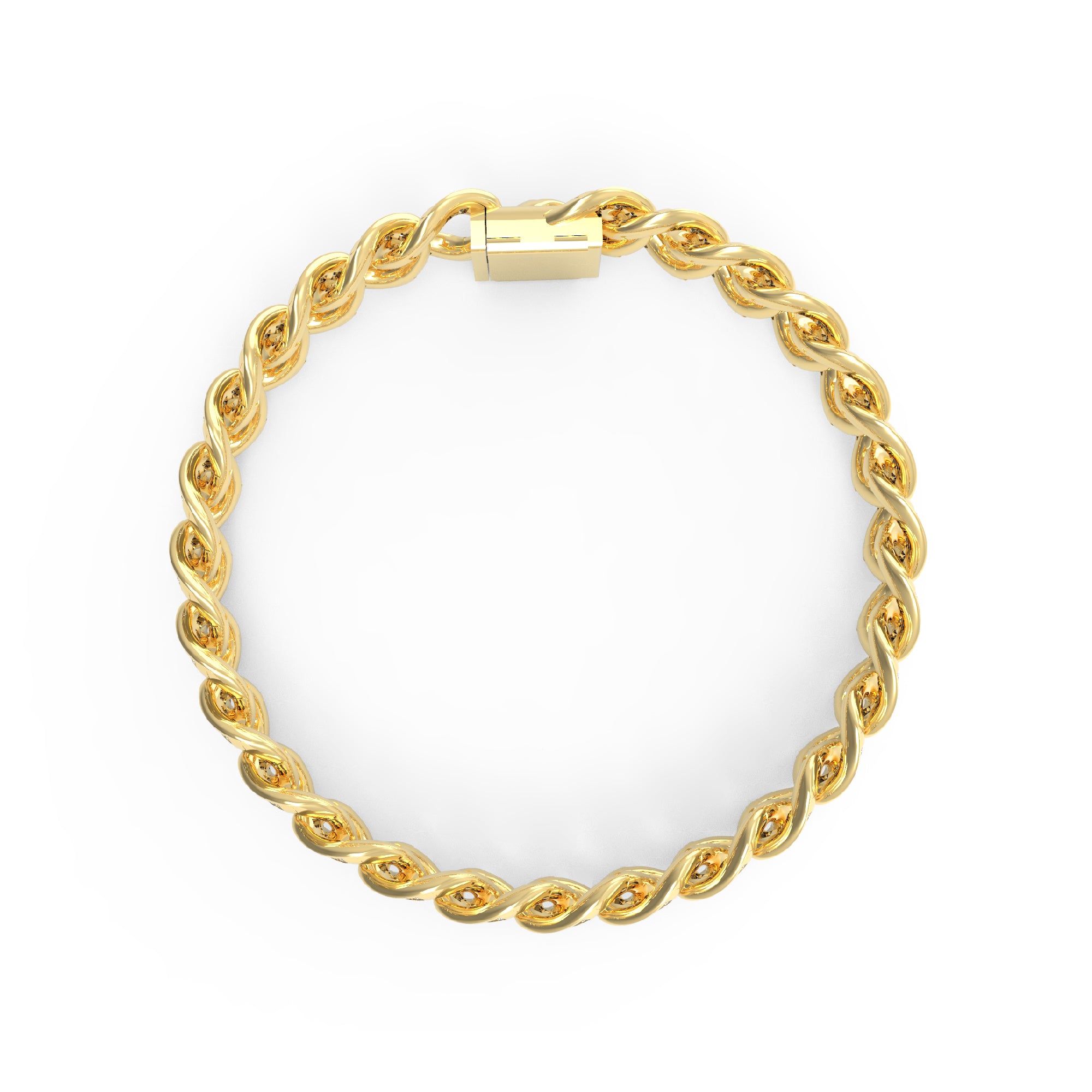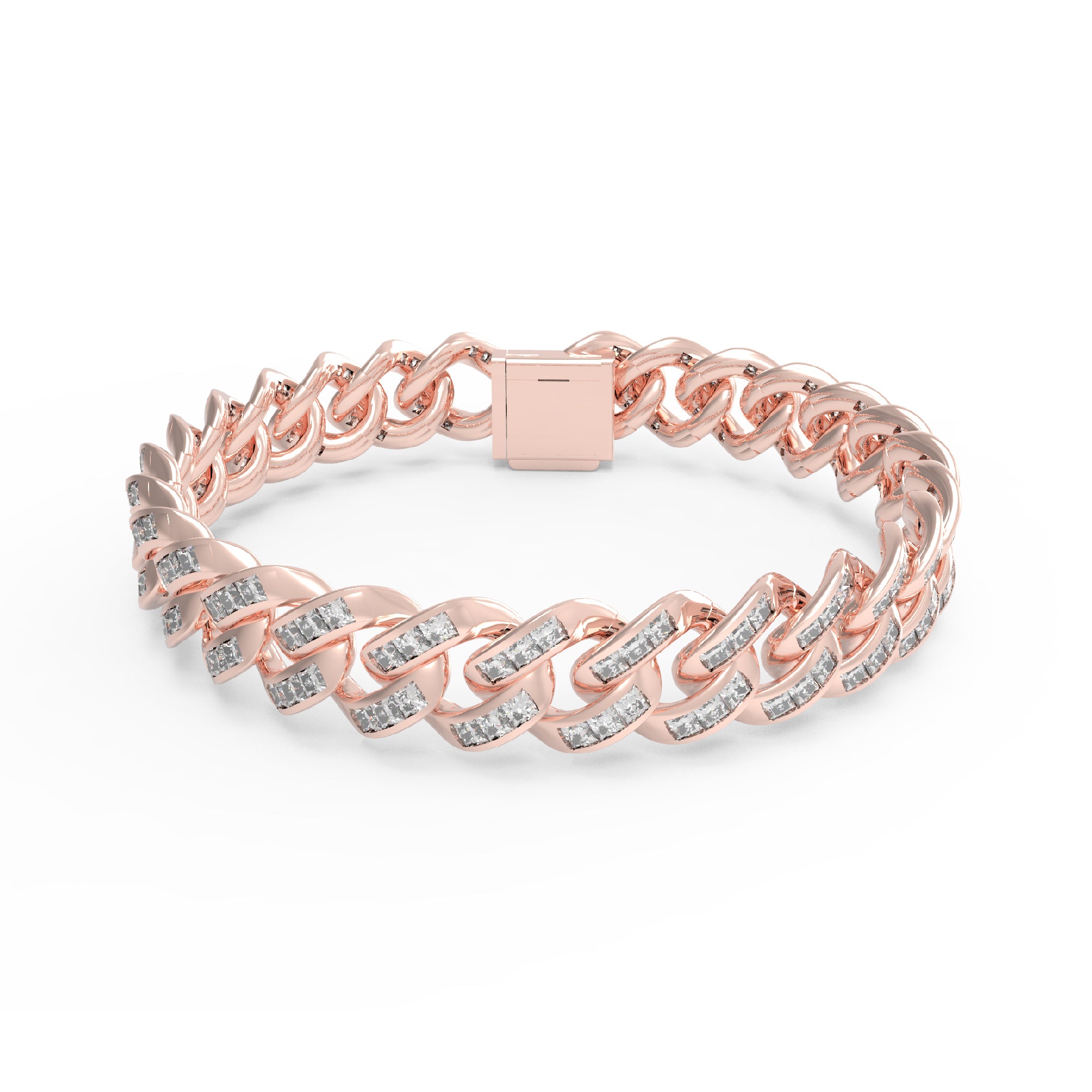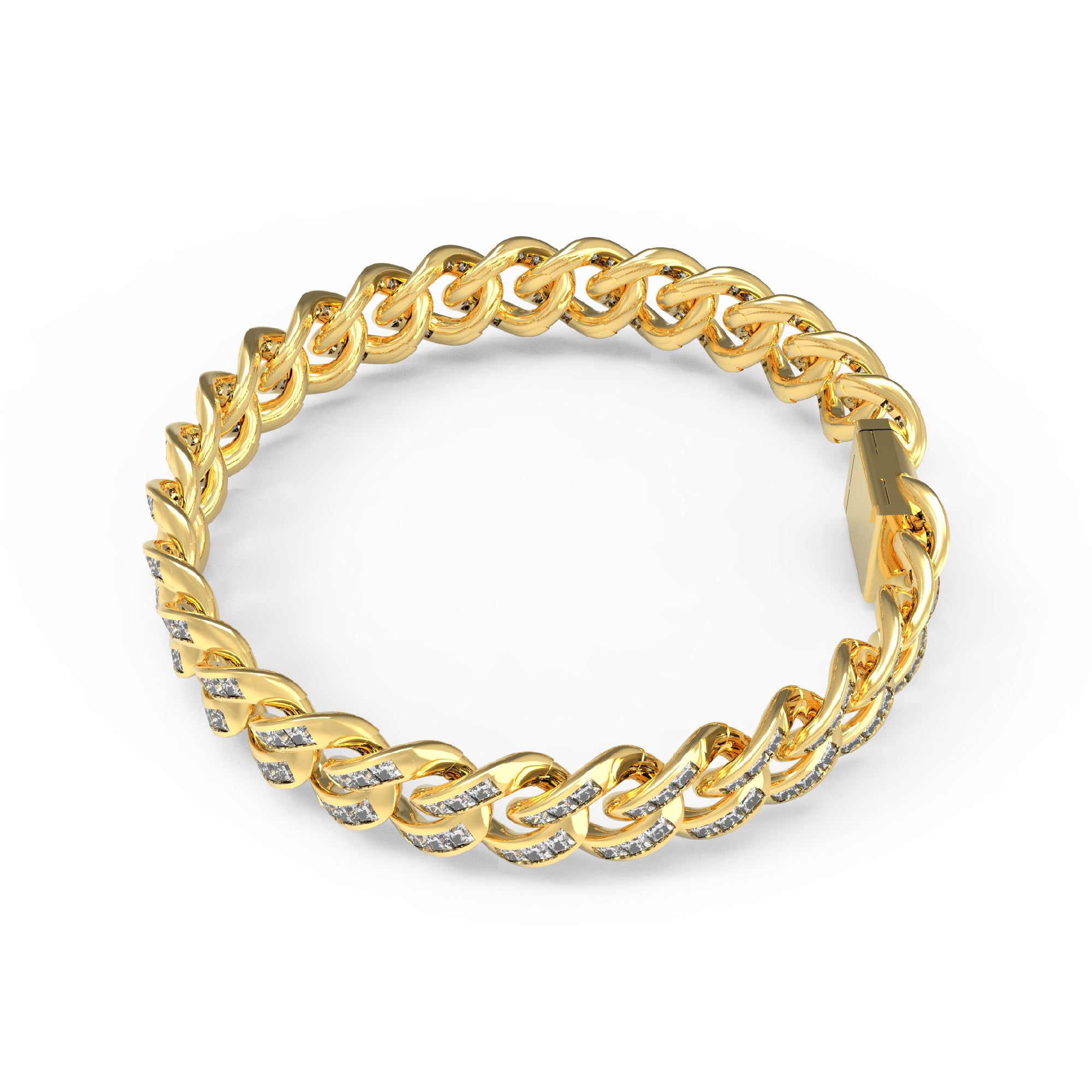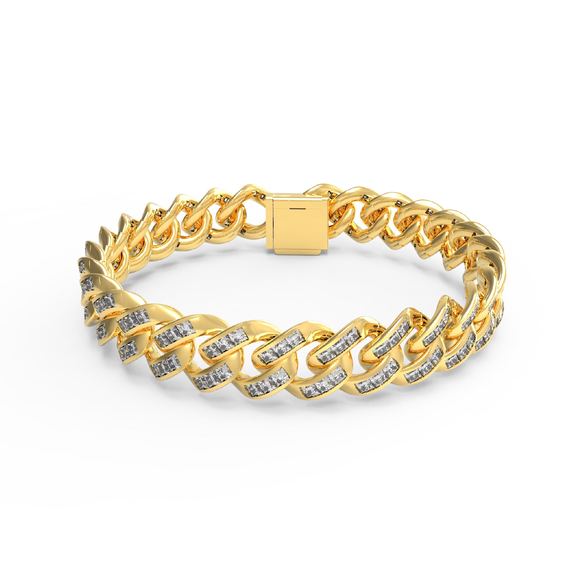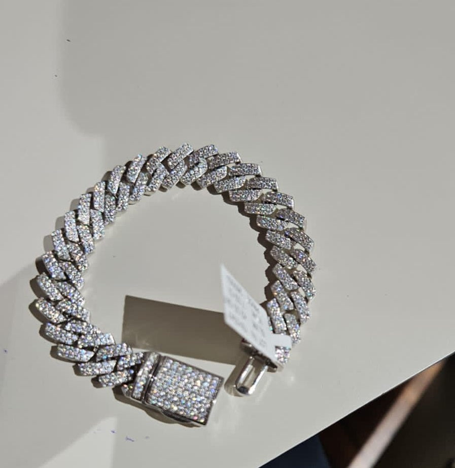 RKC 9 CT Round Cut Real Moissanite Men's Cuban Link Bracelet 14K White Gold Plated Over 925 Silver
