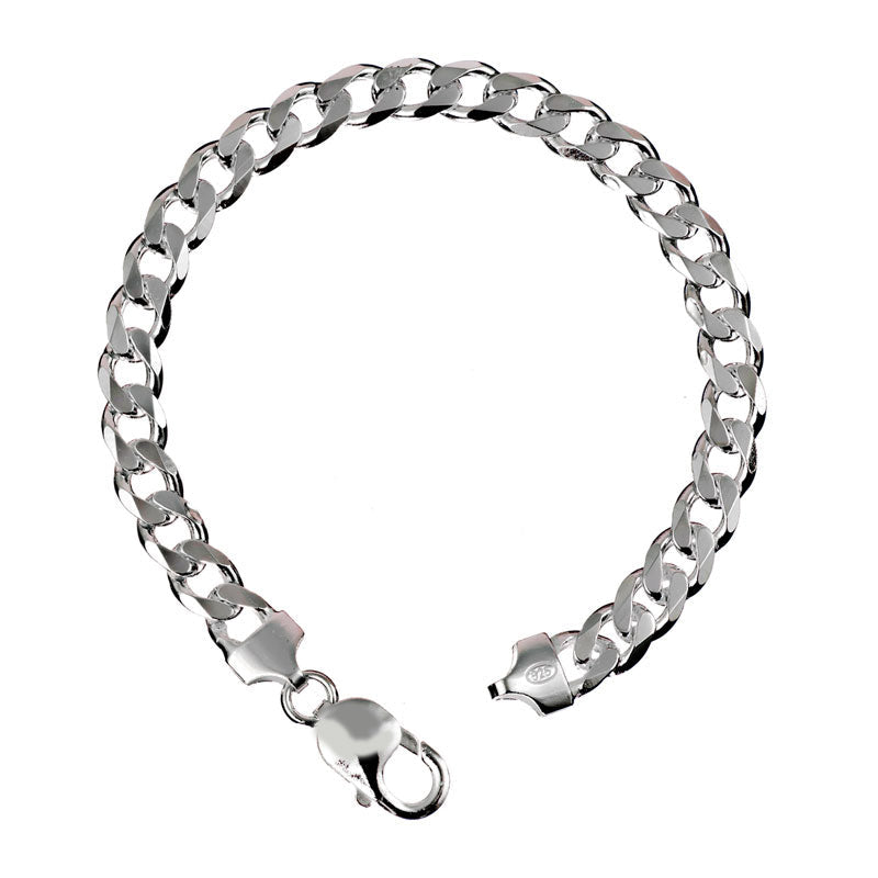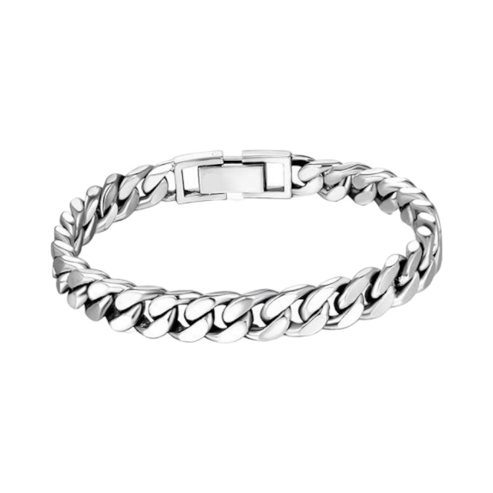 RKC 925 Sterling Silver Men's Bracelet 14K White Gold Plated Weight 30 gm Width 10 mm