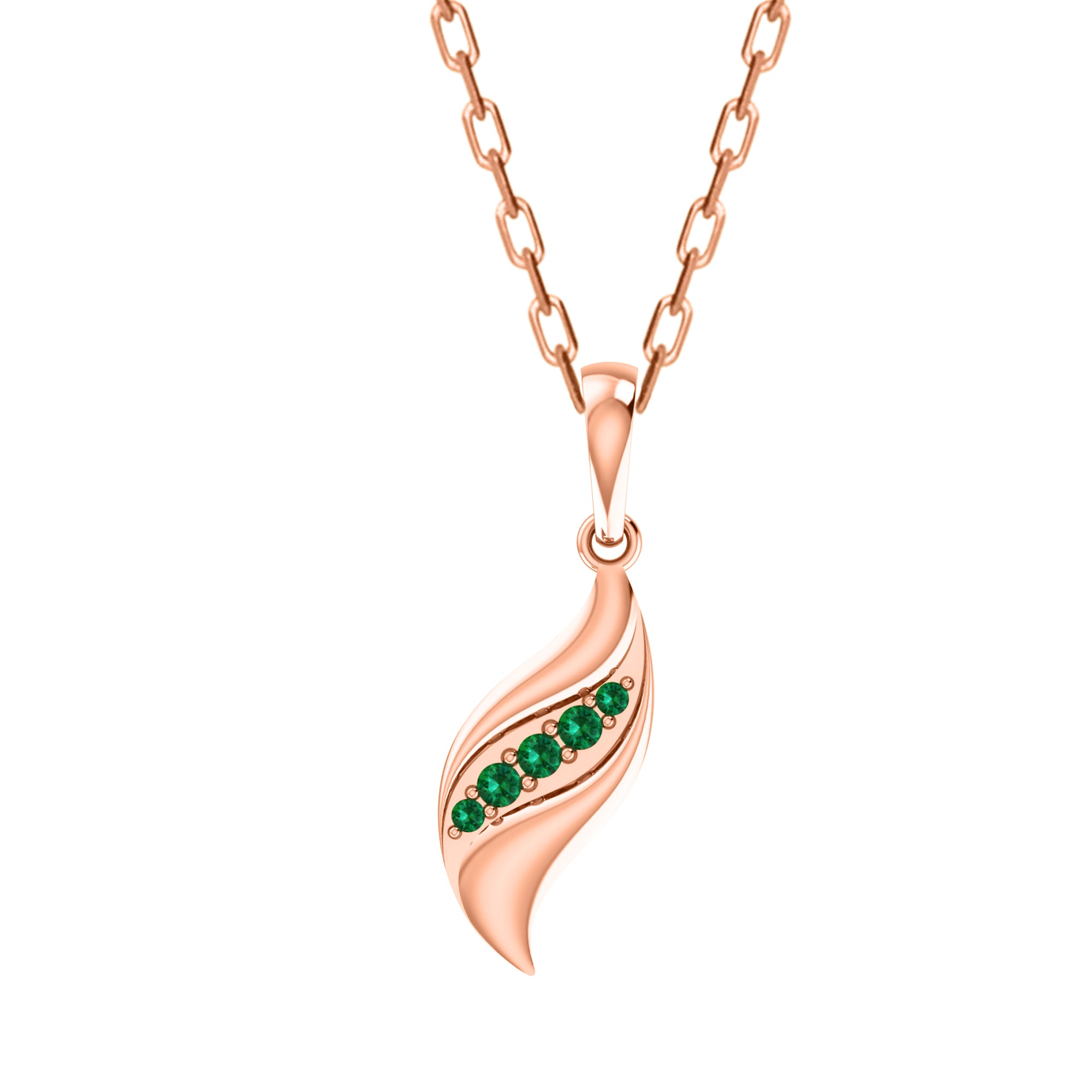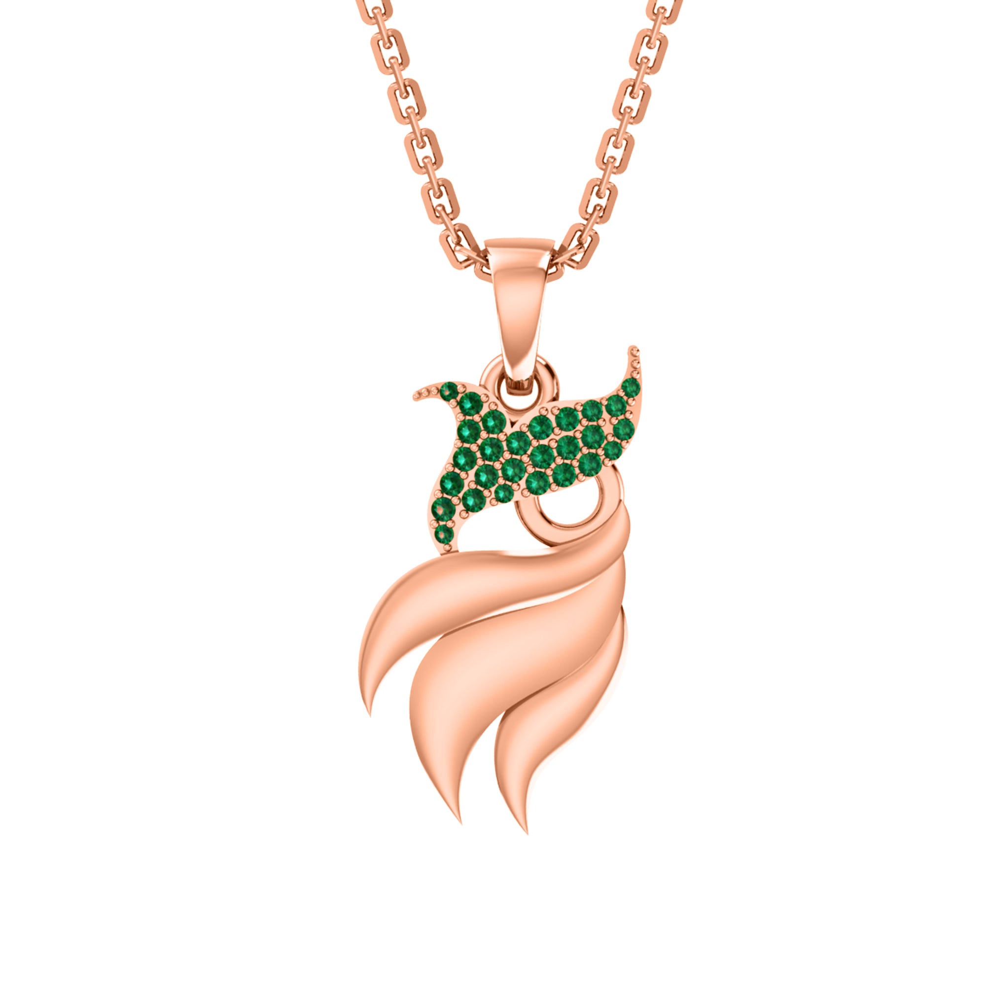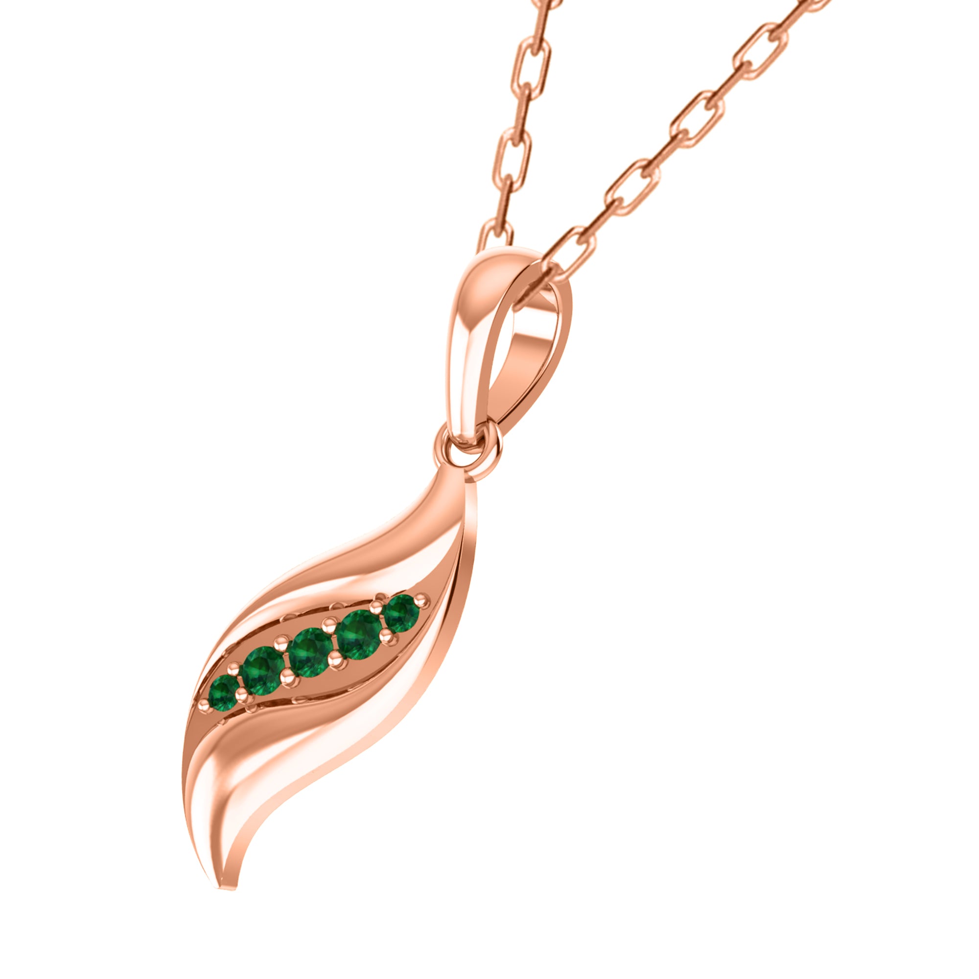 RKC 0.11Ct Emerald Charm Pendant 925 Silver Jewelry 14K Rose Gold Plated Wt 4.10gm Height 23mm