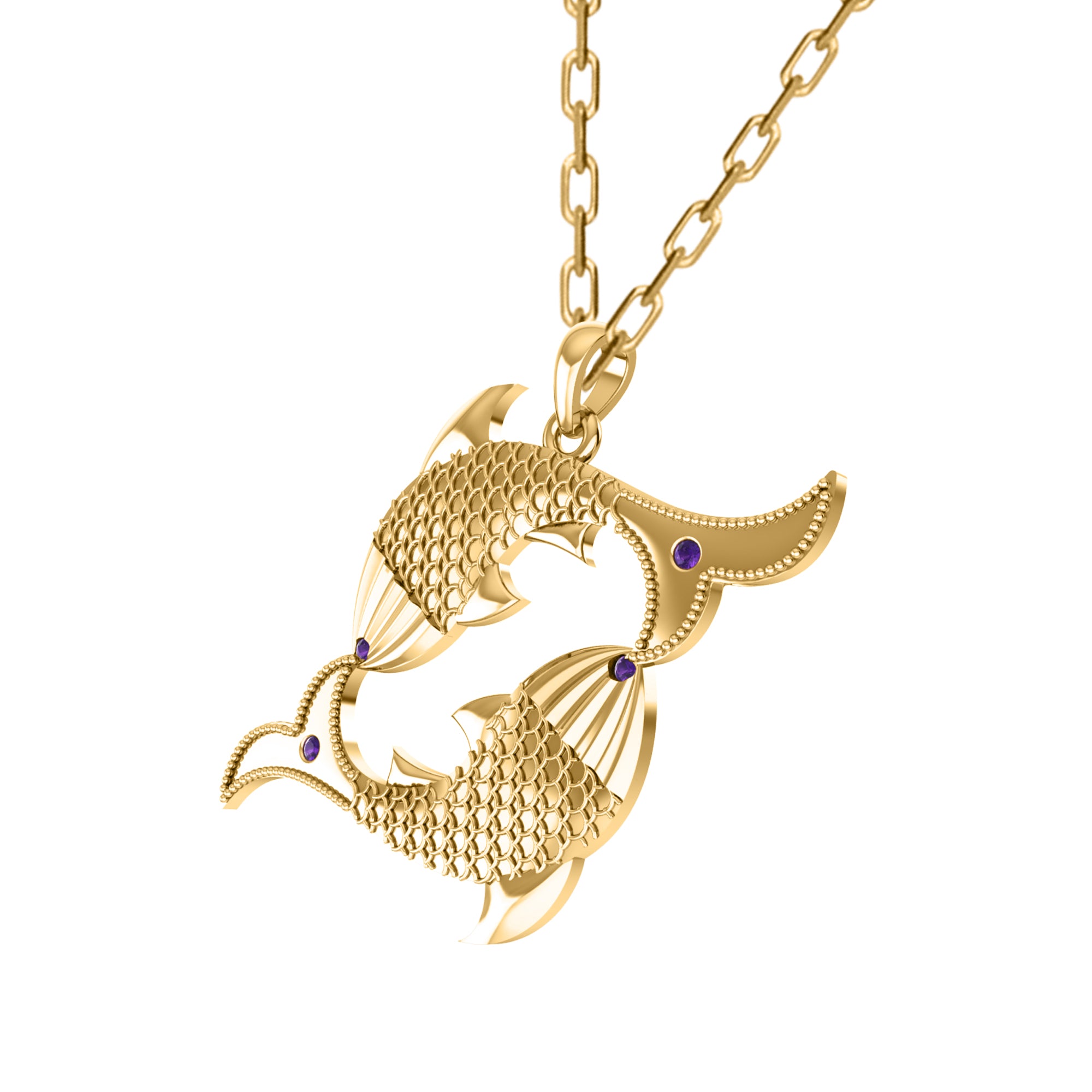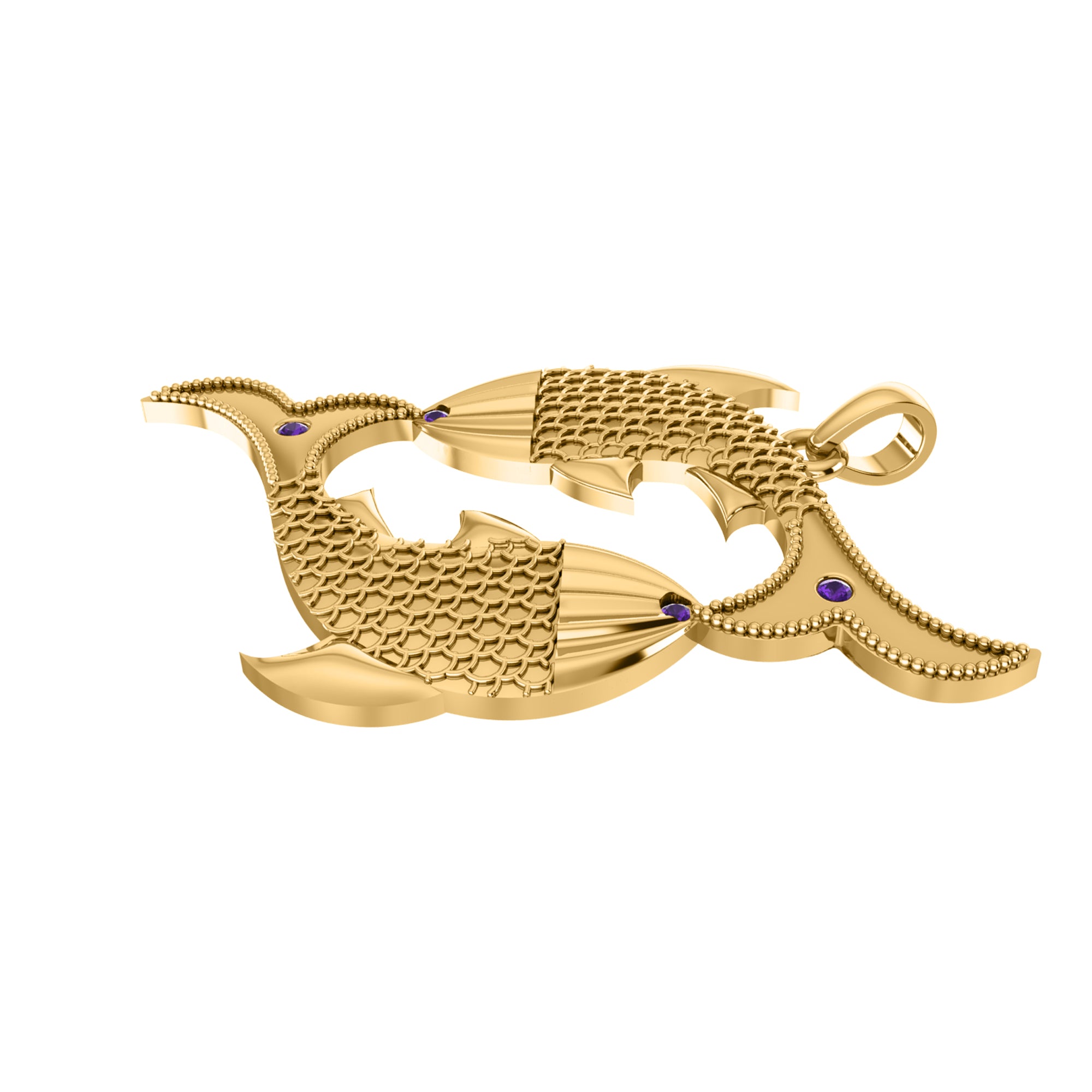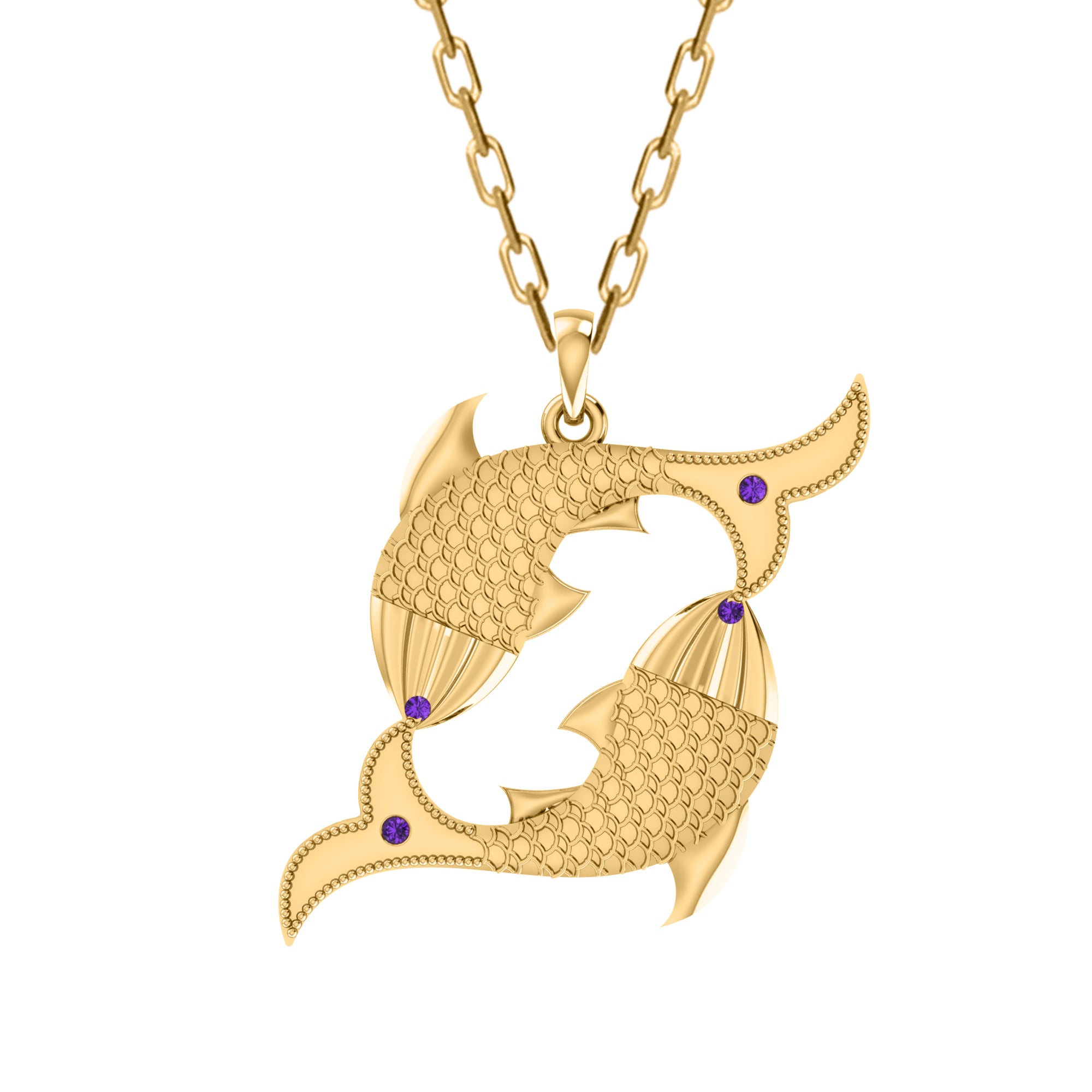 RKC 0.04Ct Amethyst Fish Pendant 925 Silver Jewelry 14K Rose Gold Plated 5.50gm Height 30mm