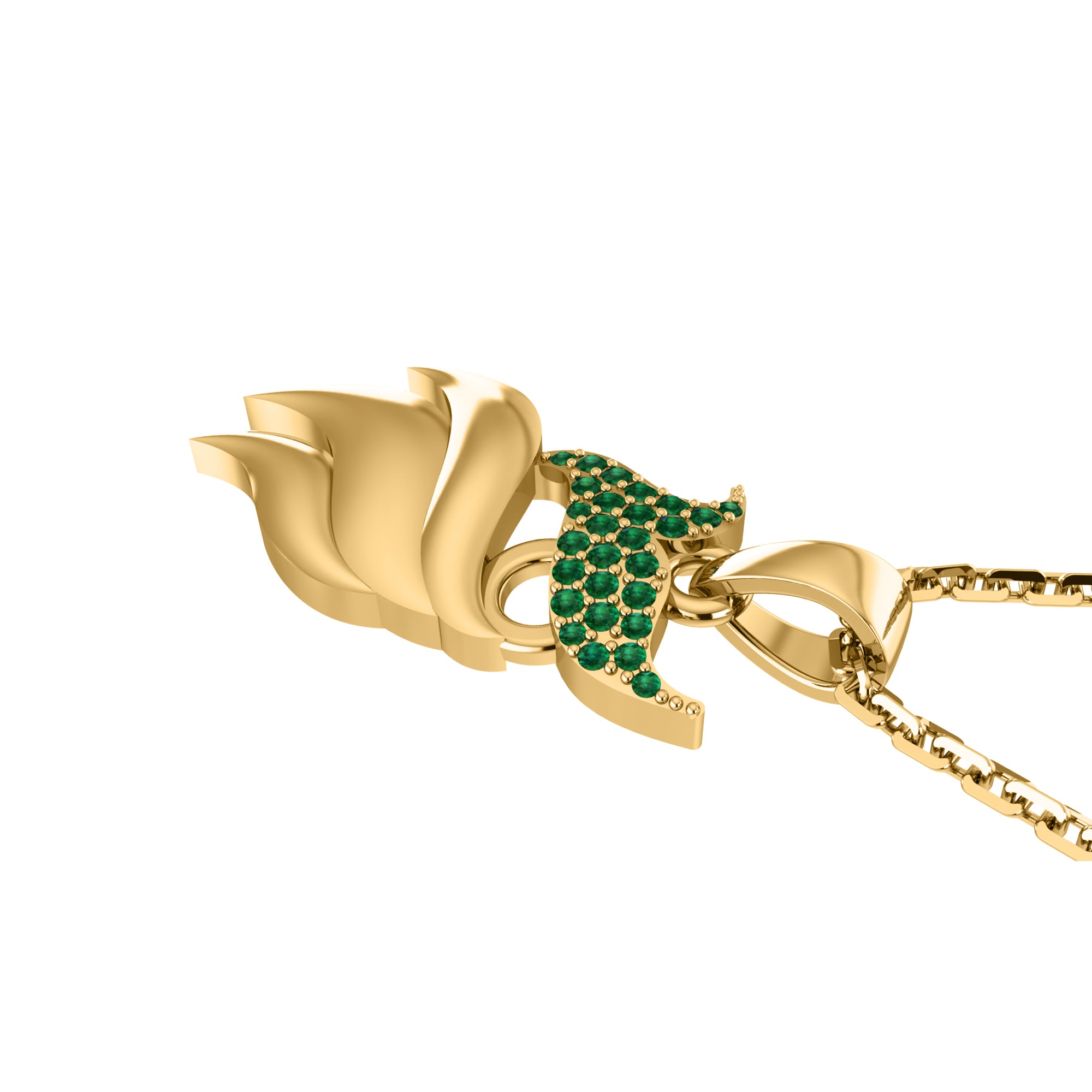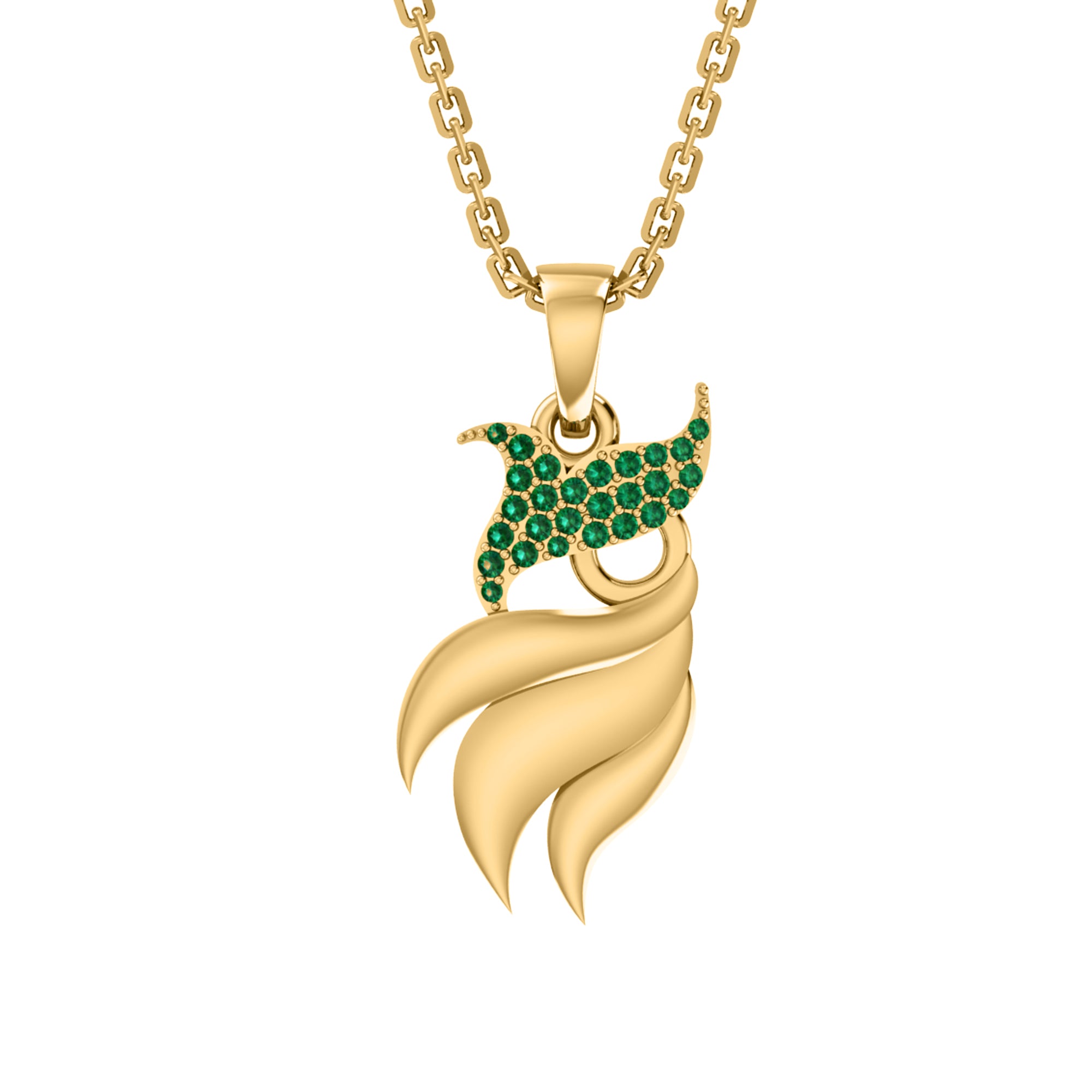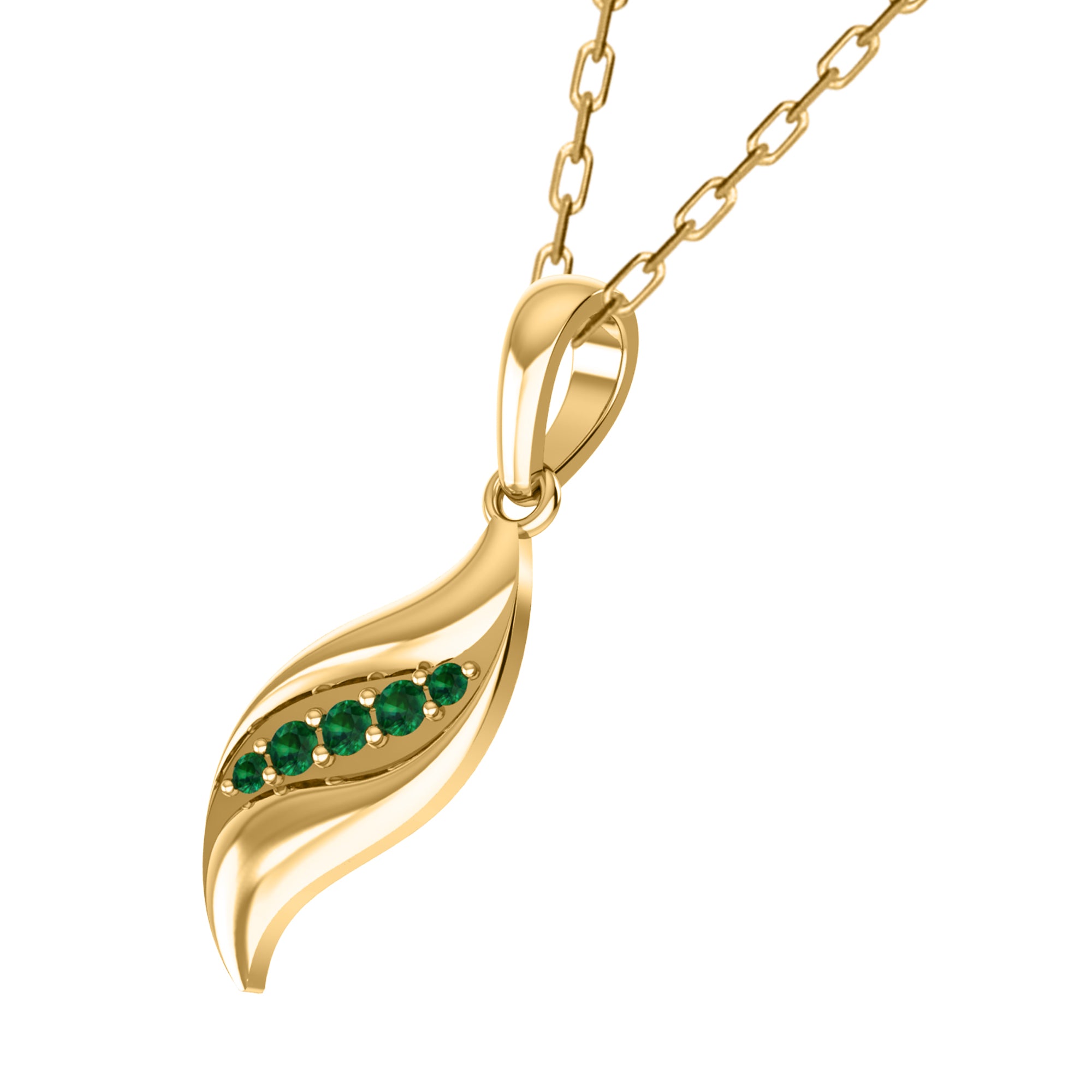 RKC 0.12Ct Emerald Charm Pendant 925 Silver Jewelry 14K Yellow Gold Plated Wt 4.20gm Height 27mm