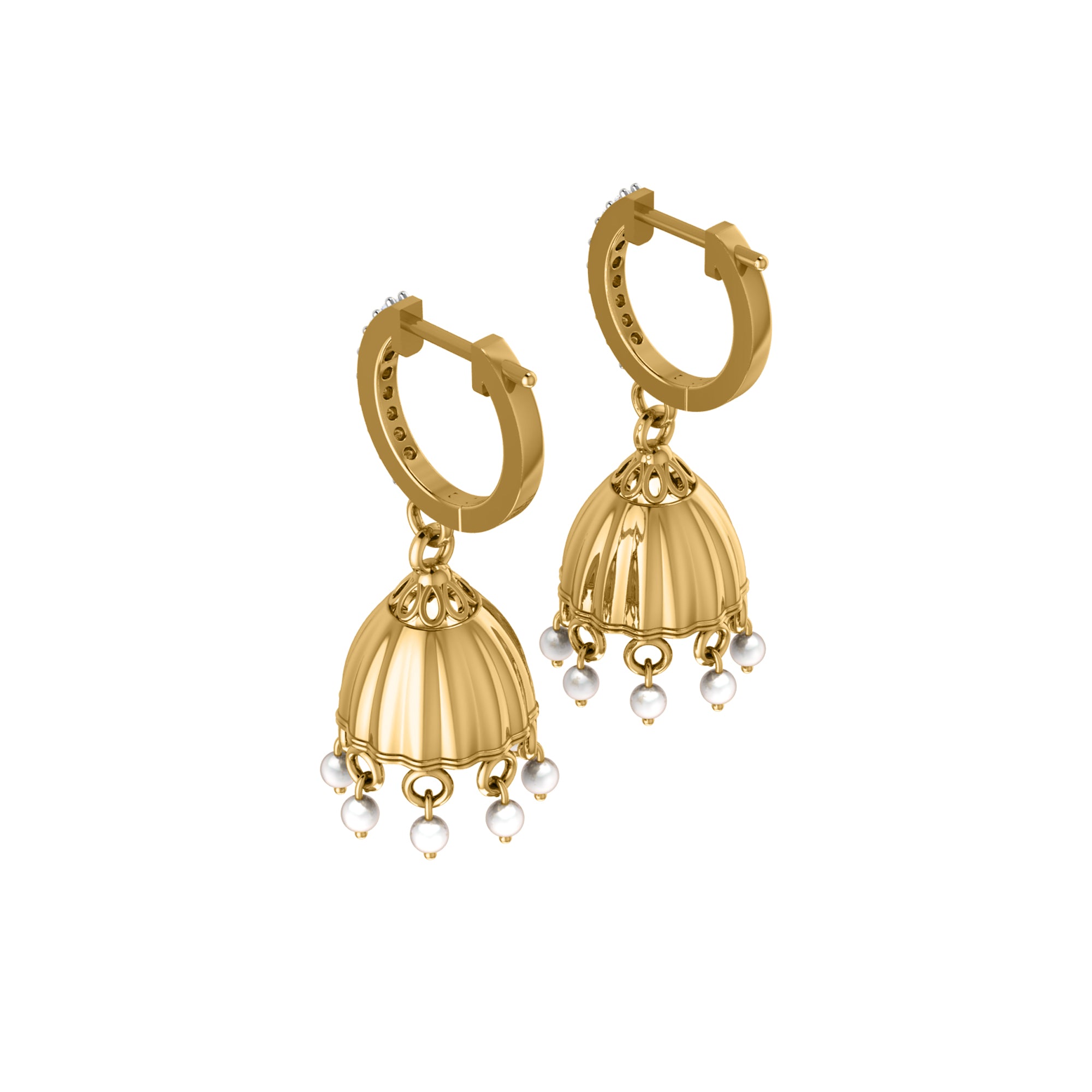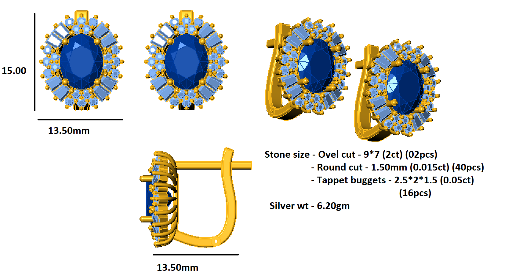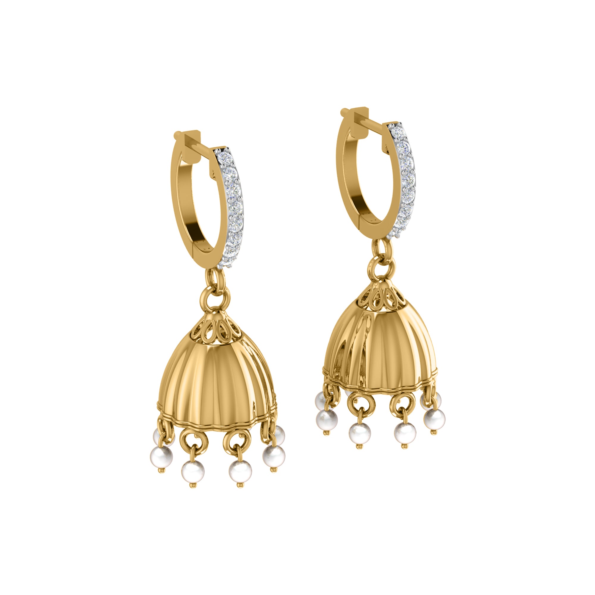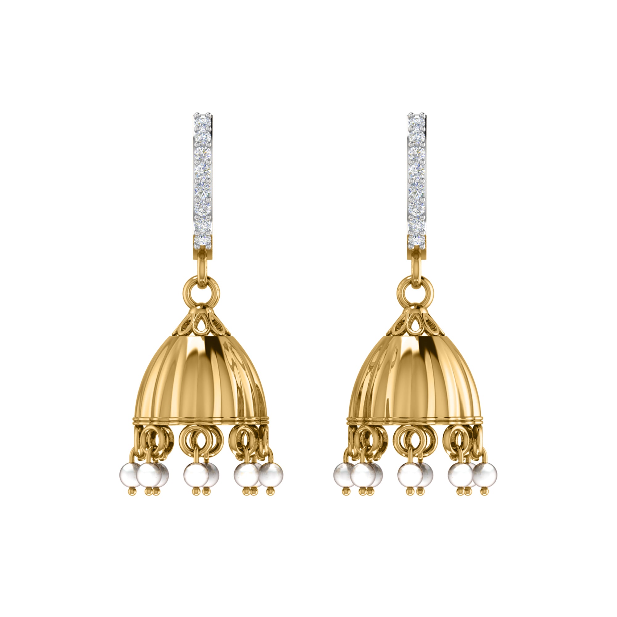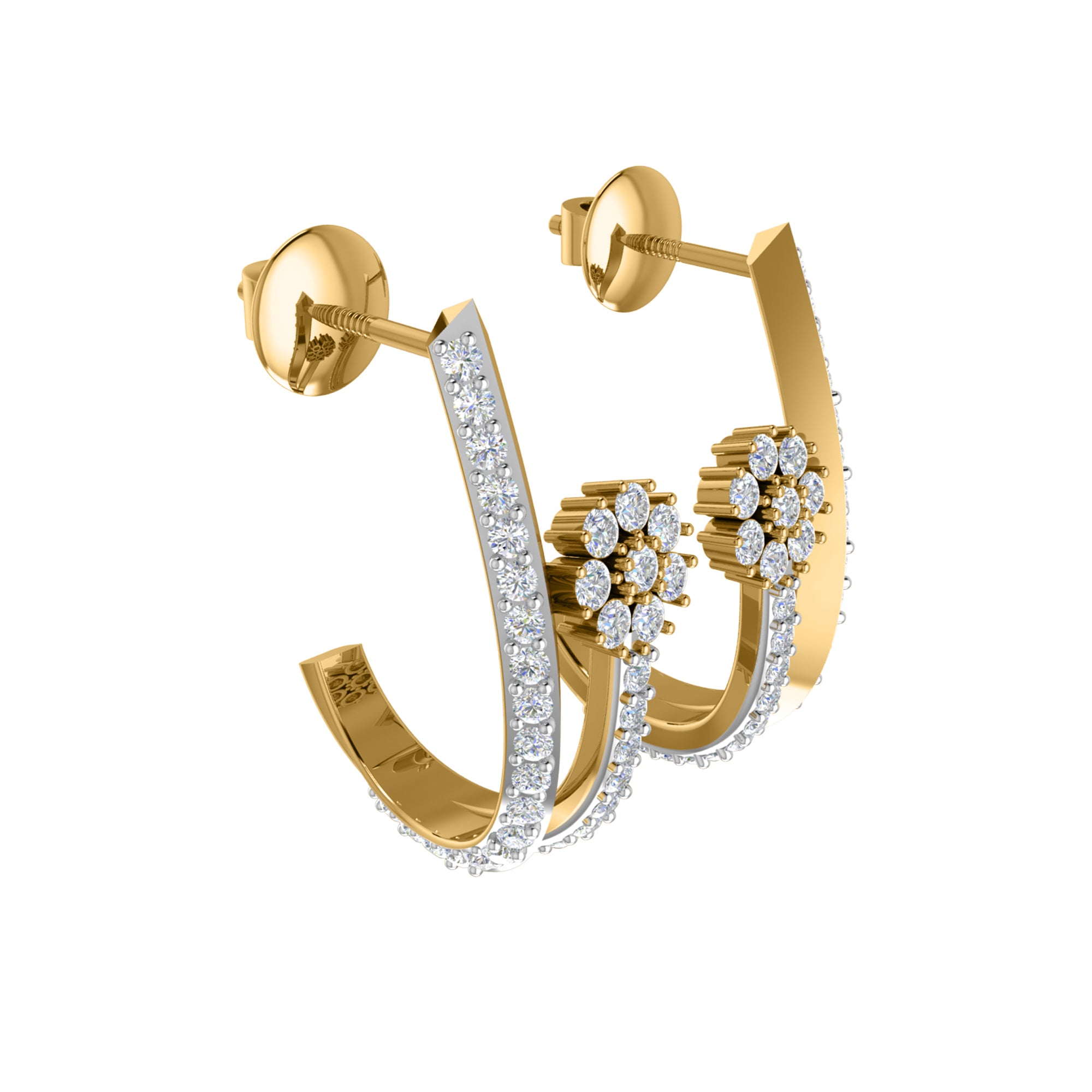 RKC Golden Unique Design Moissanite Hanging Hoop Earrings 14k Yellow Gold Plated Weight 4.5 gm
