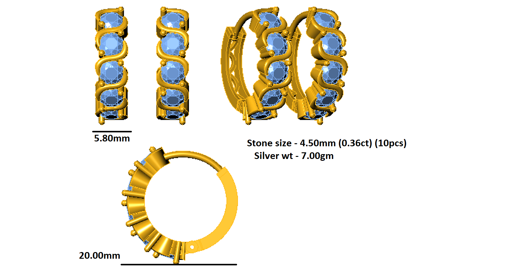 RKC 925 Sterling Silver Hoop Women Earring 14k Yellow Over Product Wt 4.20 GM Height 22.00 MM