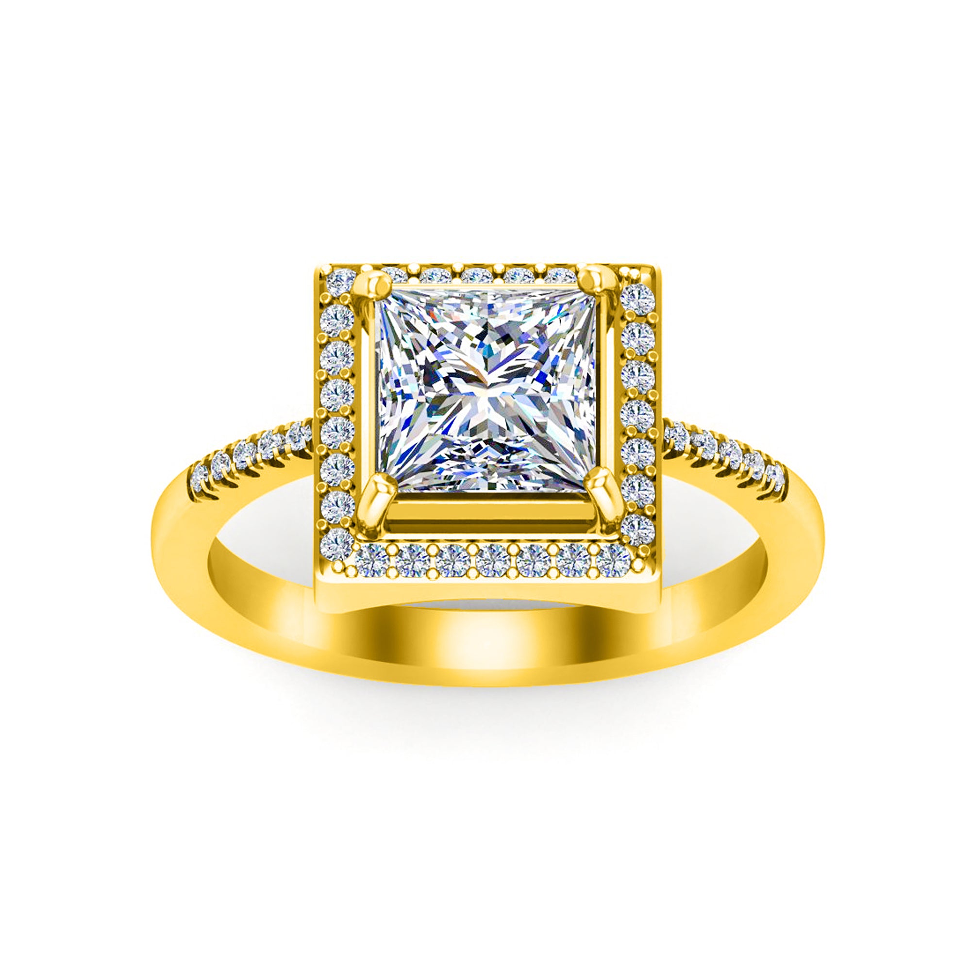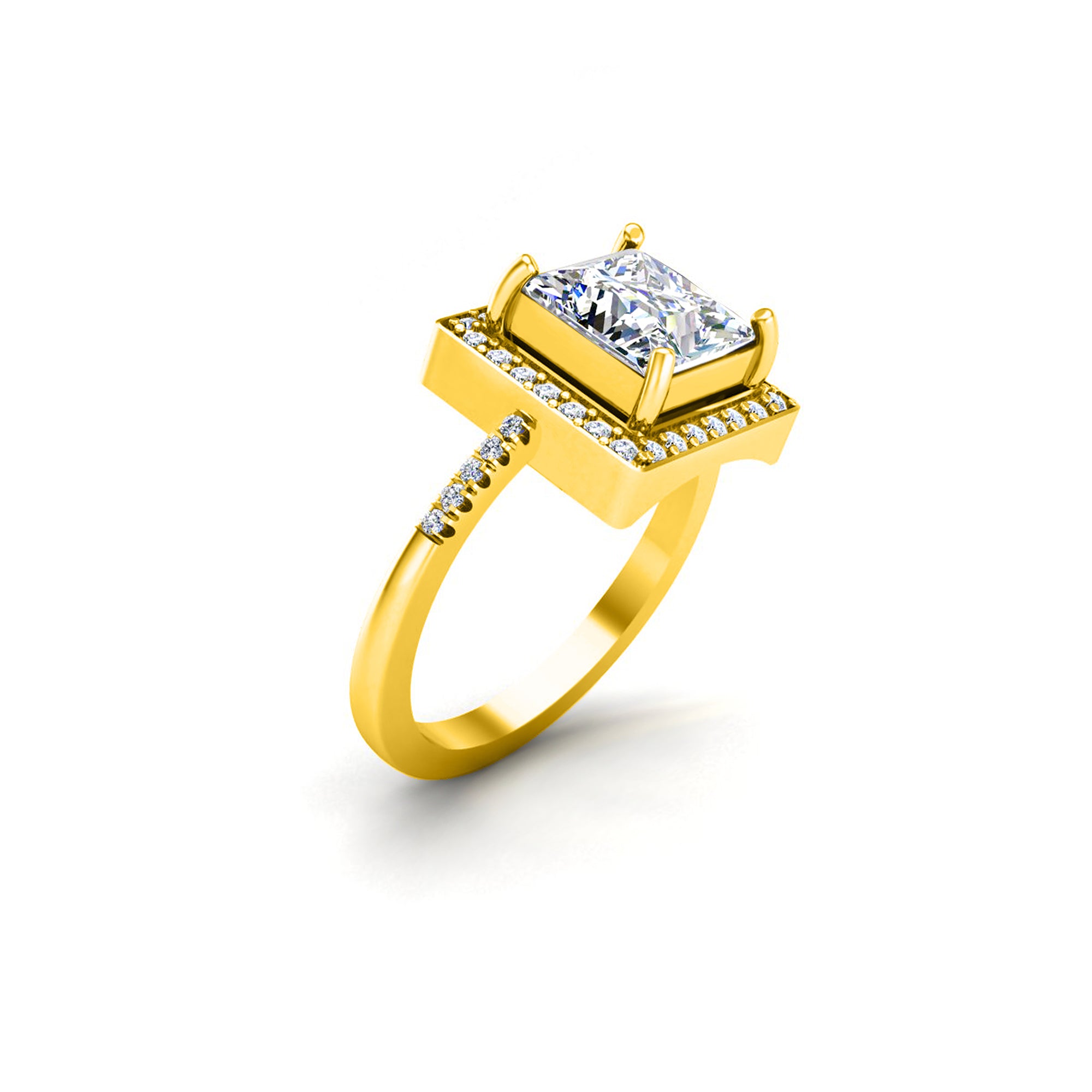 RKC Halo Princess Moissanite 925 Sterling Silver Yellow Gold Plated Women Wedding Ring Wt 3.5 gm
