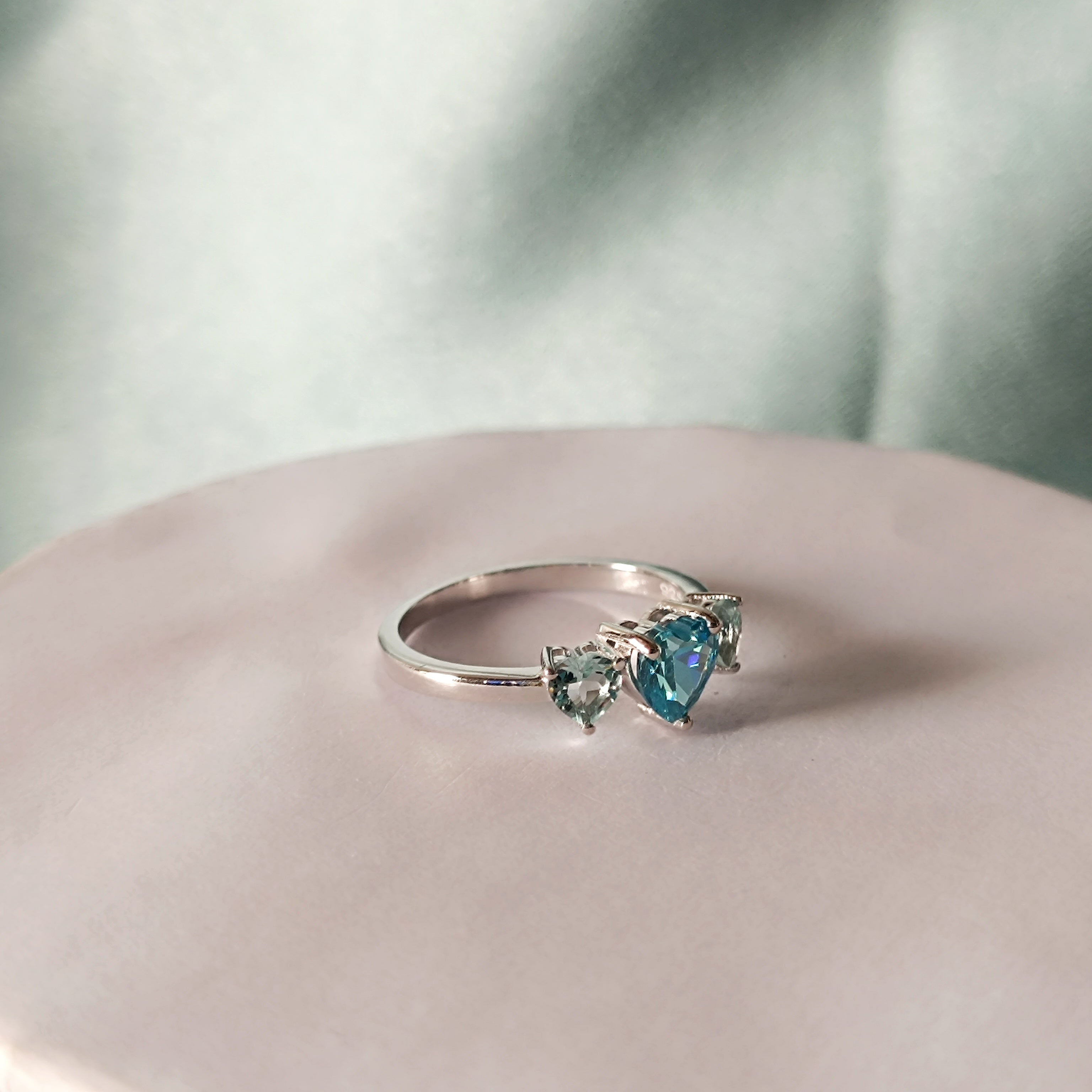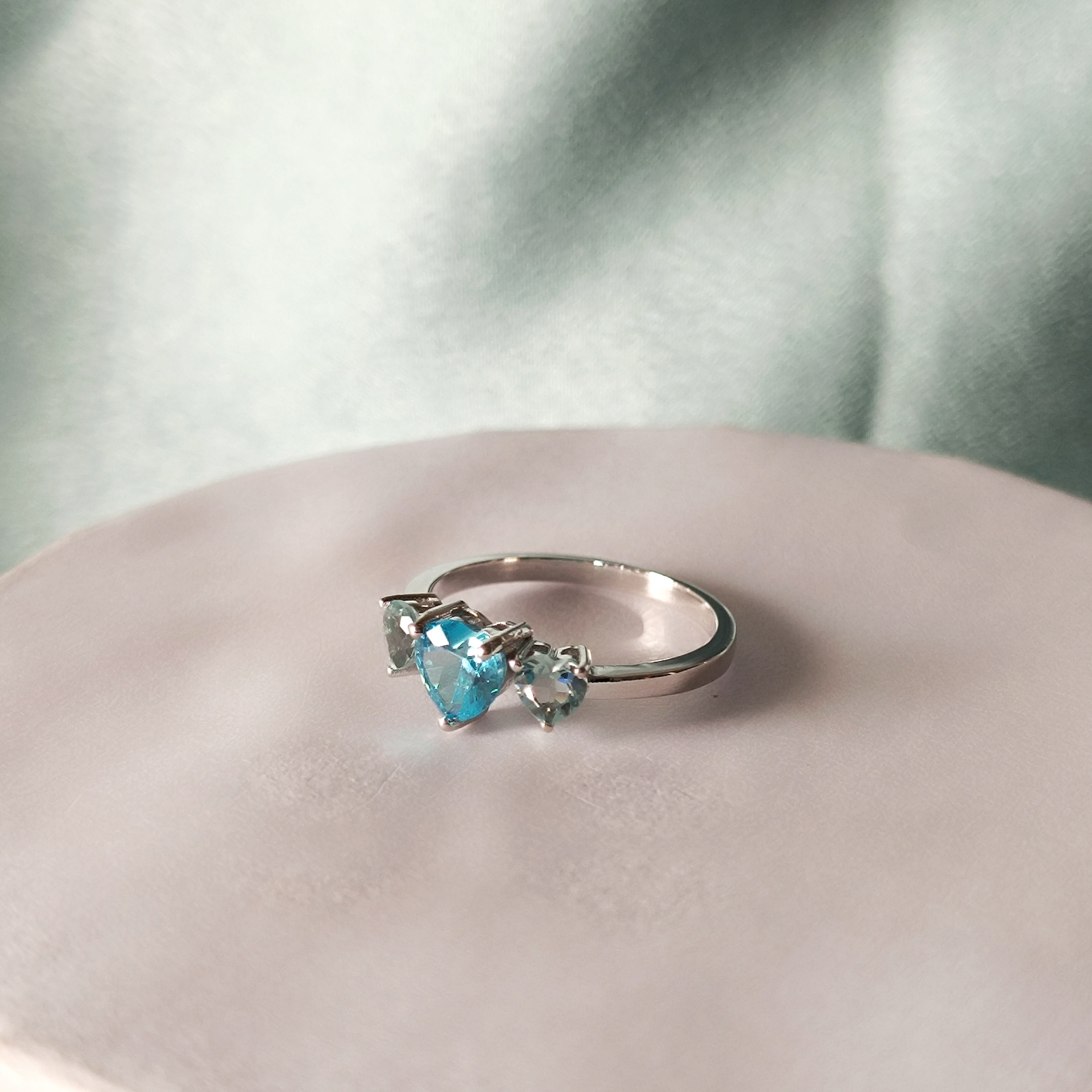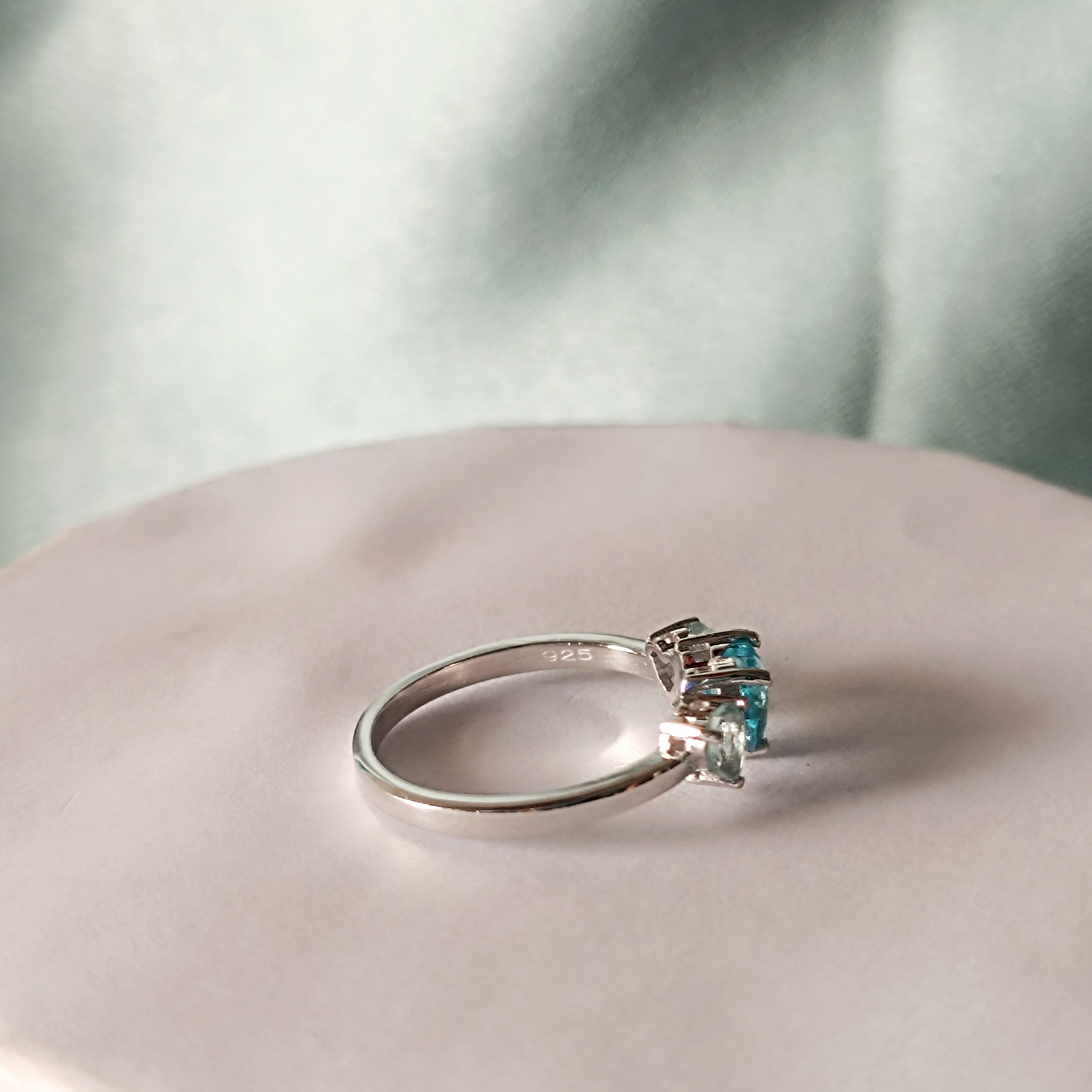 RKC Aqua Blue Gemstone Engagement Wedding Ring 925 Sterling Silver Valentine Gift Ring