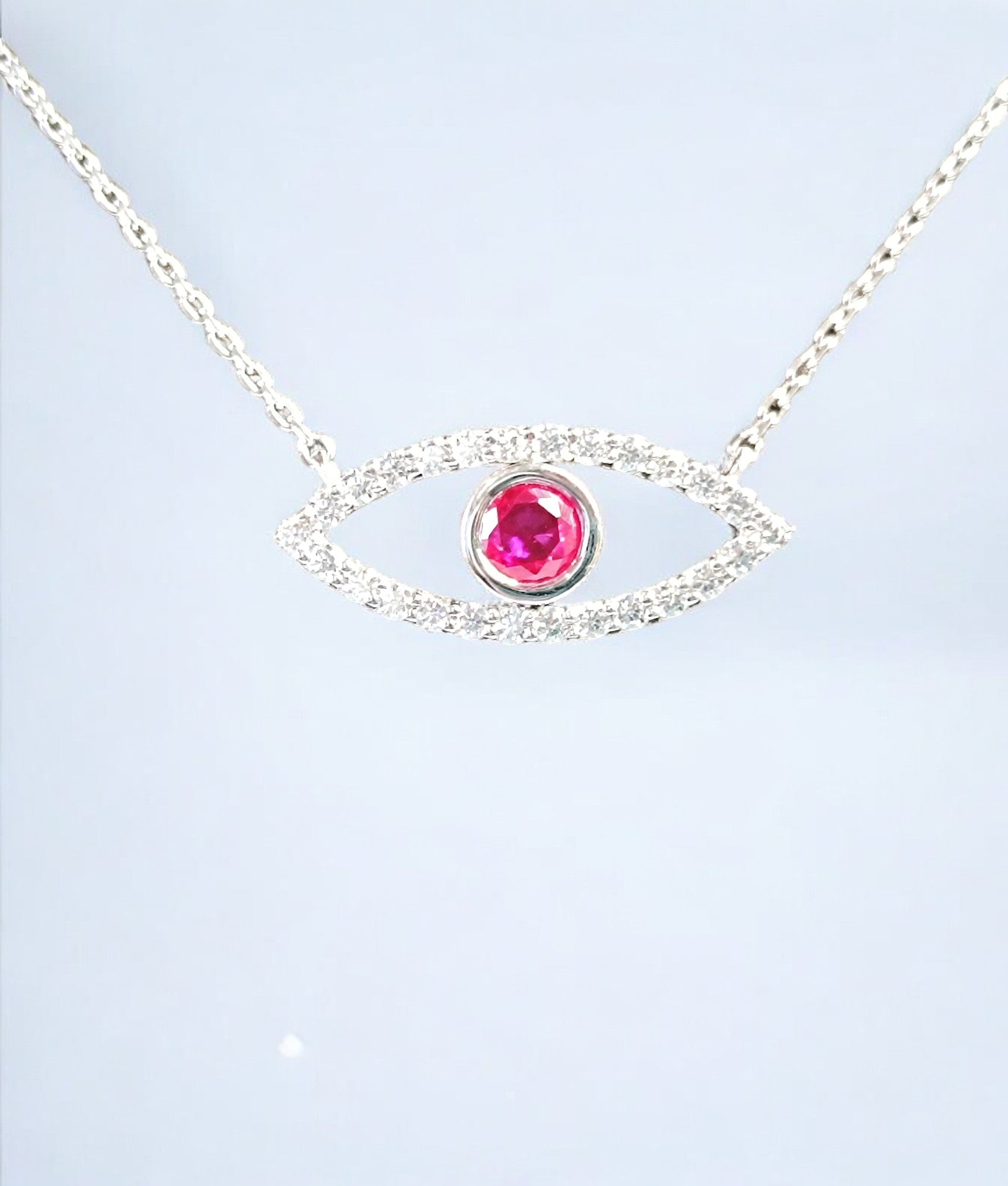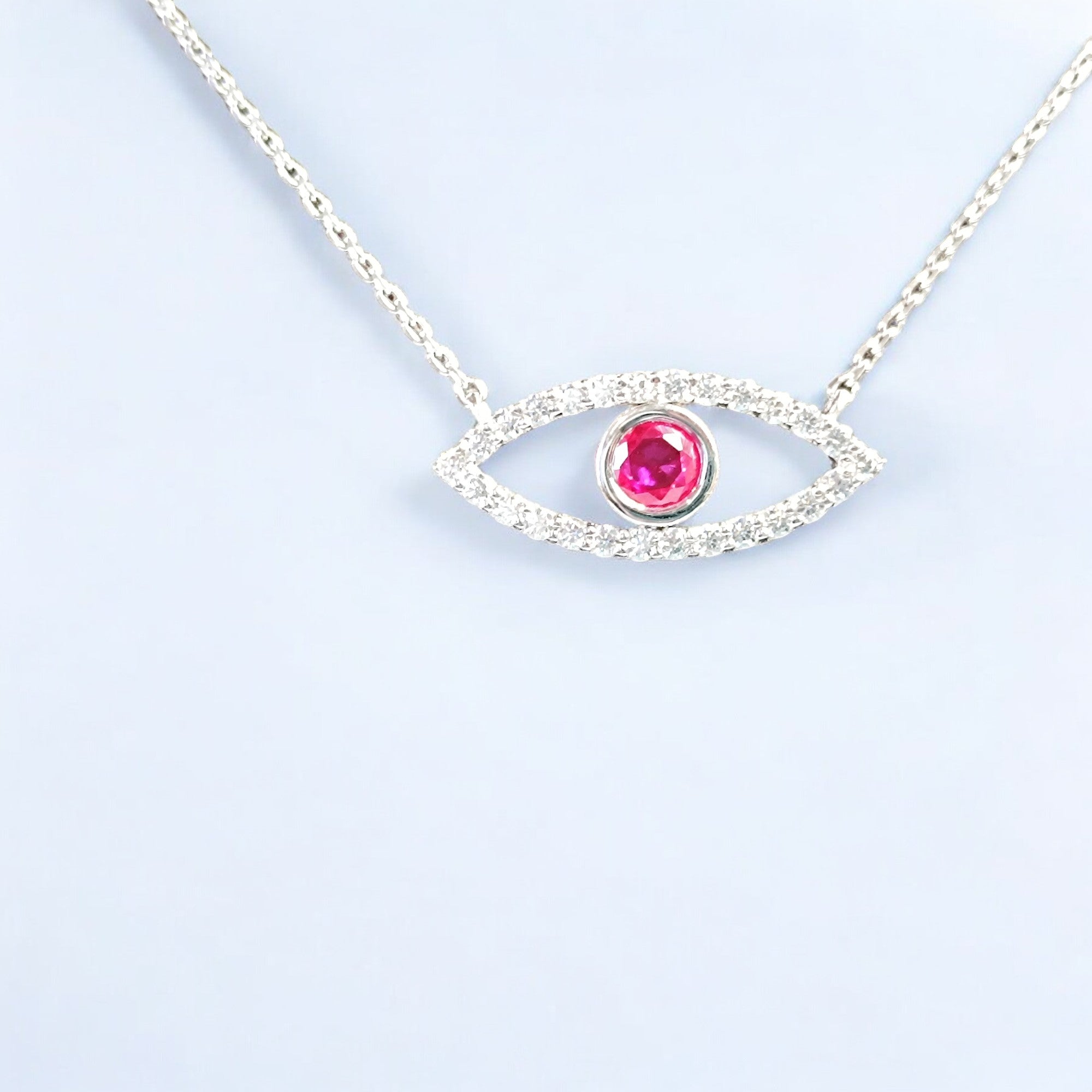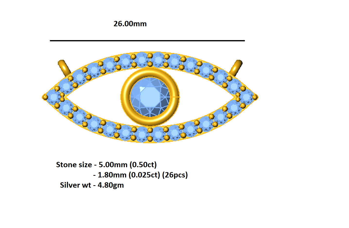 RKC Glamour 1.15 Ct Evil Eye Pendant 14K White Over Silver Wt 4.80gm Width 26.00 mm