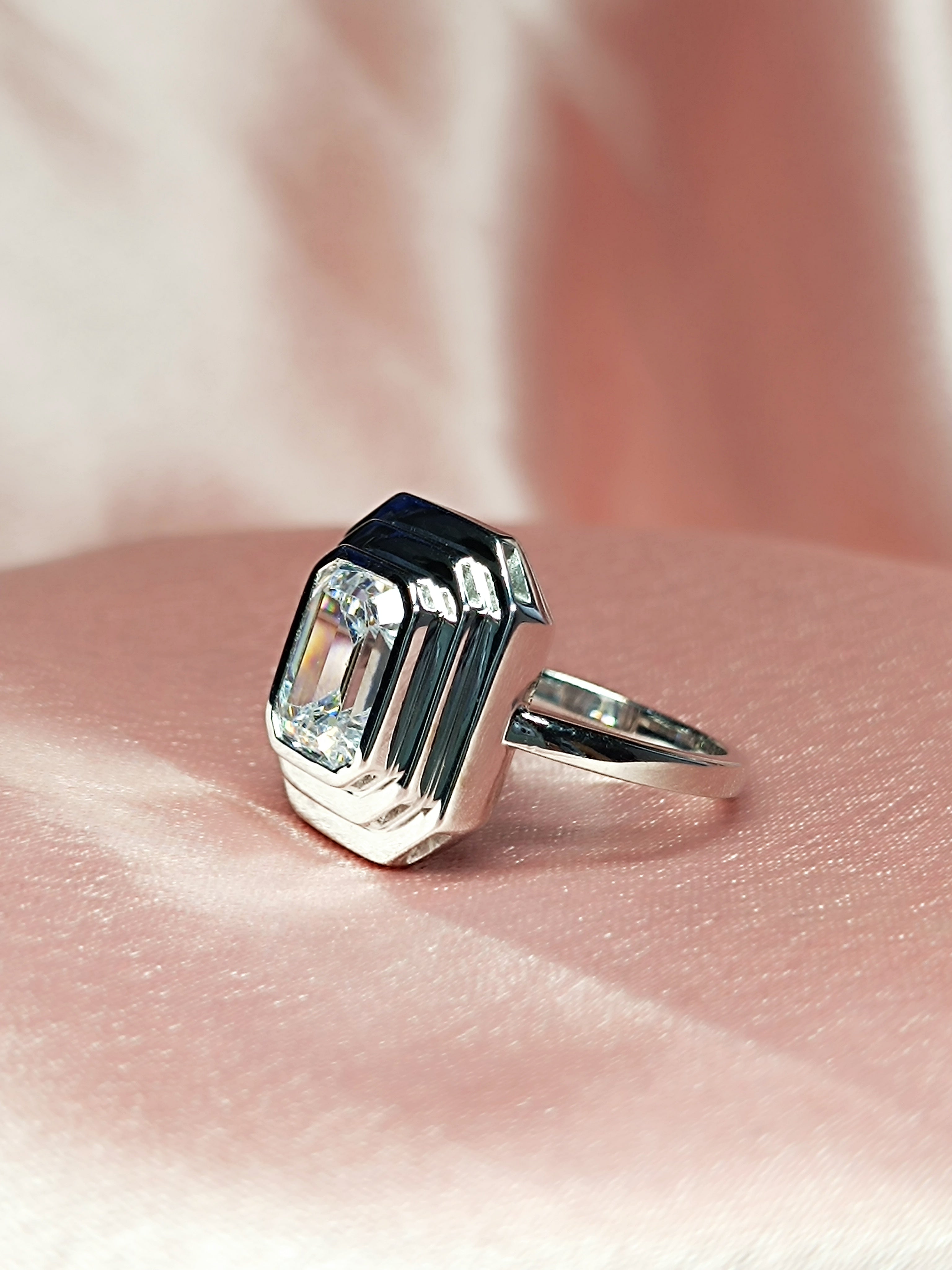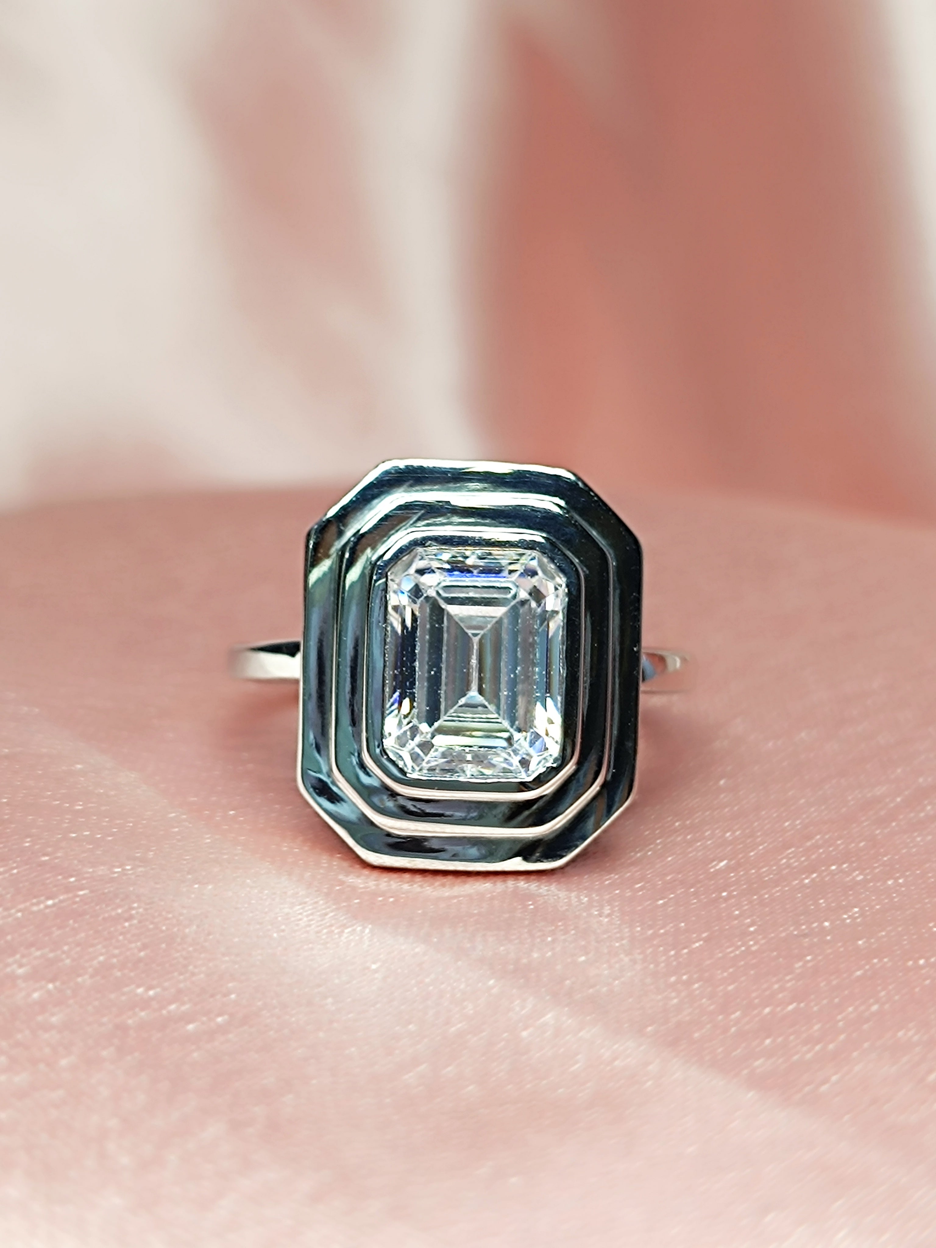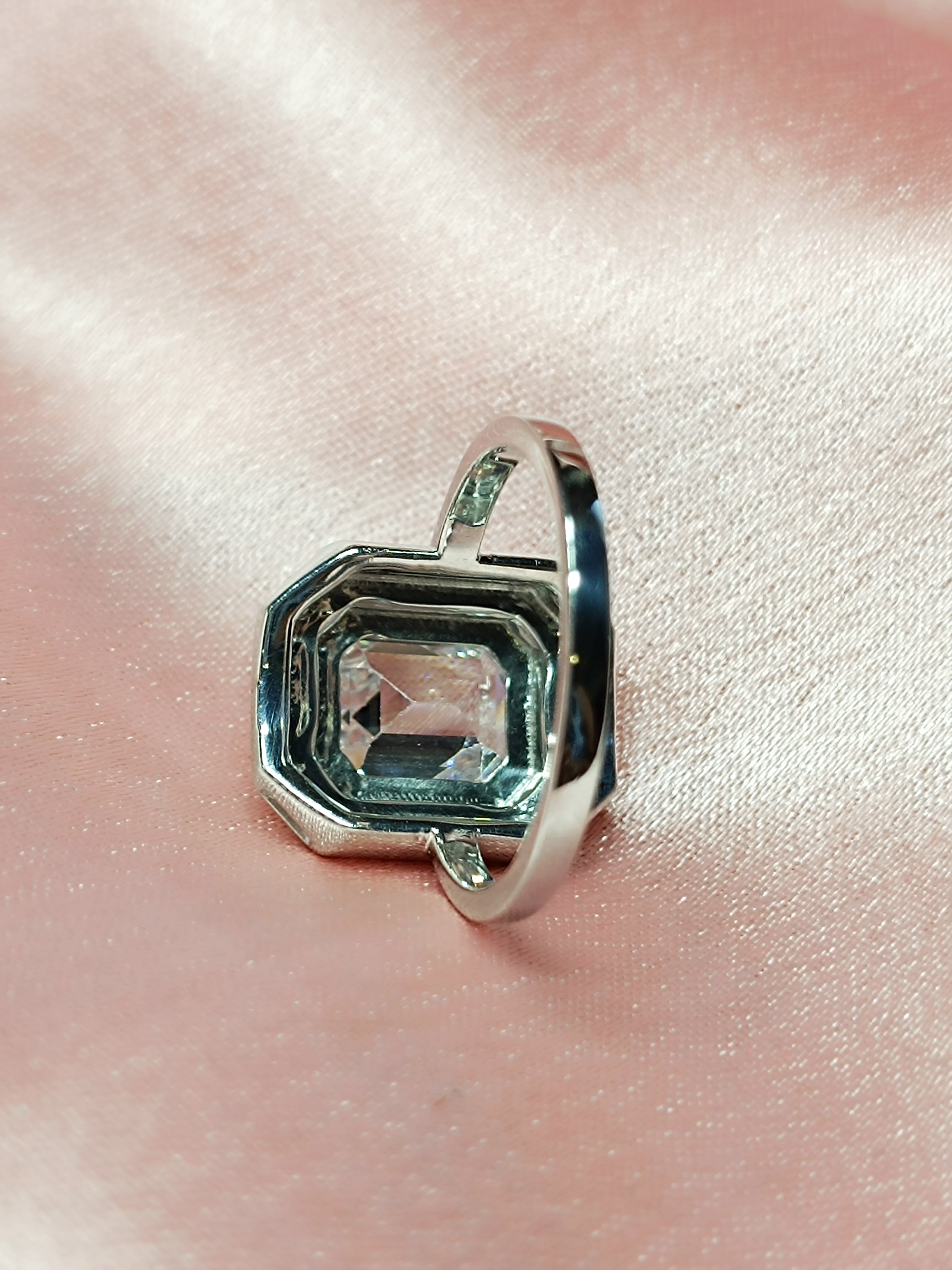 RKC 0.90 Ct Emerald Cut Certified Moissanite Engagement Rings 925 Sterling Silver Weight 3.5 gm
