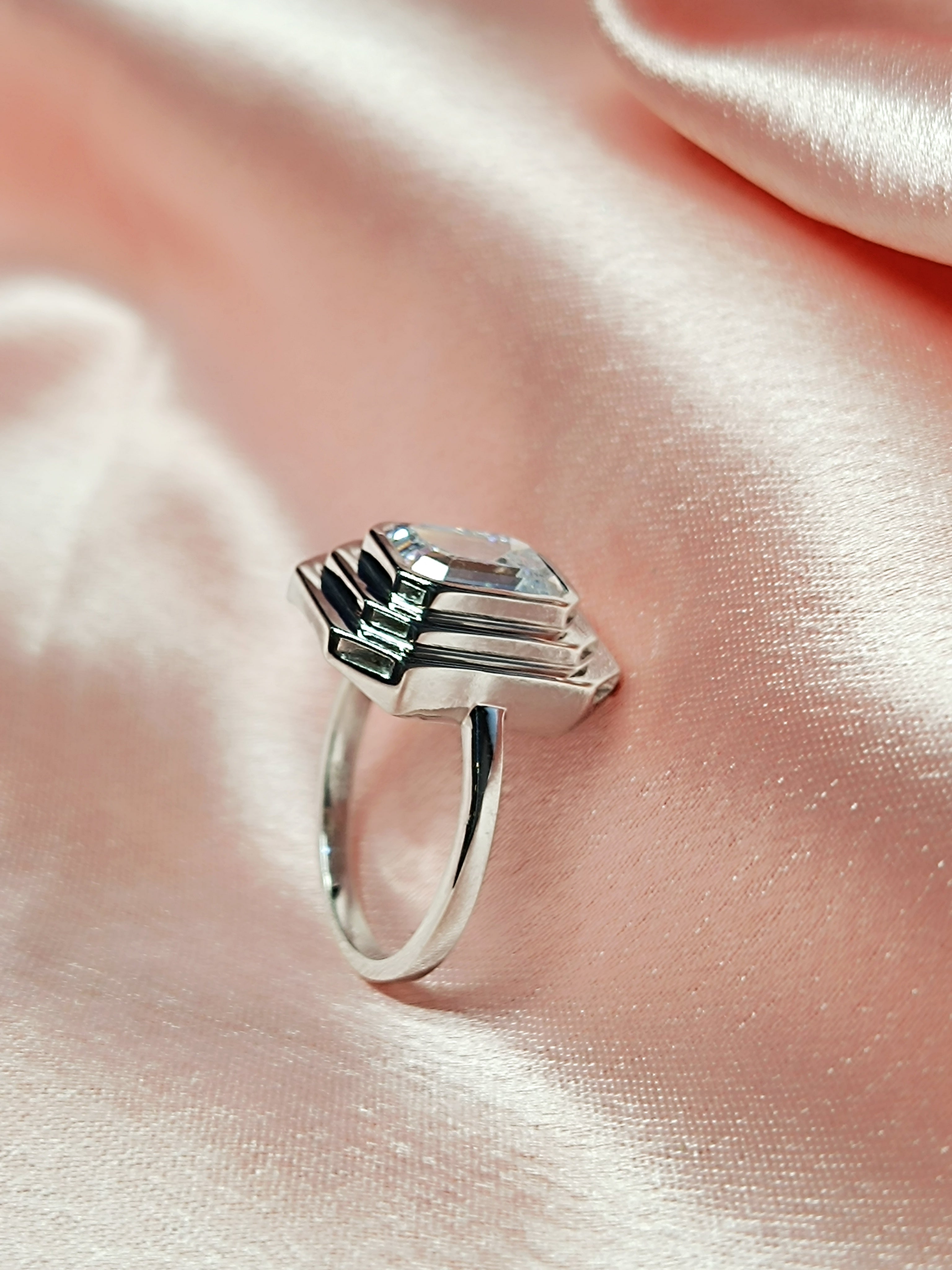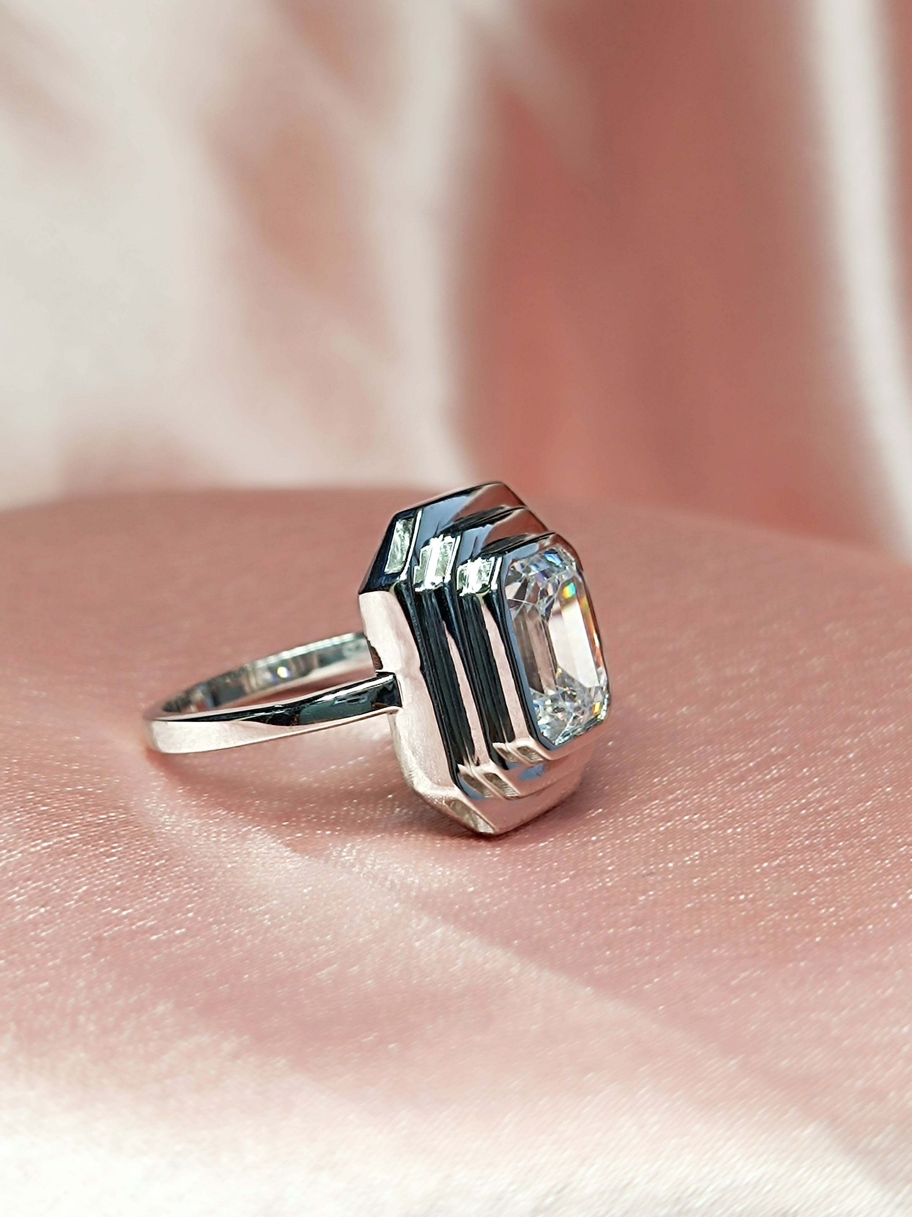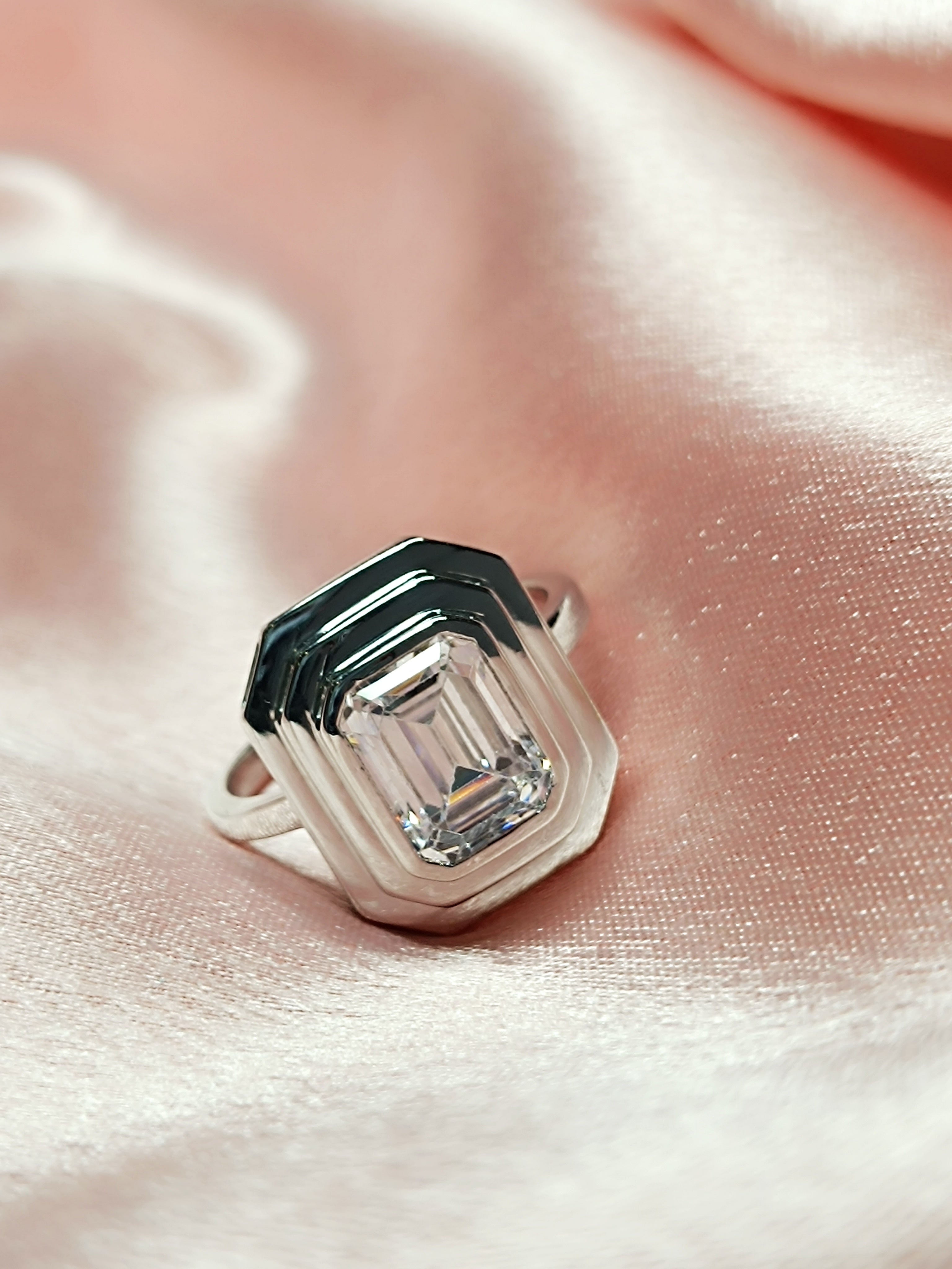 RKC 0.90 Ct Emerald Cut Certified Moissanite Engagement Rings 925 Sterling Silver Weight 3.5 gm