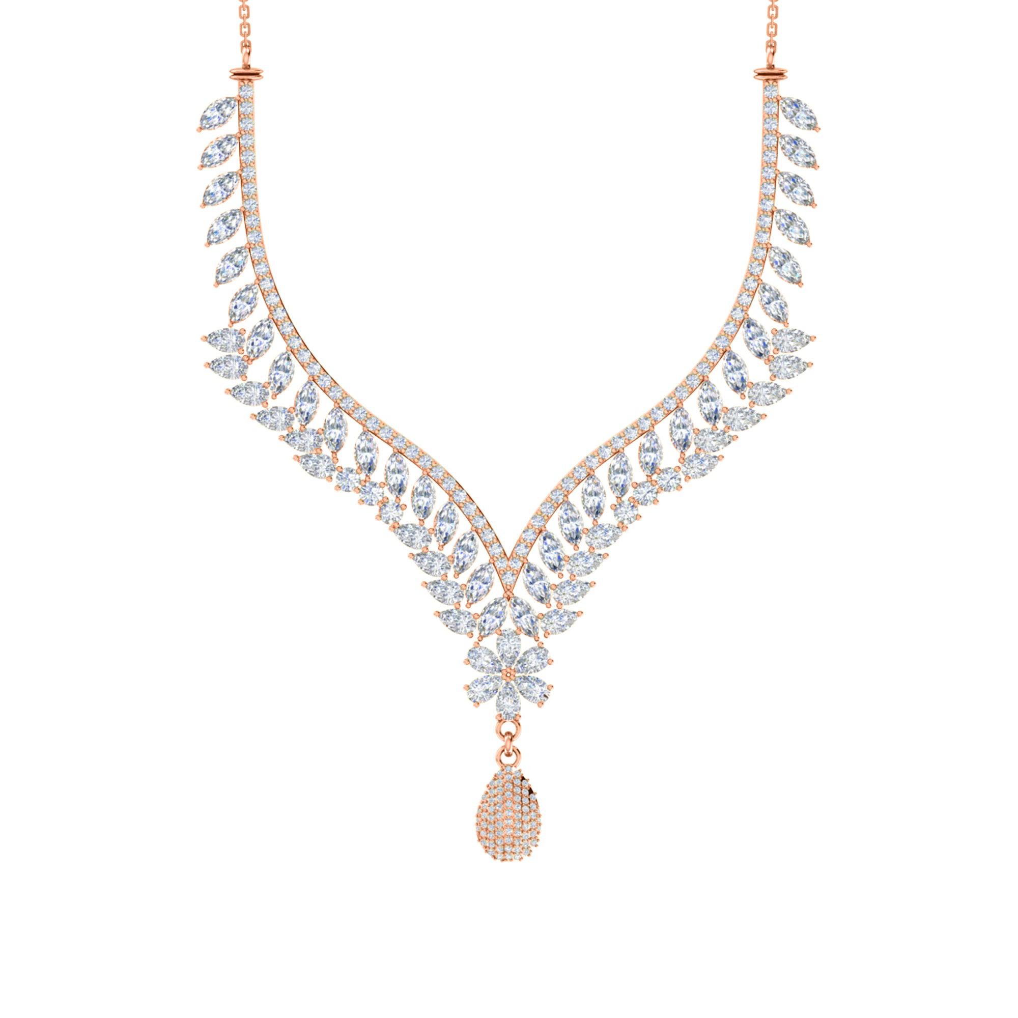RKC 18 CT Moissanite Charming Necklace 925 Silver 14k Rose gold Plated Product Weight 17.00 GM Height 100.00 MM