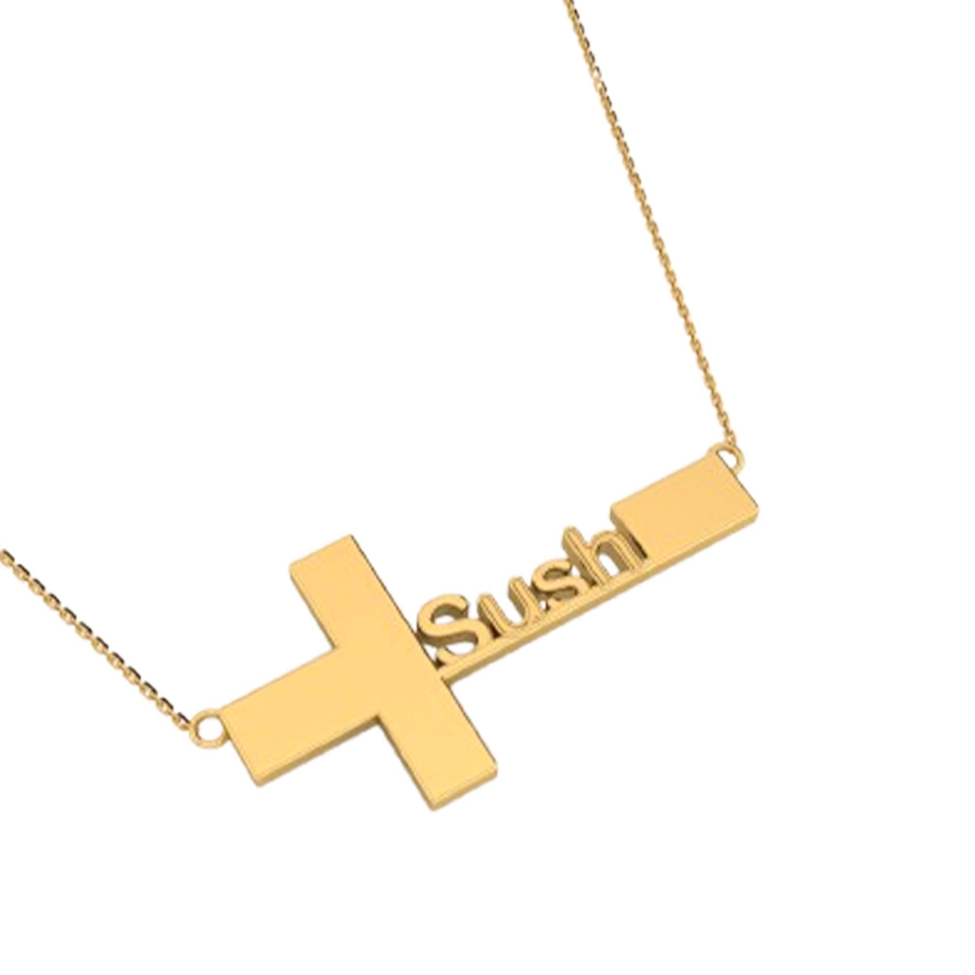 RKC SUSH Name Cross Shape Pendant Necklace Birthday Gift For Girls 925 Sterling Silver