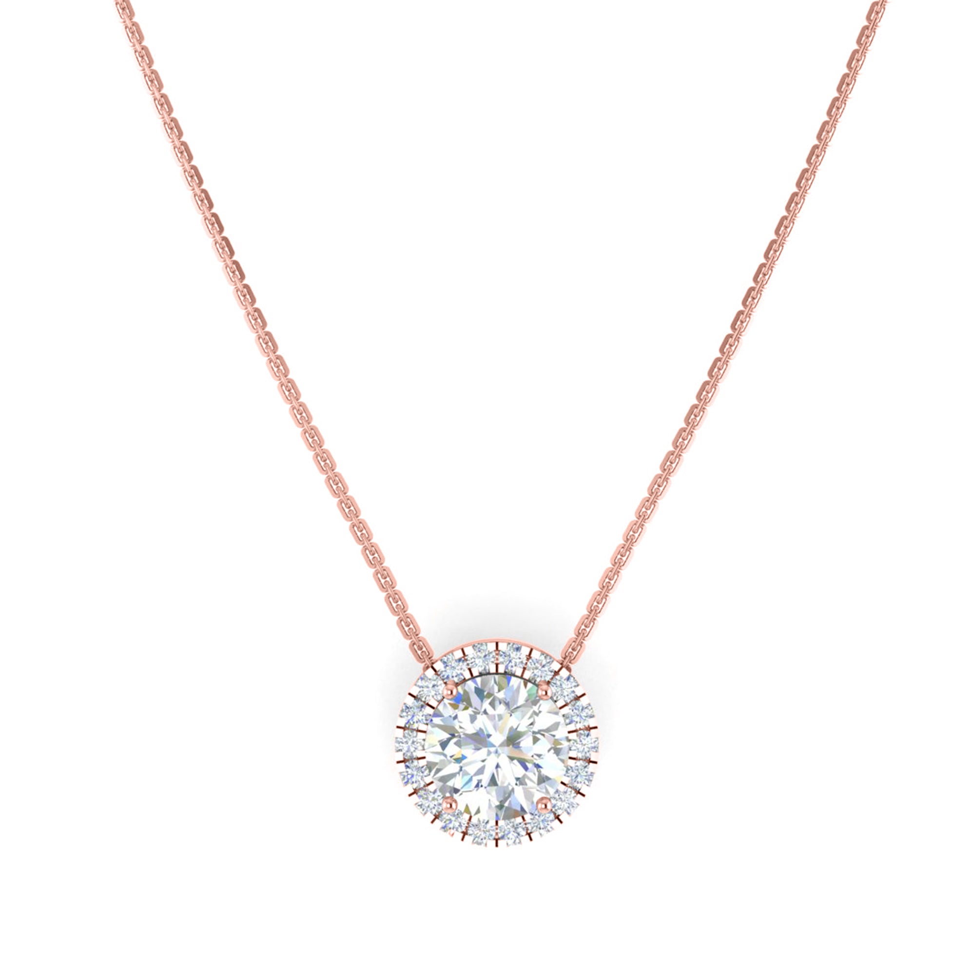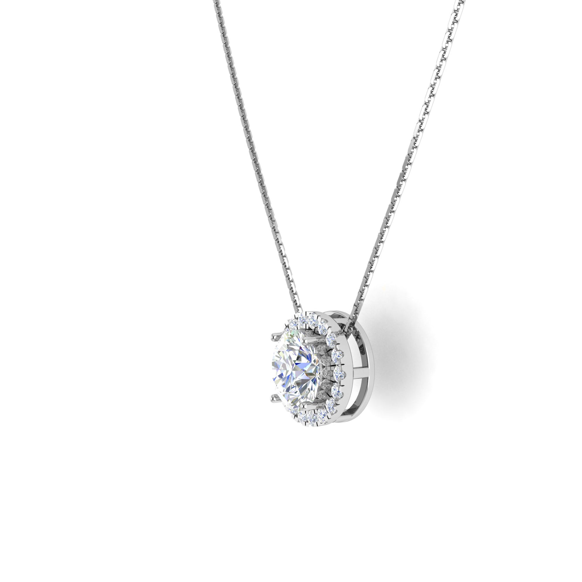 RKC Silver Halo 0.33 CT Moissanite Round Cut Women Pendant 925 Silver Wt 2.9 gm with Height 13mm & Box Chain