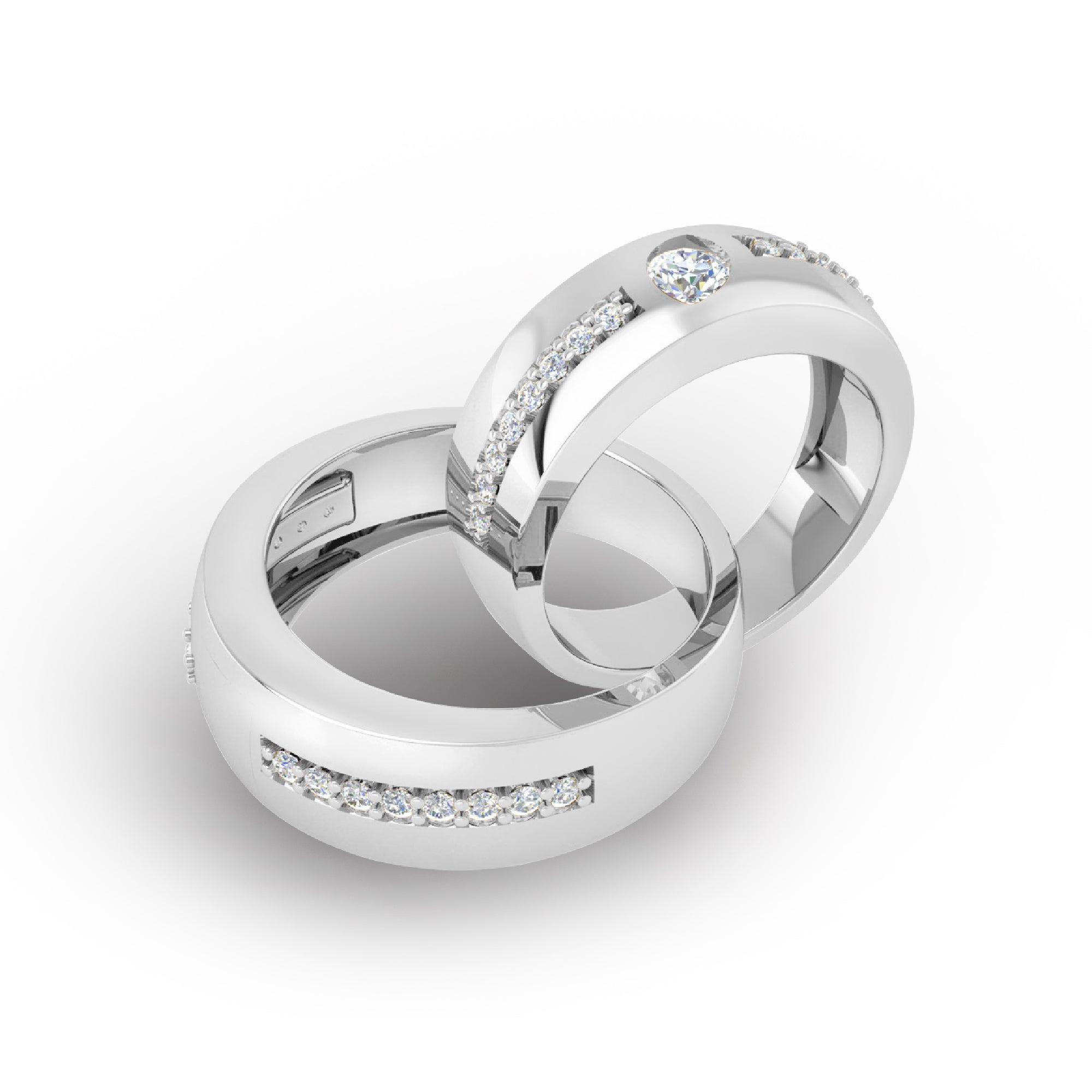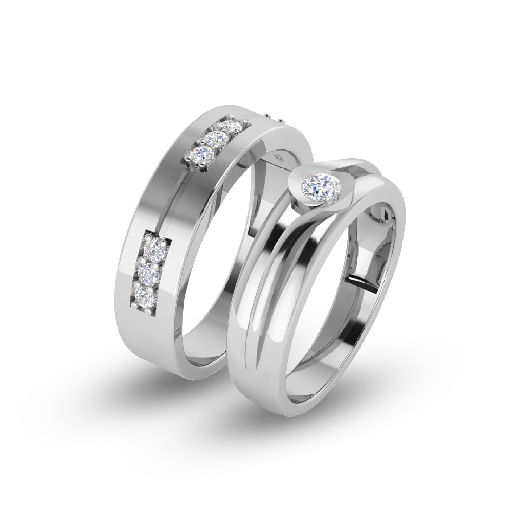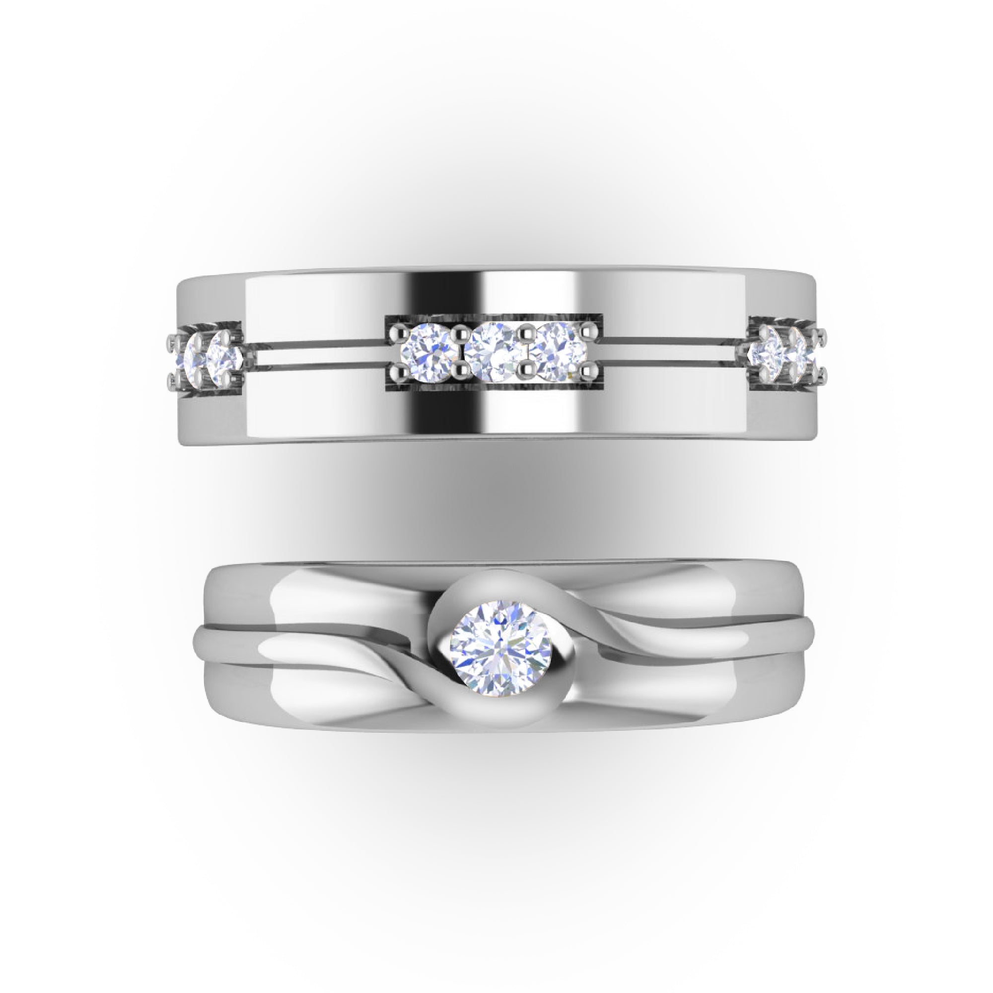 RKC 925 Sterling Silver Moissanite Couple Ring Bands For Her & Him 14K White Gold Plated Wt 7 gm