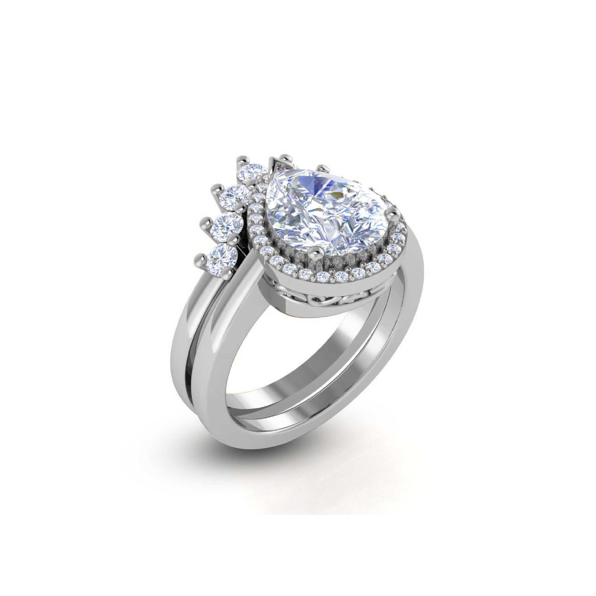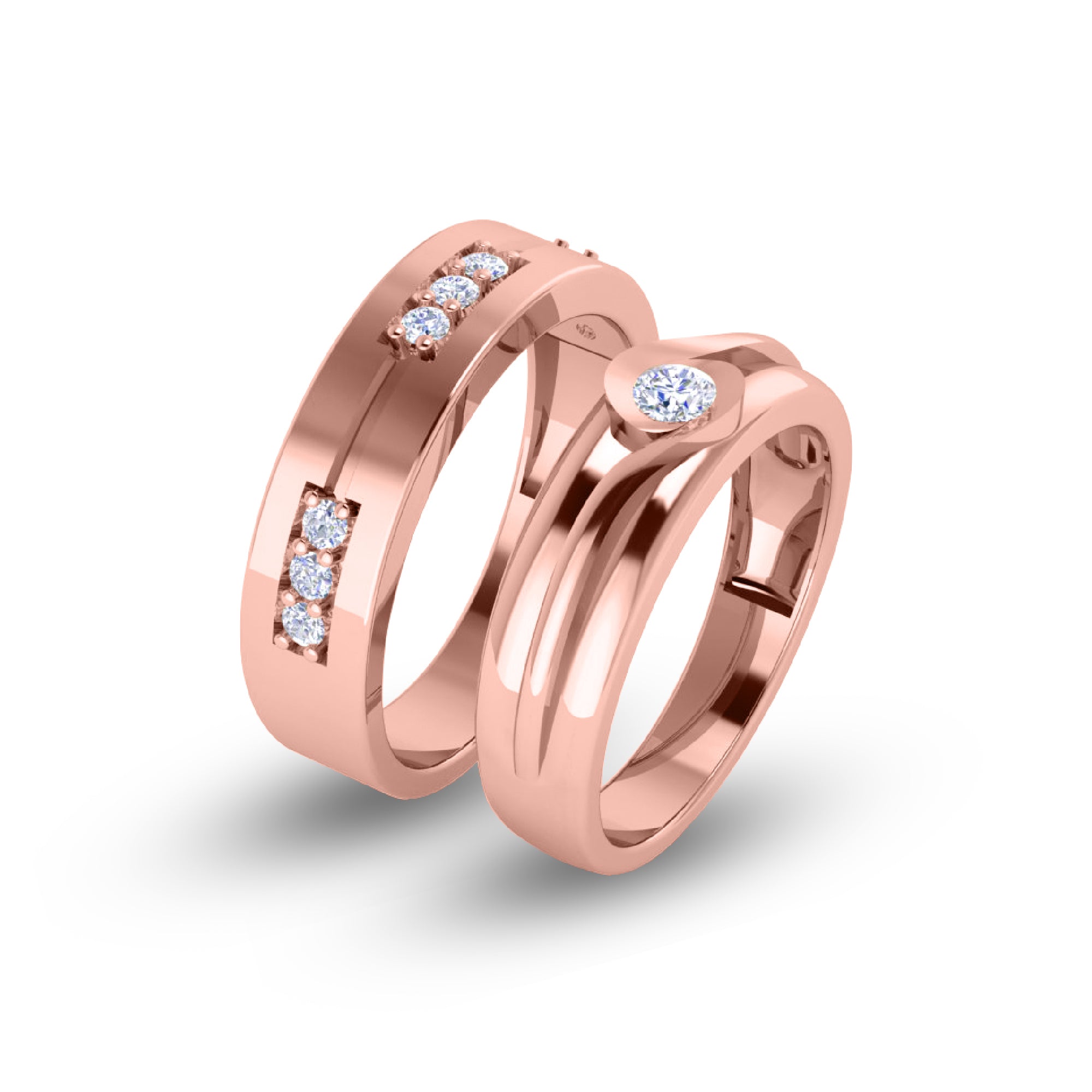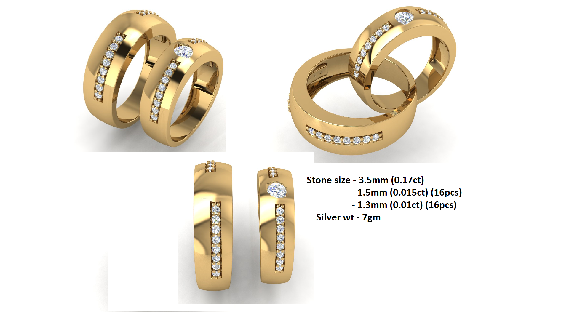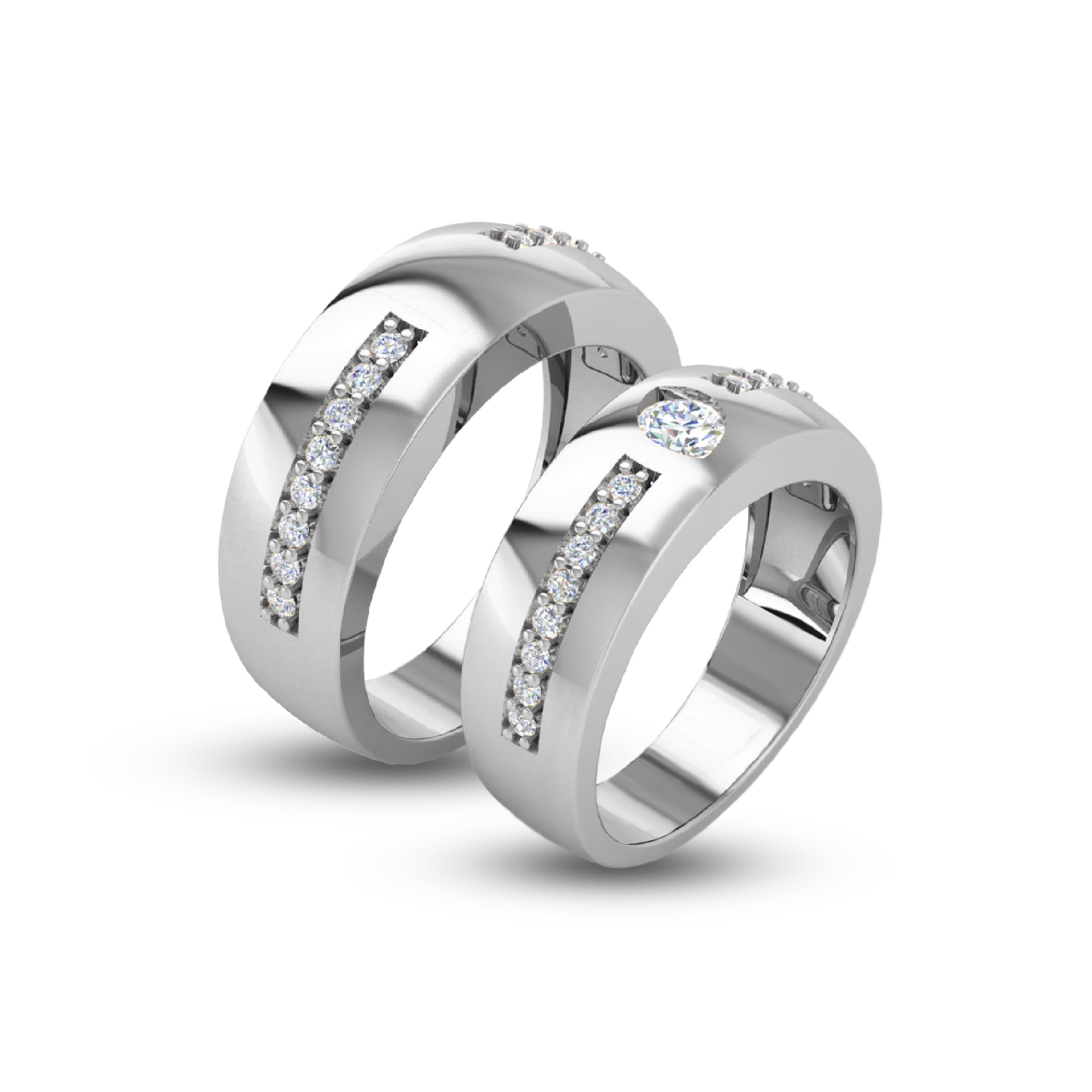 RKC 925 Sterling Silver Moissanite Couple Ring Bands For Her & Him 14K White Gold Plated Wt 7 gm
