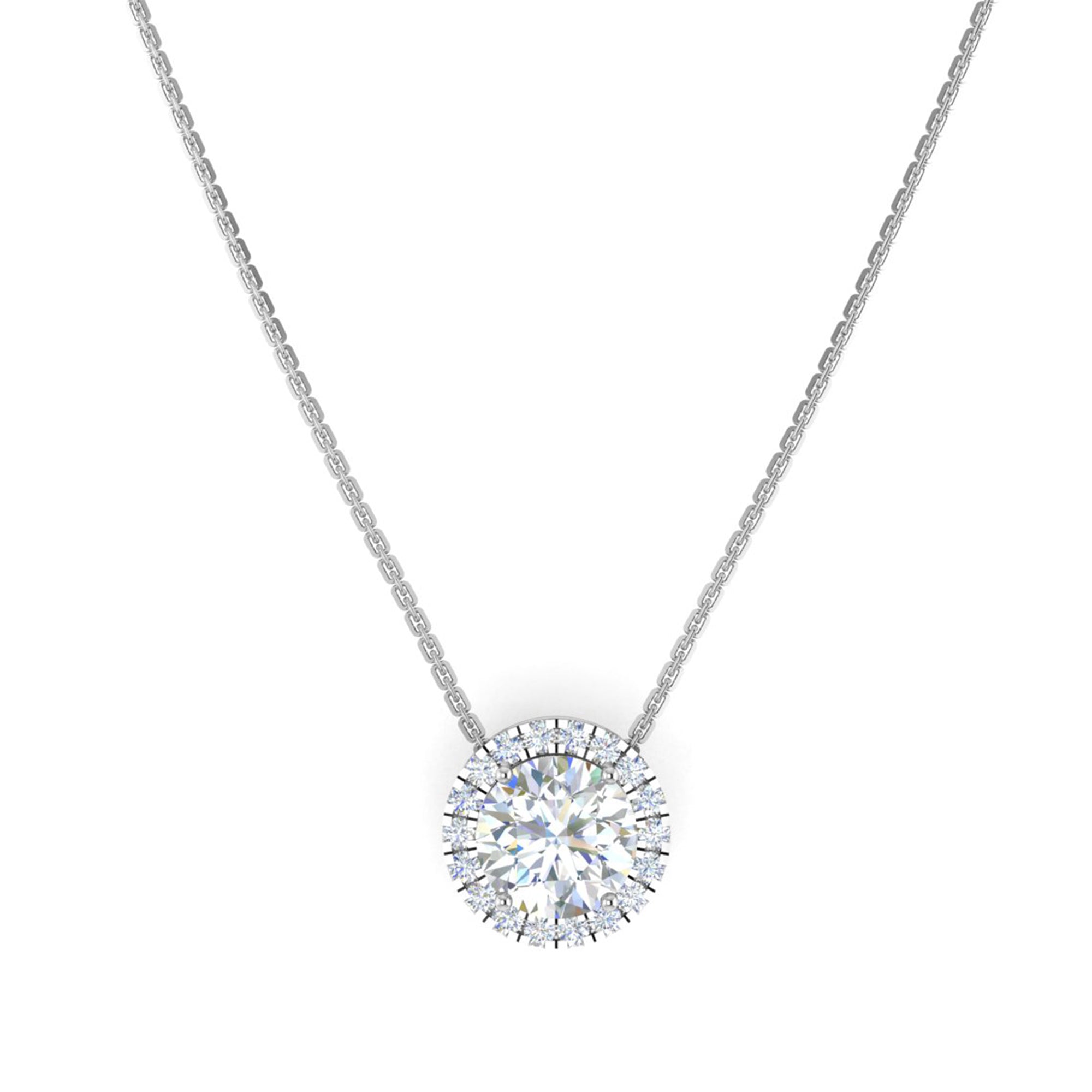 RKC 4.41 Ct Moissanite Solitaire Halo Pendant Necklace White Gold Plated Wt 5.30gm
