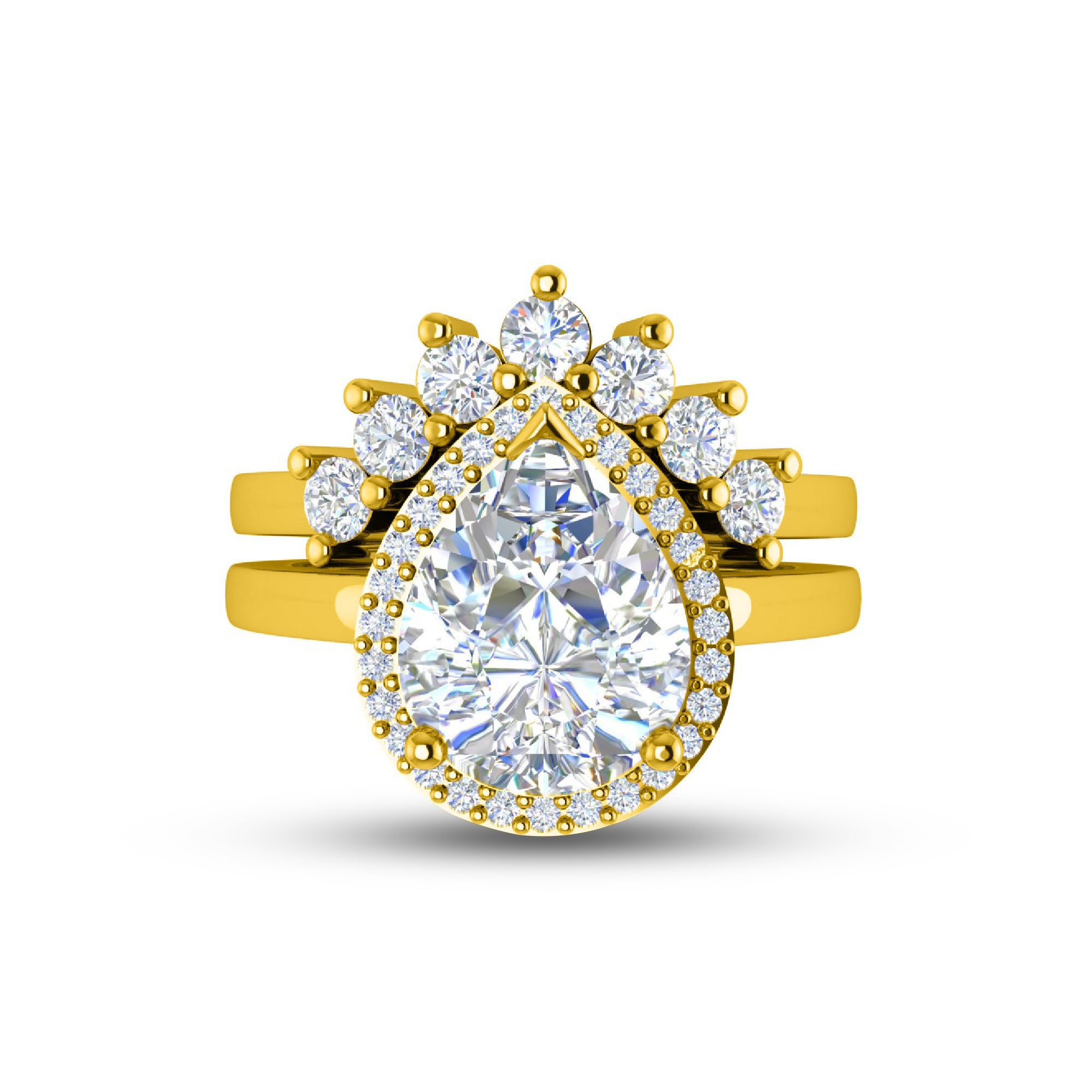 RKC Halo Princess Moissanite 925 Sterling Silver Yellow Gold Plated Women Wedding Ring Wt 3.5 gm