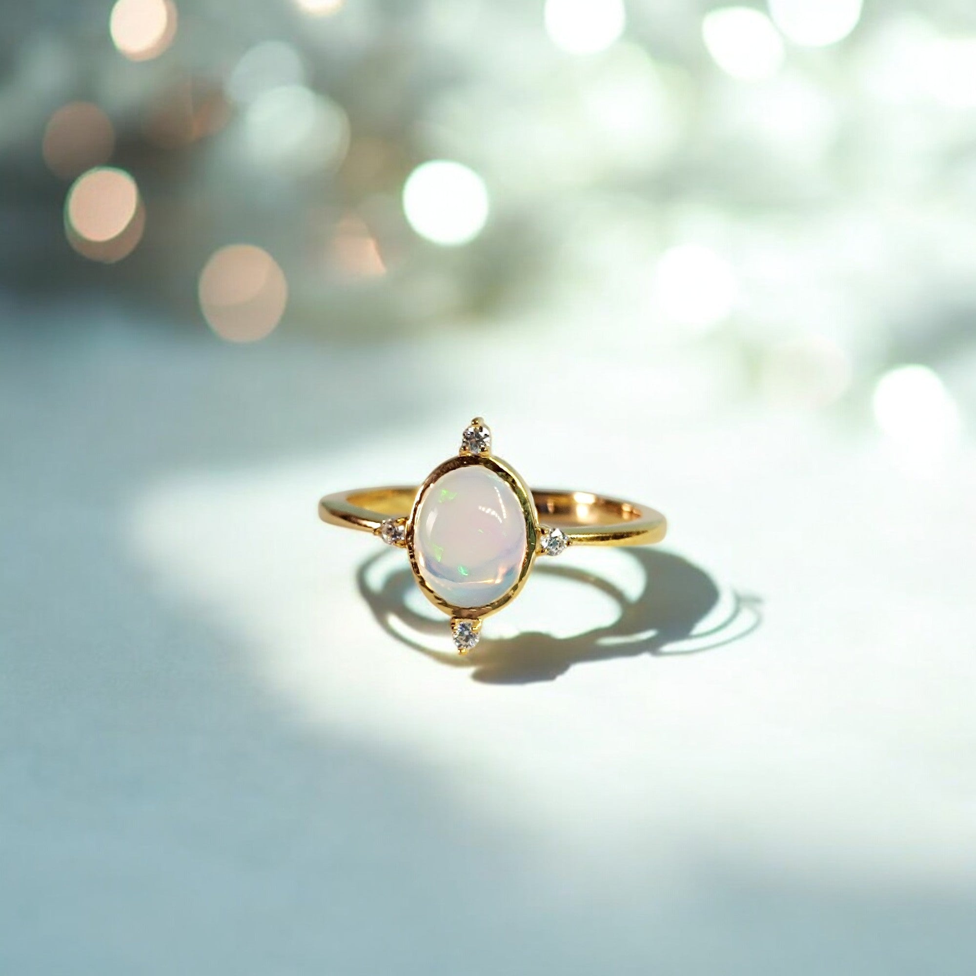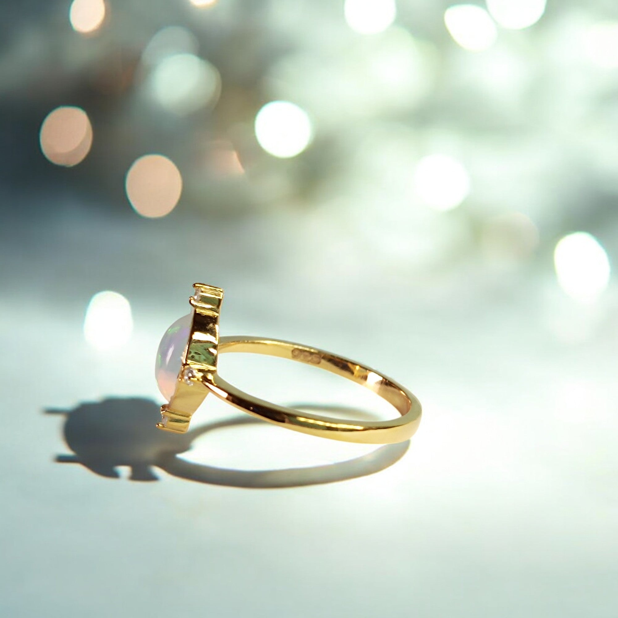RKC 1.20 Carat Oval Cut Fire Opal 14k Gold Plated Wedding Engagement Ring Weight 3 gm