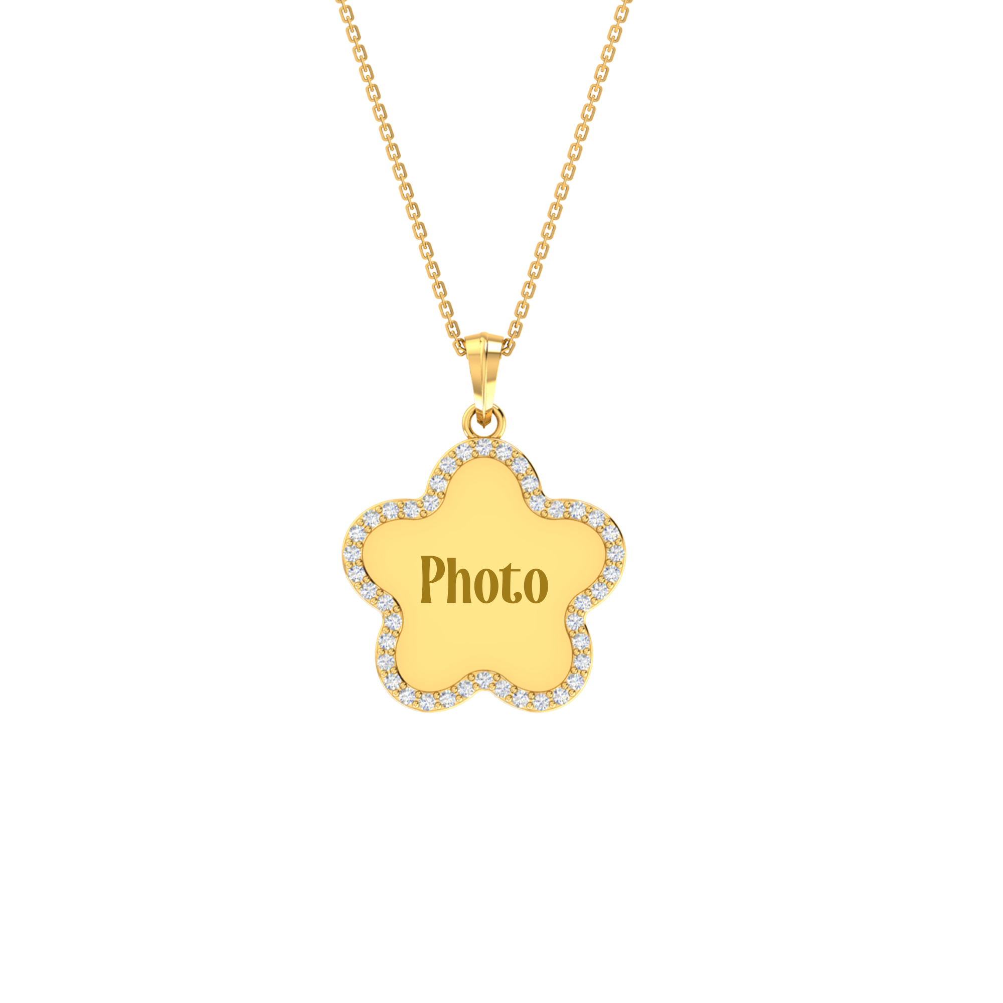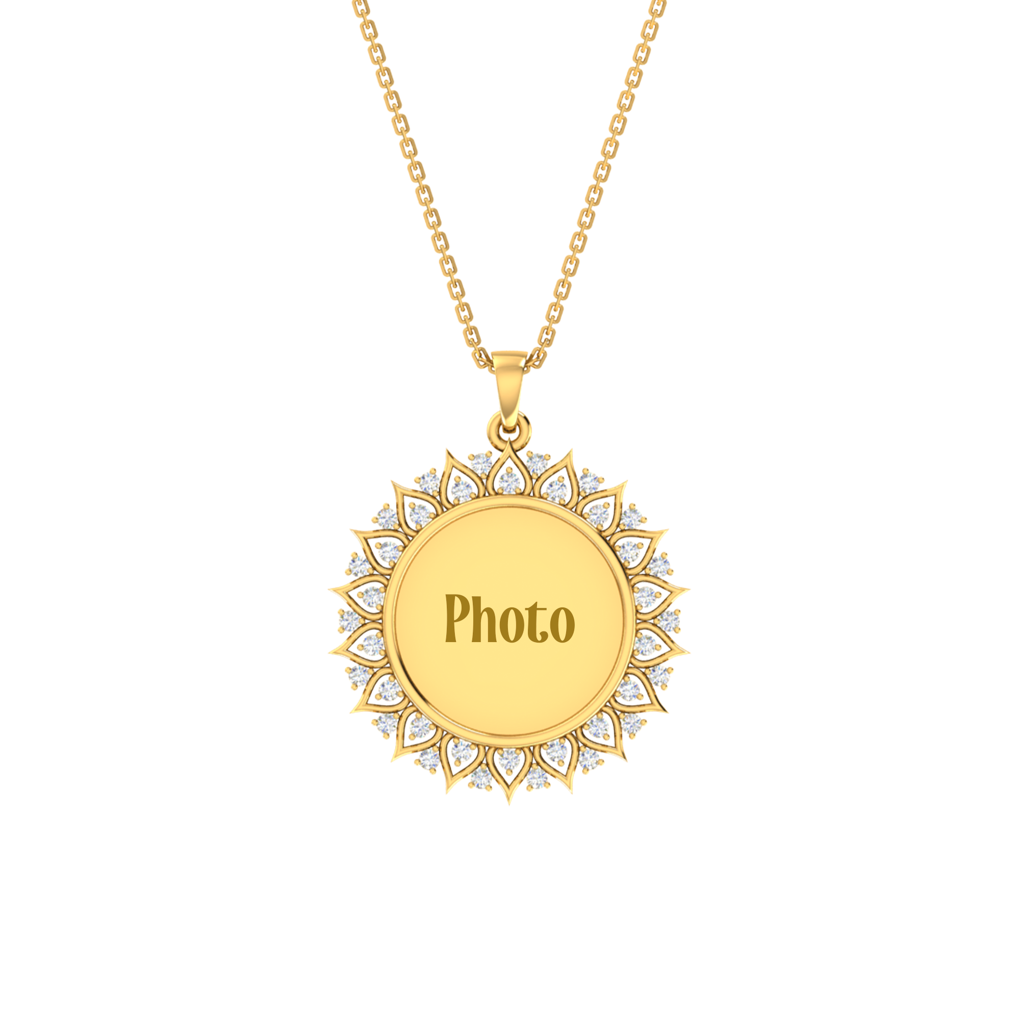 RKC Moissanite/ Cubic Zirconia Photo Pendant Necklace 14k Yellow Gold Plated Weight-6gm