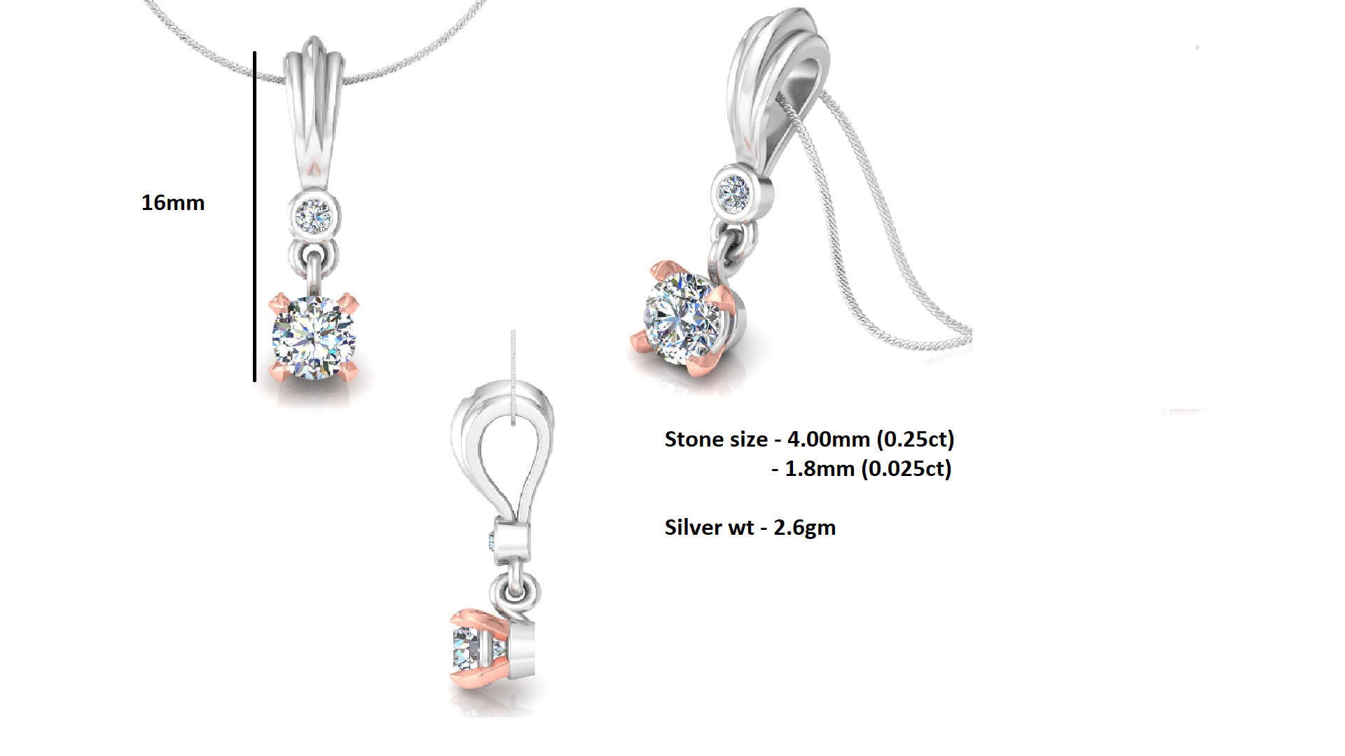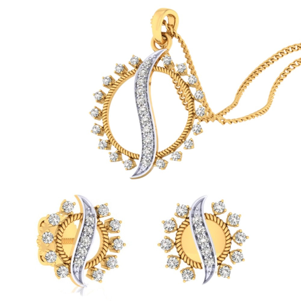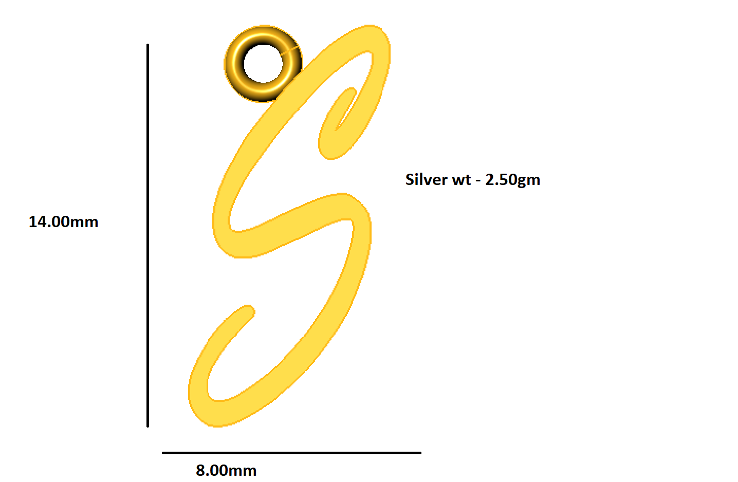 RKC Silver Custom "S" Letter Women Pendant 14K White Gold Plated Weight 2.50 gm Height 14.00mm