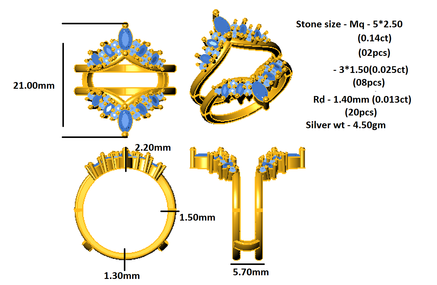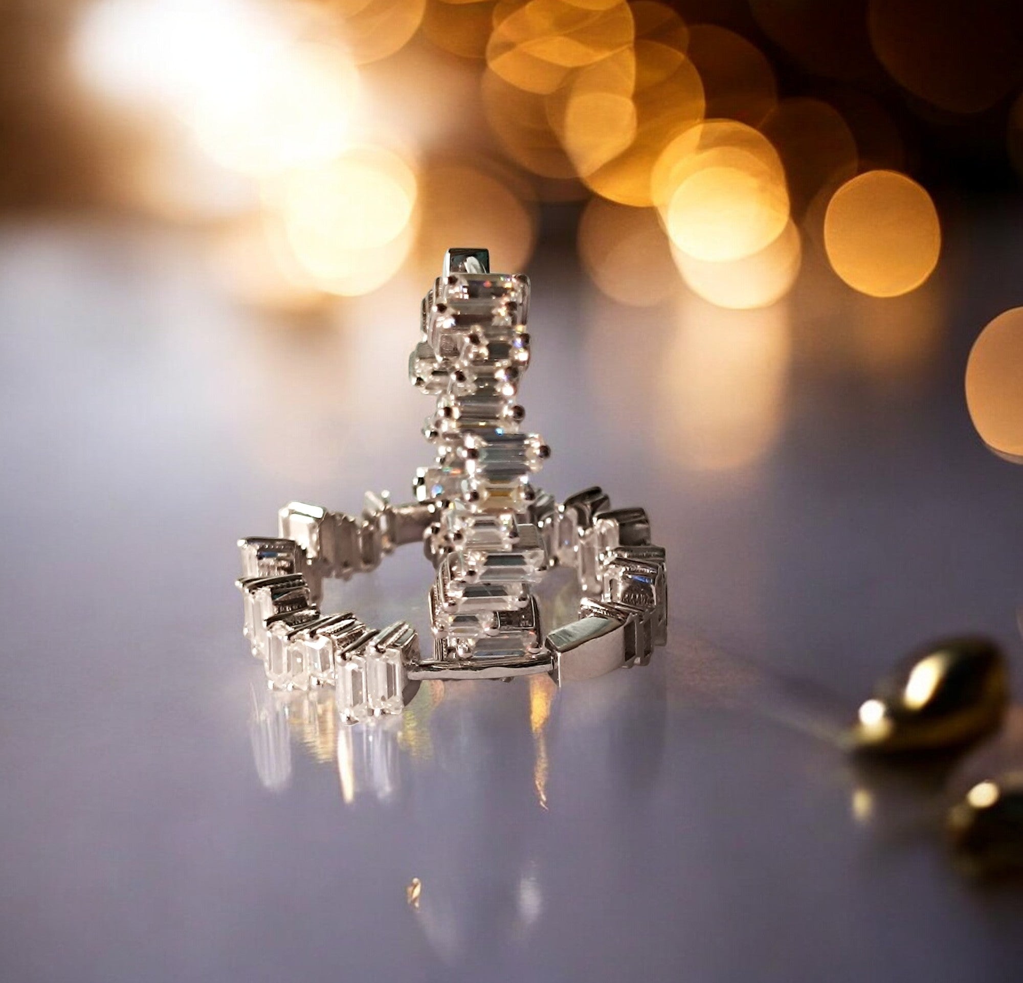 RKC Precious 925 Silver Wedding Ring Moissanite Statement Ring For Women's Wt 1.5 gm