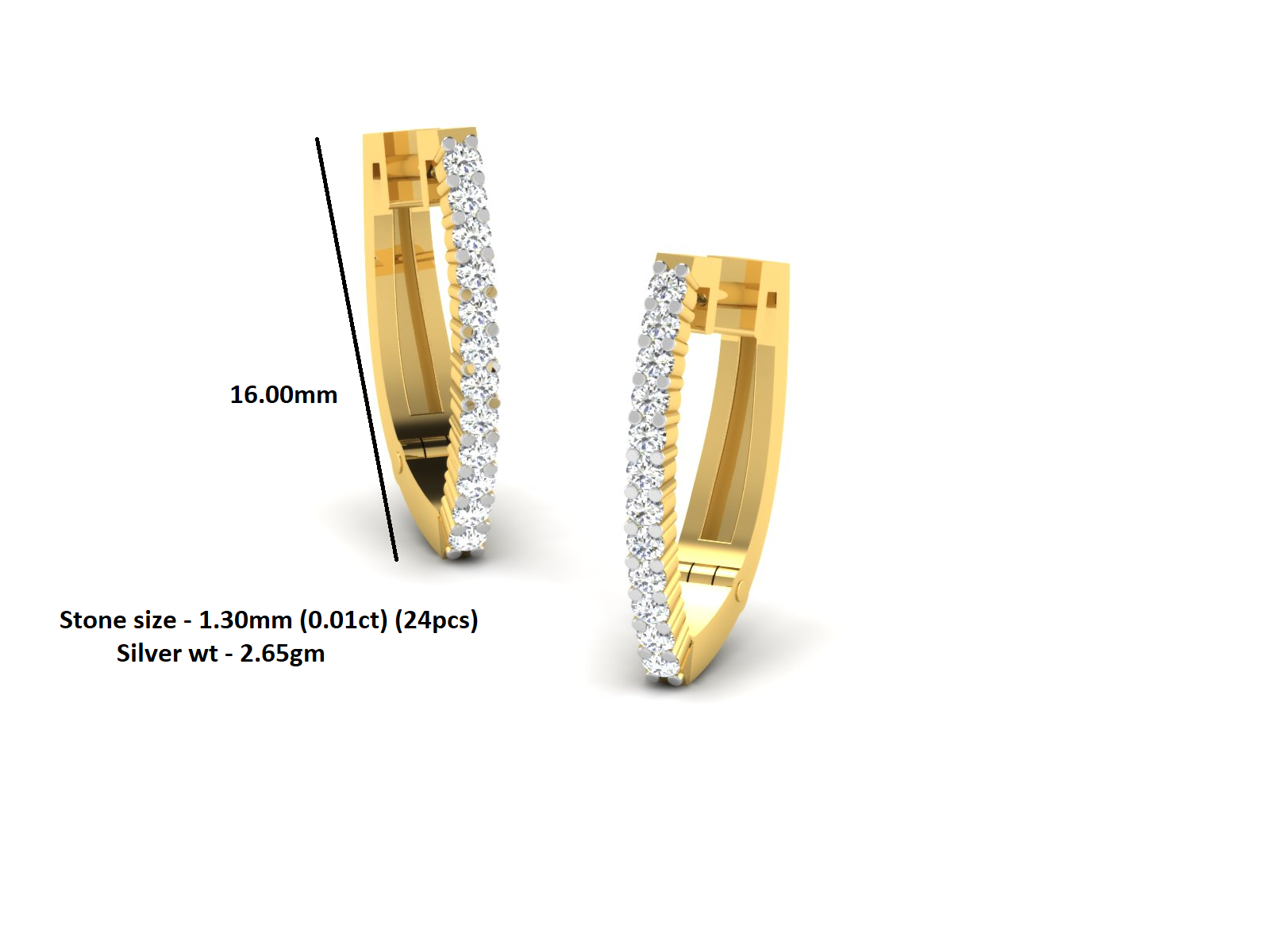 RKC 925 Sterling Silver Hoop Clip on Women Earring 14k Yellow Over 5.00 Gm Height 16.00 MM