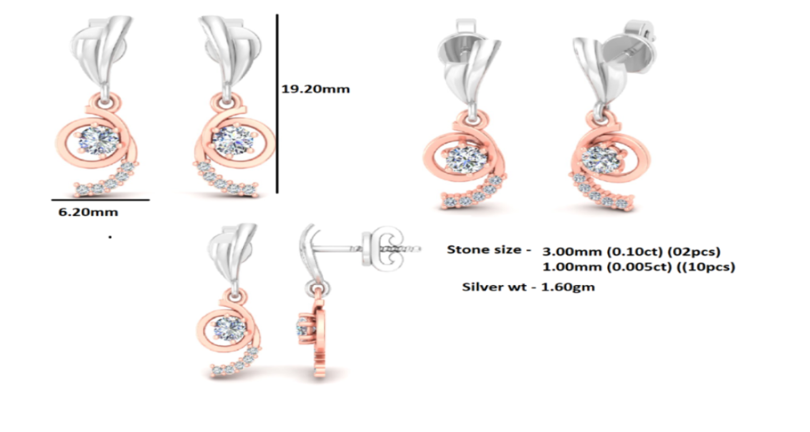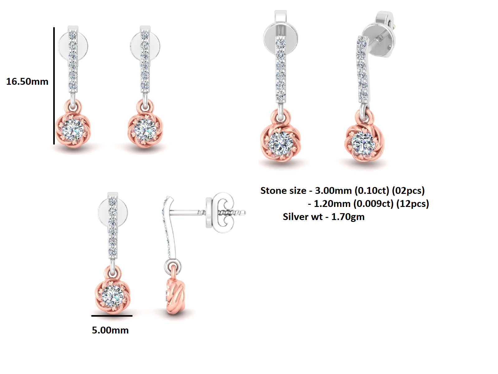 RKC 925 Sterling Infinity Two Tone Drop Dangle Earring 1.60 GM Height 19.20 MM
