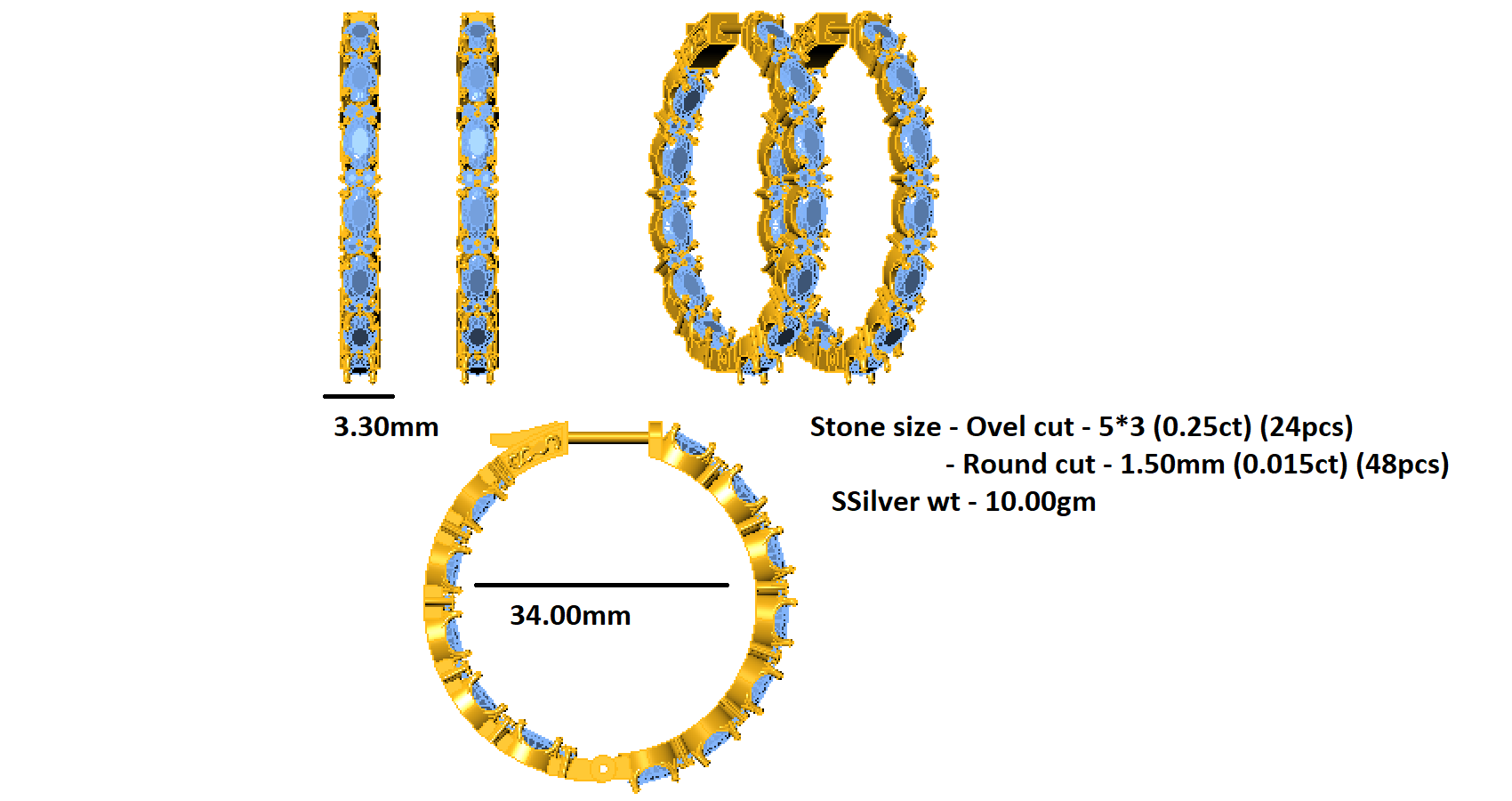 RKC 925 Sterling Silver Hoop Clip on Women Earring 14k White Over Product Wt 4.50 GM Height 25.00 MM