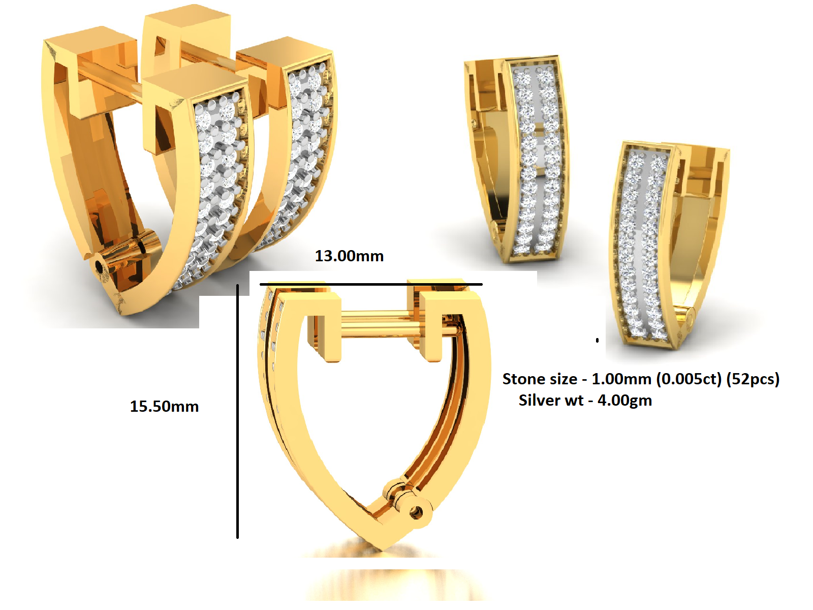 RKC 925 Sterling Silver Twisted Women Earring 14k Yellow Over 5.20 Gm Height 16.50 MM