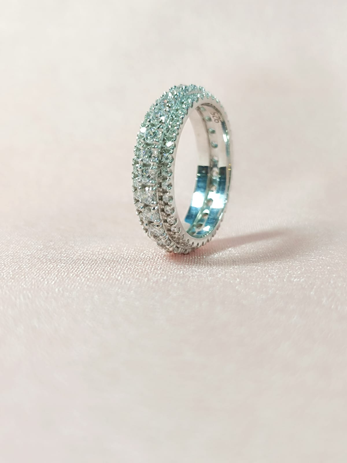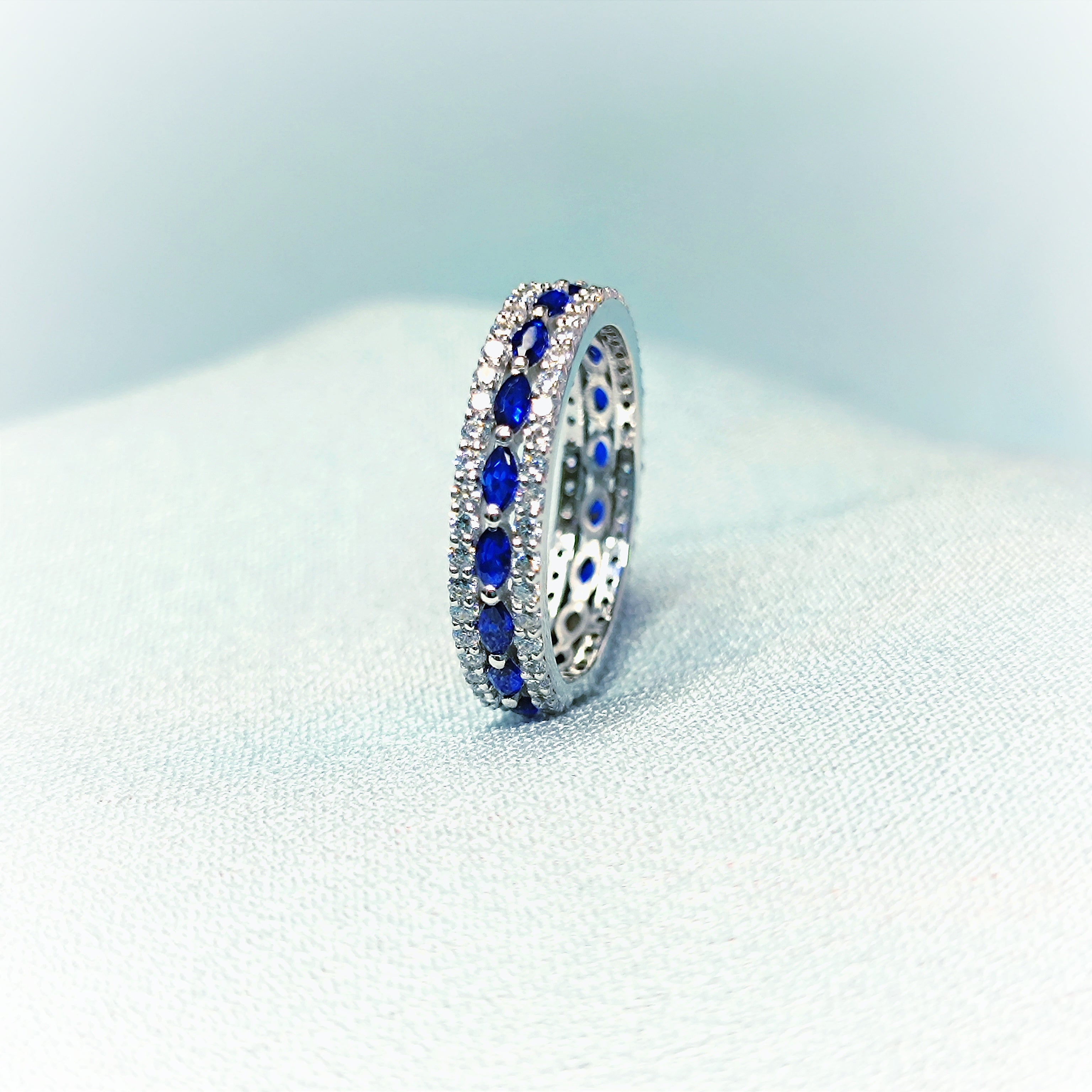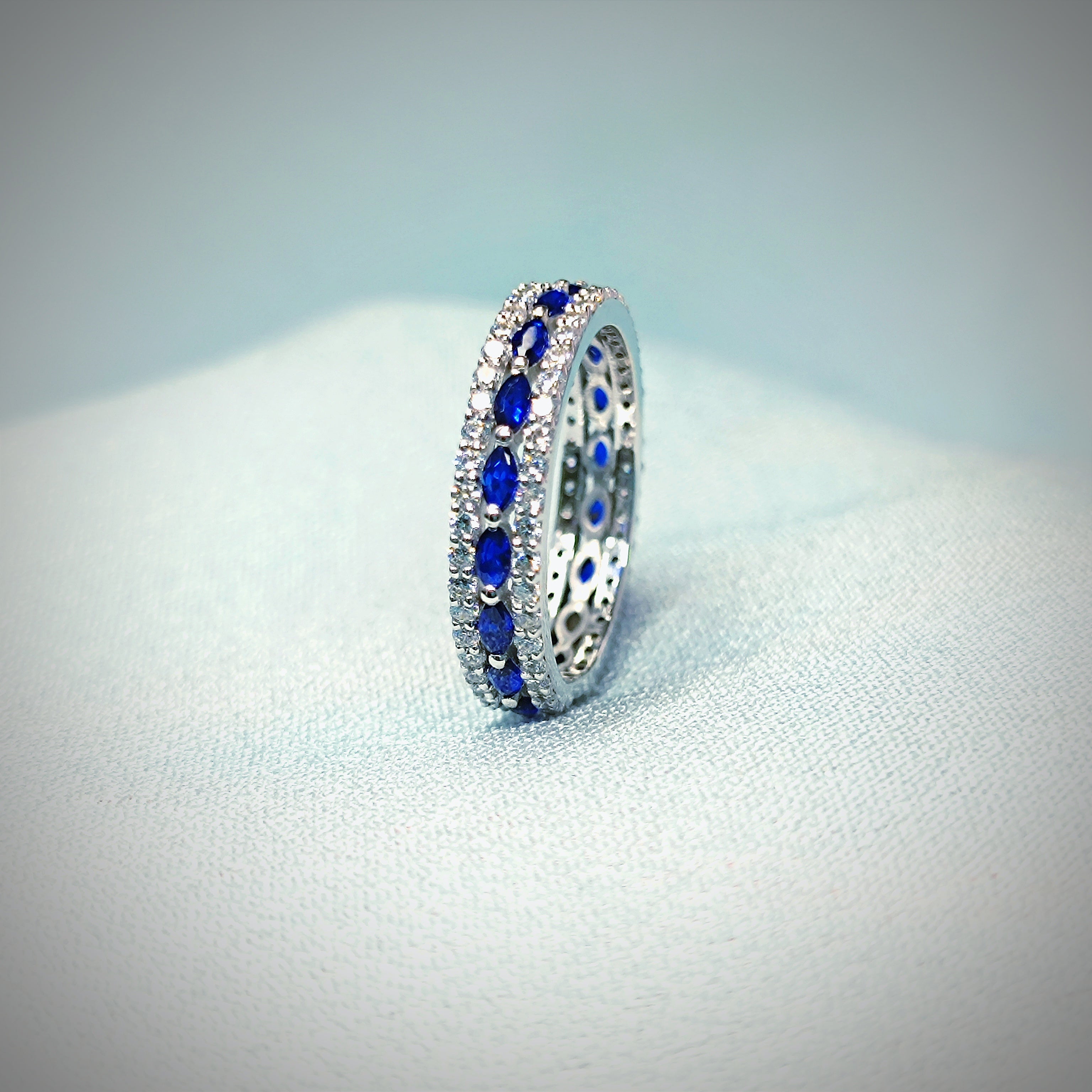 RKC 2 Ct Sapphire And Moissanite Wedding Band 925 Sterling Silver Weight 4 mm