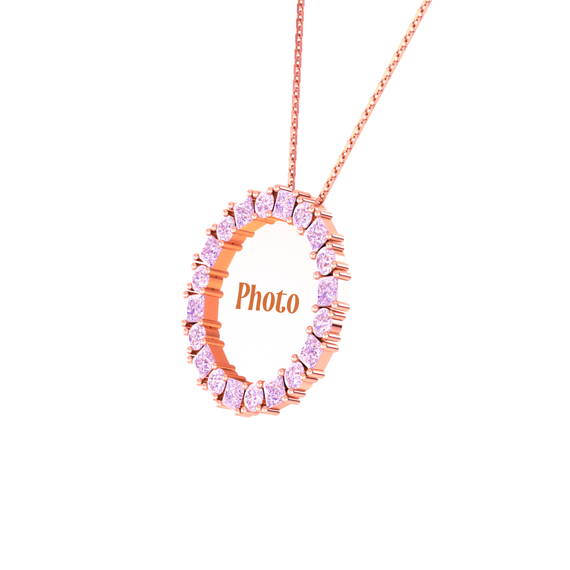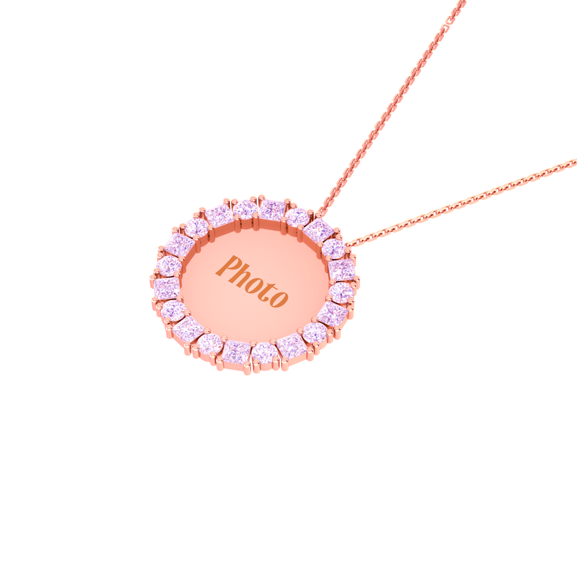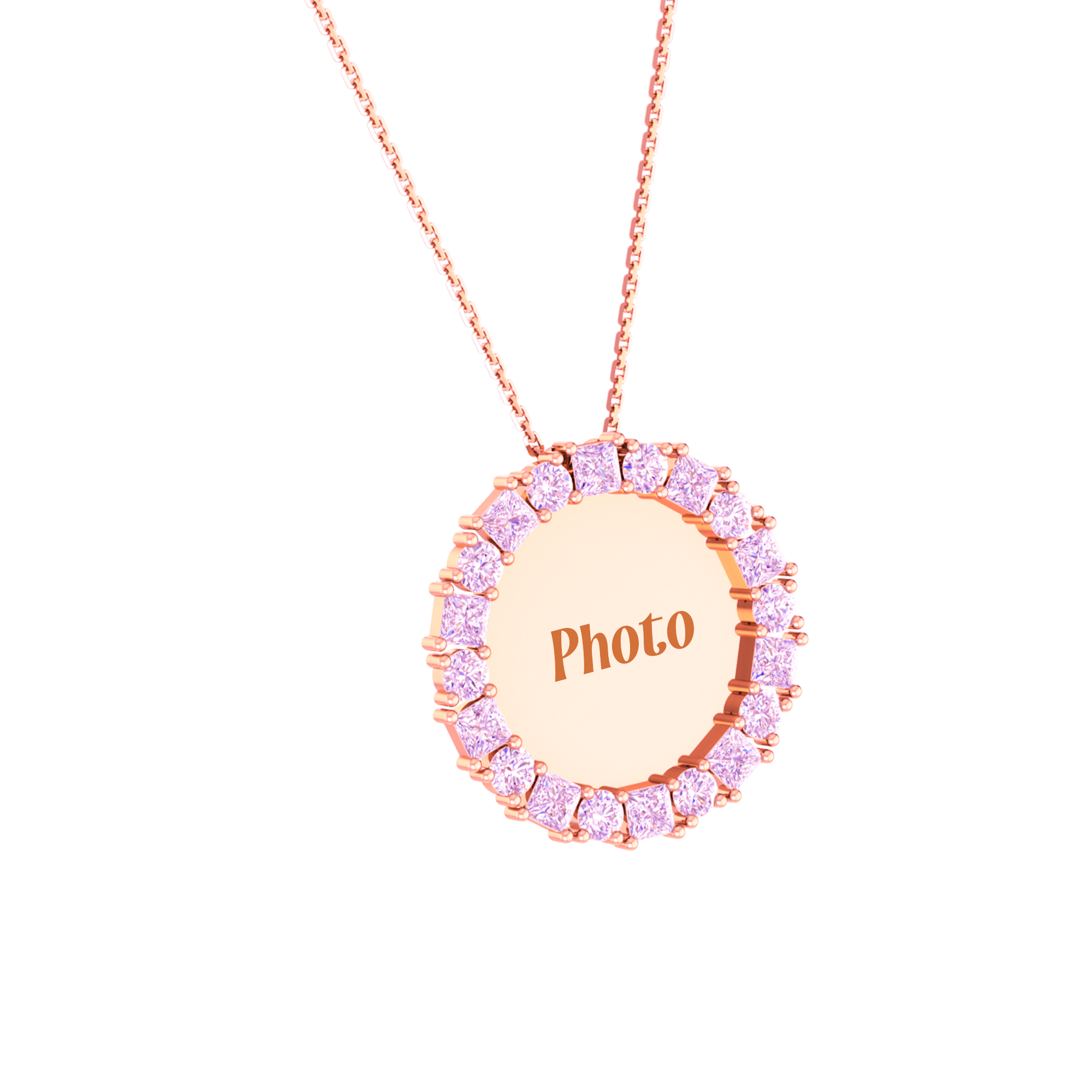 RKC 0.9 Ct Round And Princess Cut Diamond Photo Pendant Necklace 14k Yellow Gold Plated For Memory Weight - 5.50 gm