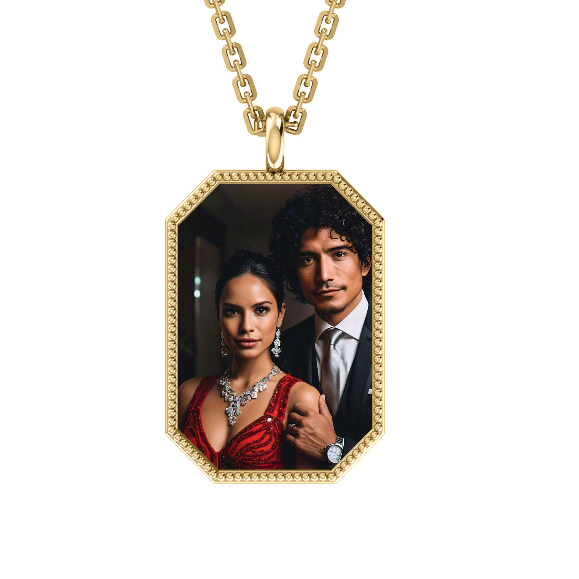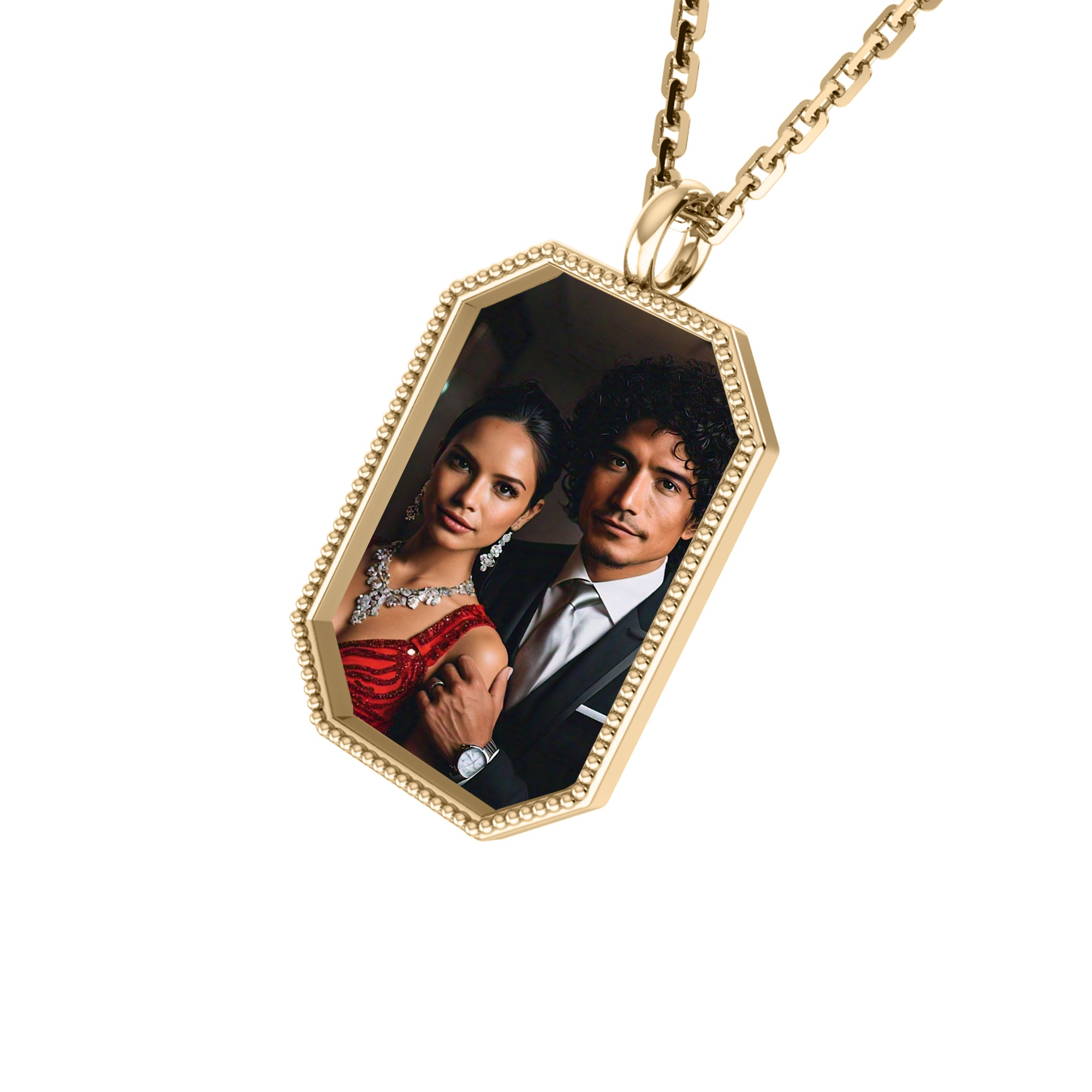 RKC Certified Moissanite Photo Memory Pendant Necklace 14k Yellow Gold Plated 925 Silver