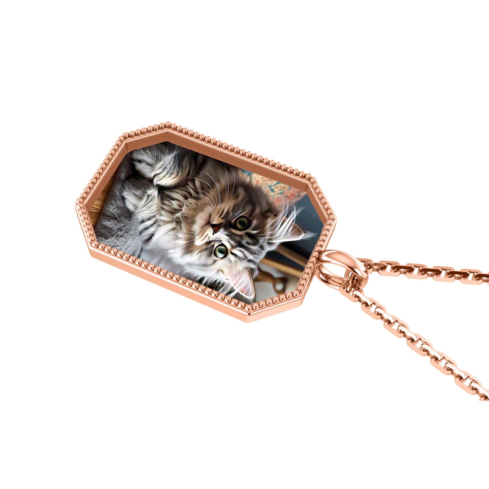 RKC फोटो पेंडंट 925 चांदीचे दागिने 14K रोझ गोल्ड प्लेटेड Wt 5.00gm उंची 24.00mm