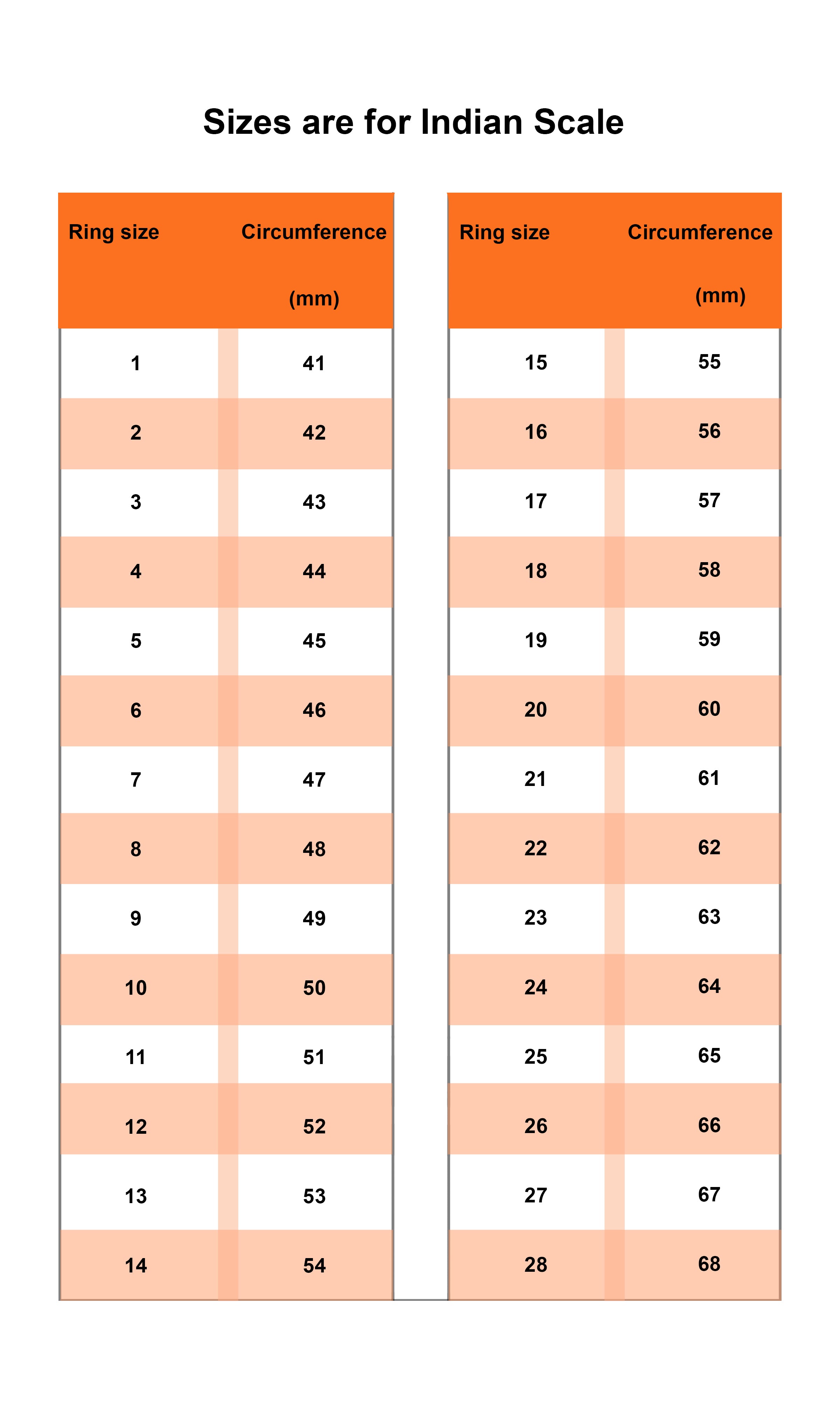 You now have the circumference of your ring, use the following chart to determine your Ring size