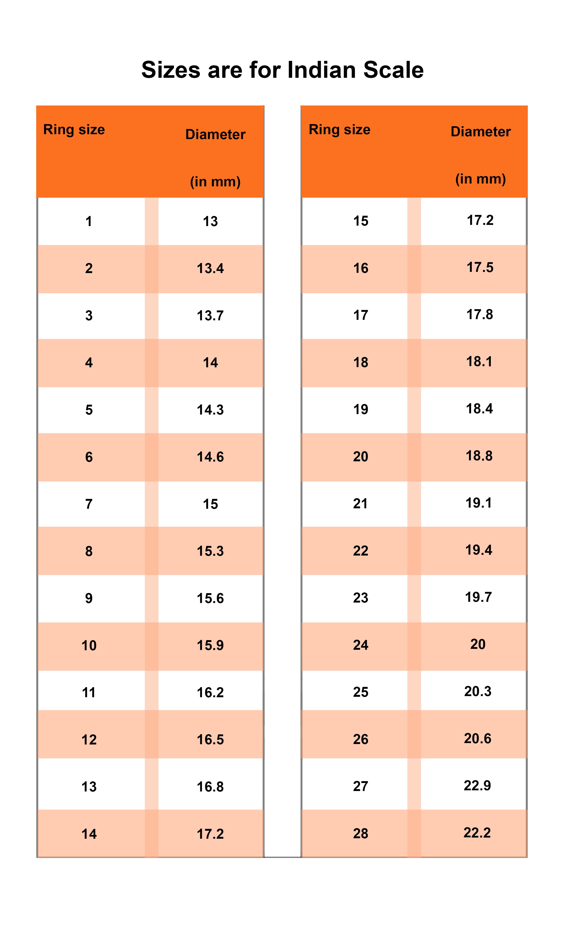 You now have the inner diameter of your ring, use the following chart to determine your ring size